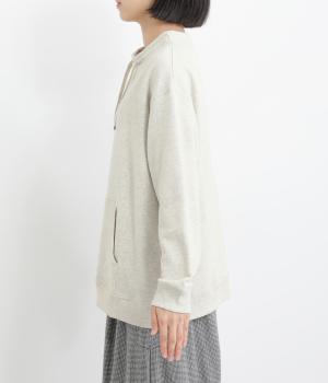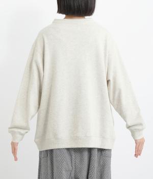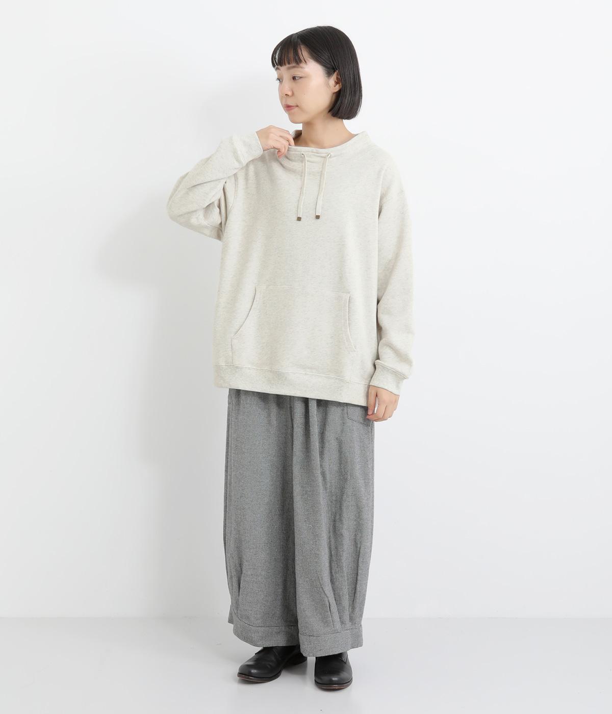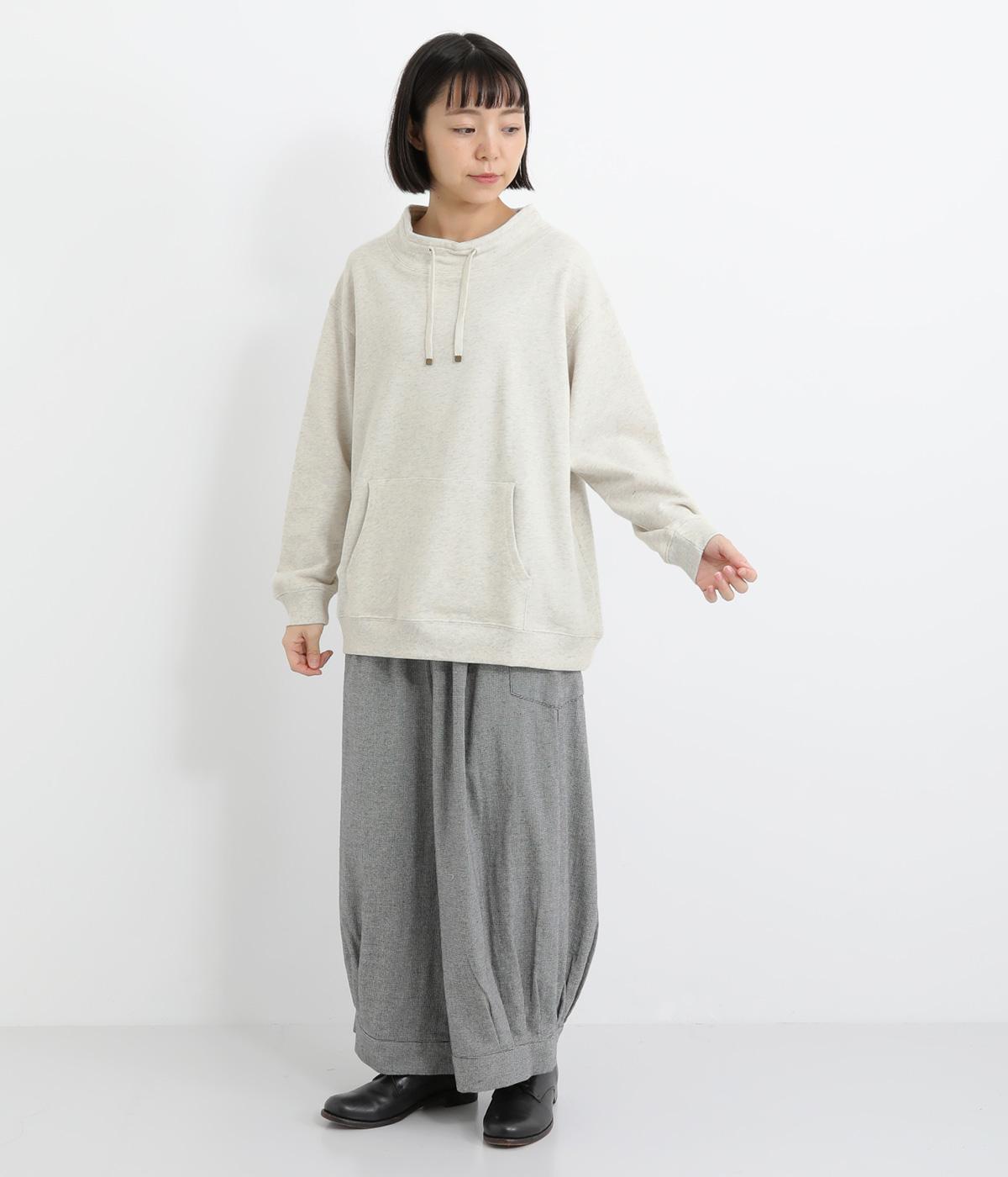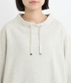 スポーティなデザインのスウェットに、エレガントなモックネックがアクセント。 裾と袖口はゴム仕様になっているため型崩れしにくく、ゆったりと柔らかなフォルムをキープしながら着用できます。重ね着にもおすすめです。