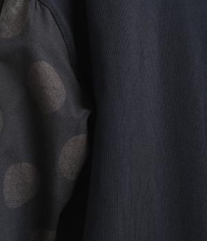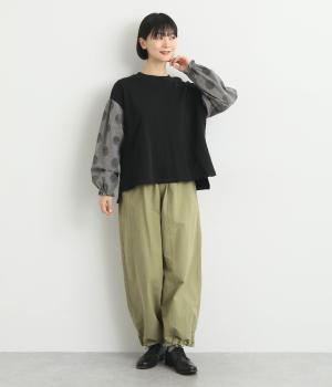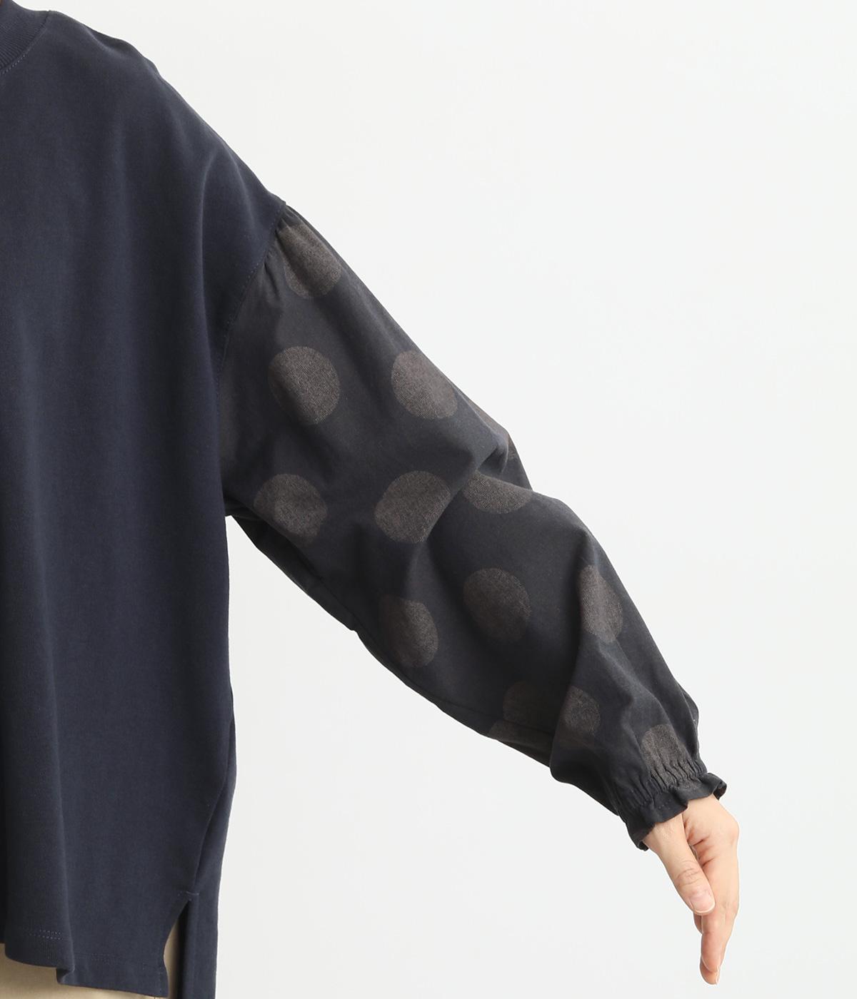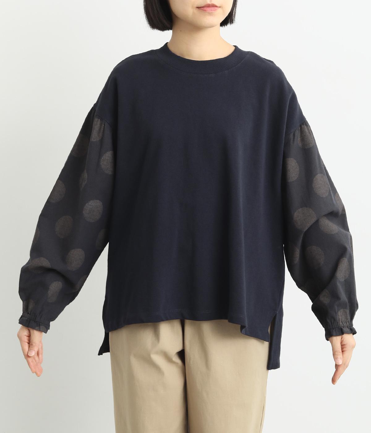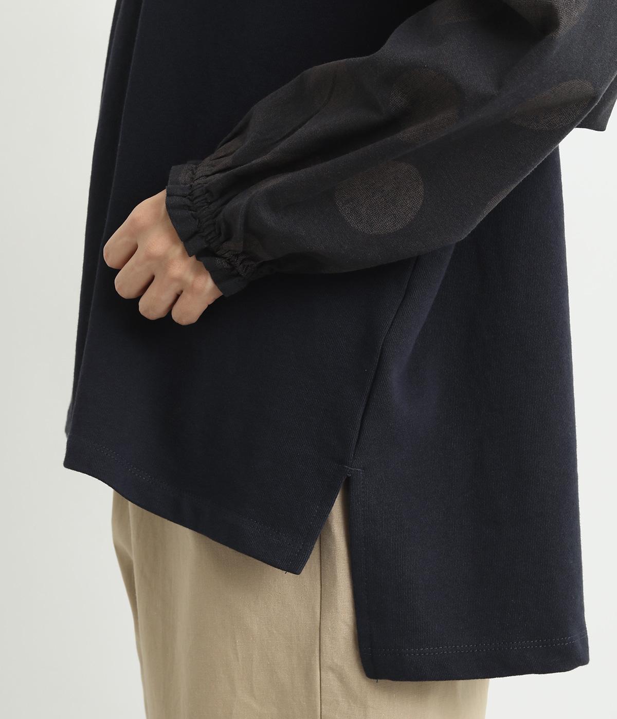 ソフトで肌あたりのいいコットンの裏毛生地と、さらりとしたドットの異素材を組み合わせました。伸びのいい裏毛をベースにしているので着心地も快適です。