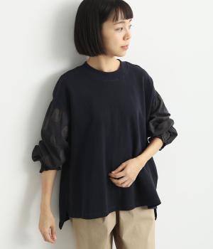 カジュアルスタイル定番の裏毛プルオーバーに、シャツ袖のような異素材を組み合わせてお洒落アイテムにブラッシュアップ。袖口はゴム入りなので、たくし上げのアレンジもおすすめ。着丈は前後差をつけているのでラフなトップスアウトもさまになります。