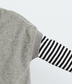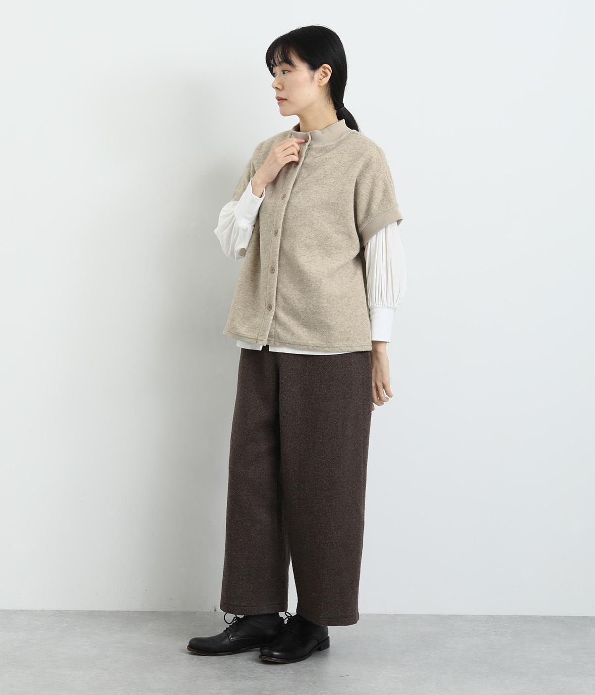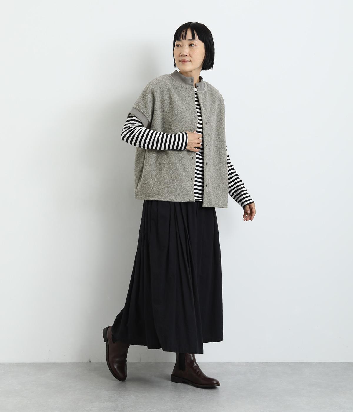 ムラのある独特な色合いや立体感、奥行きのある表情が魅力的な、メランジ生地を使用しています。表起毛させたウール混のあたたかみとやわらかな肉感が特徴。