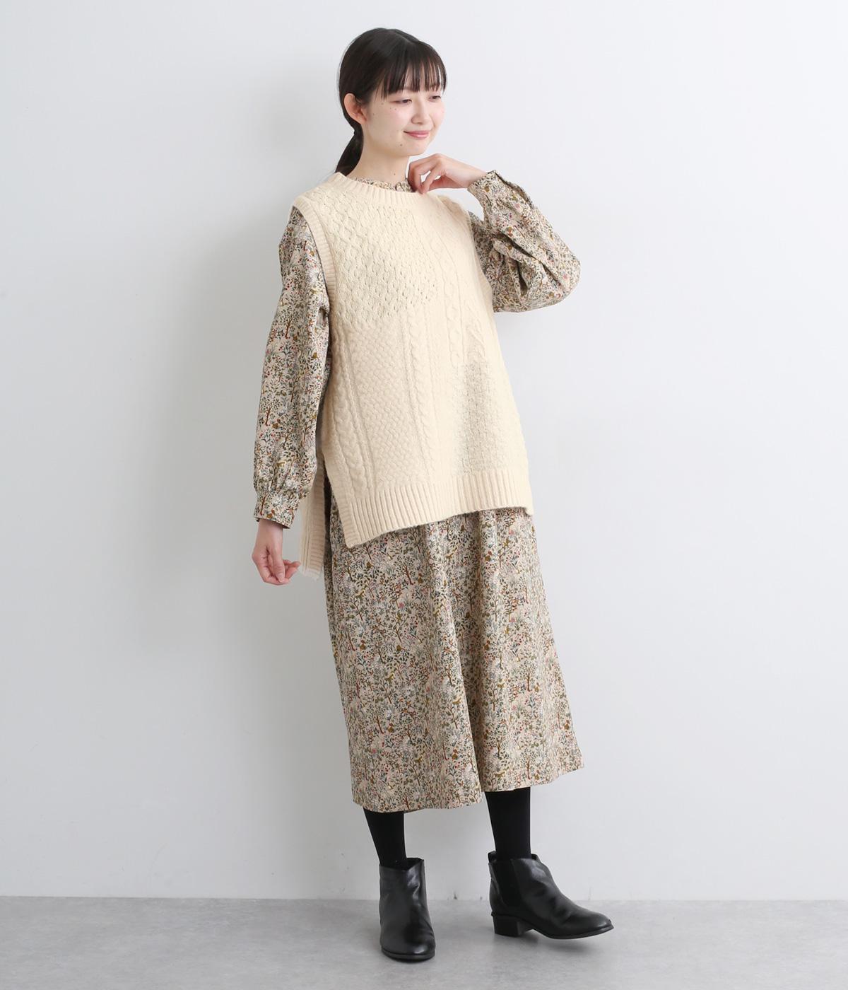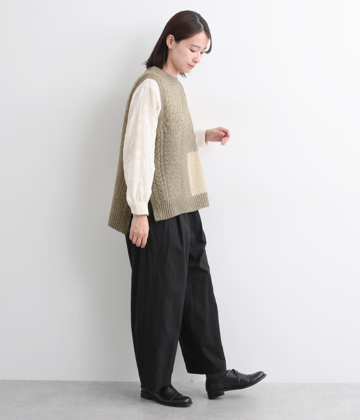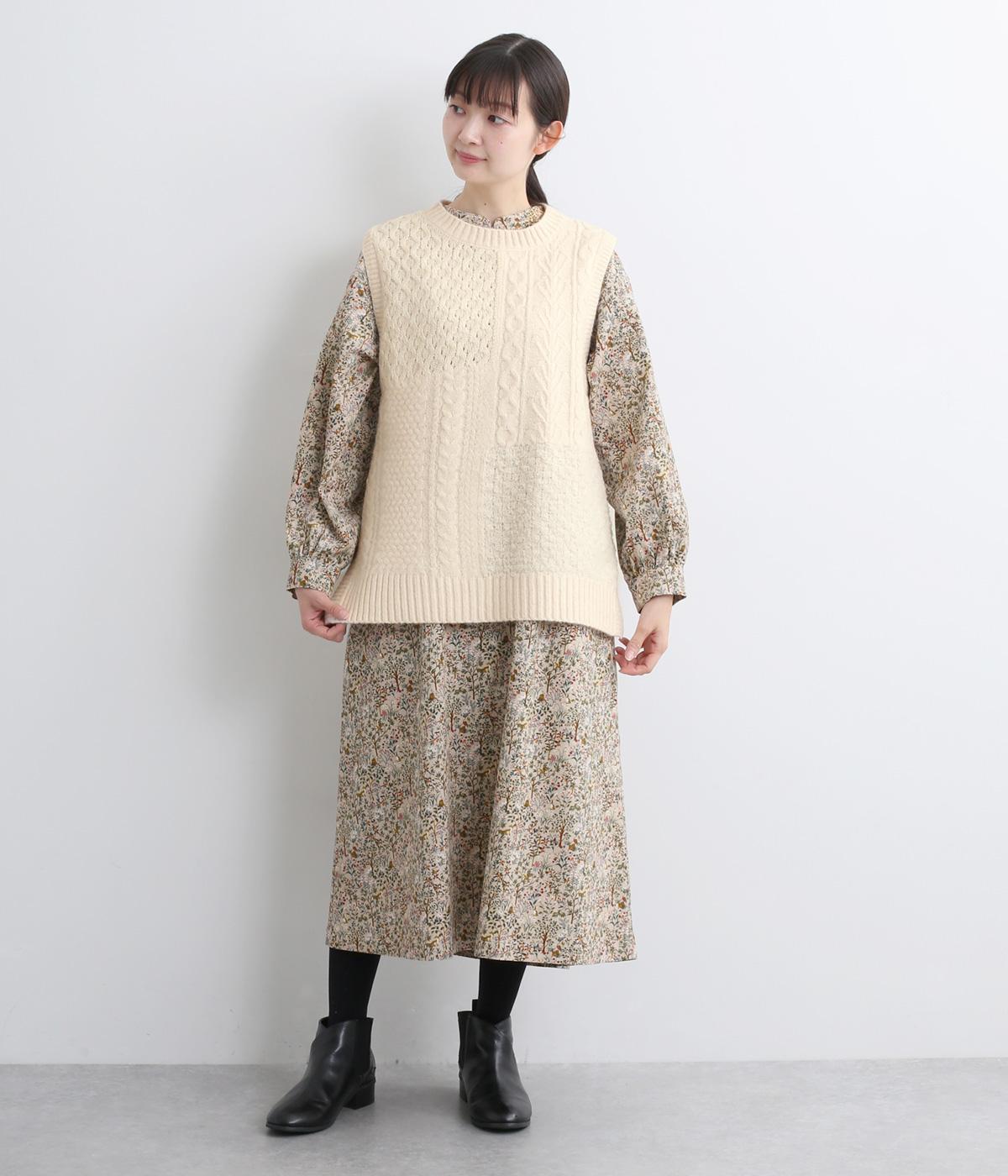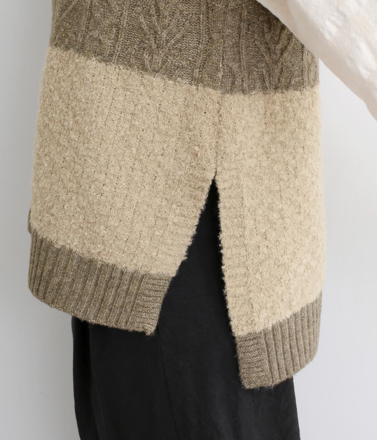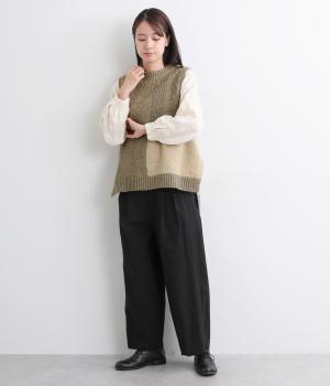様々な編み柄を切り替えた、表情豊かなニットベストです。ゆったりしたシルエットで、締め付け感なく快適な着心地。ワンピースやシャツの上に重ねるだけで、防寒はもちろん個性と季節感あるコーディネートが完成します。