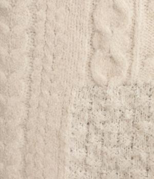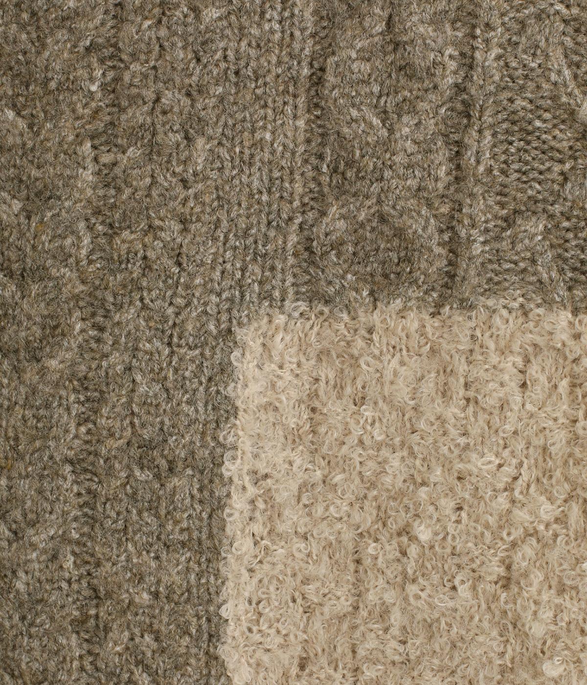 ふんわりやわらかく、チクチク感をおさえたニット生地。ケーブル、ループ、シャギー、ガーターなど、4種類の編み地をミックスすることで、さまざまな風合いが楽しめます。