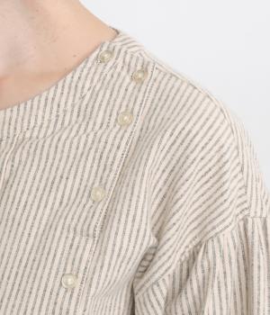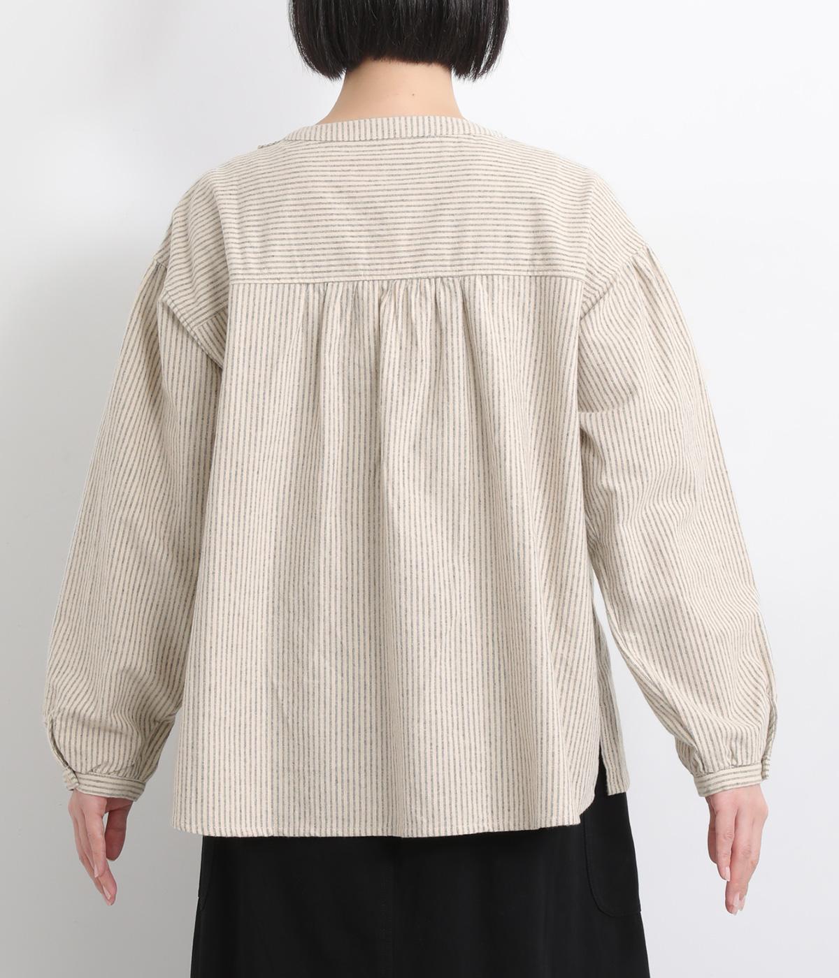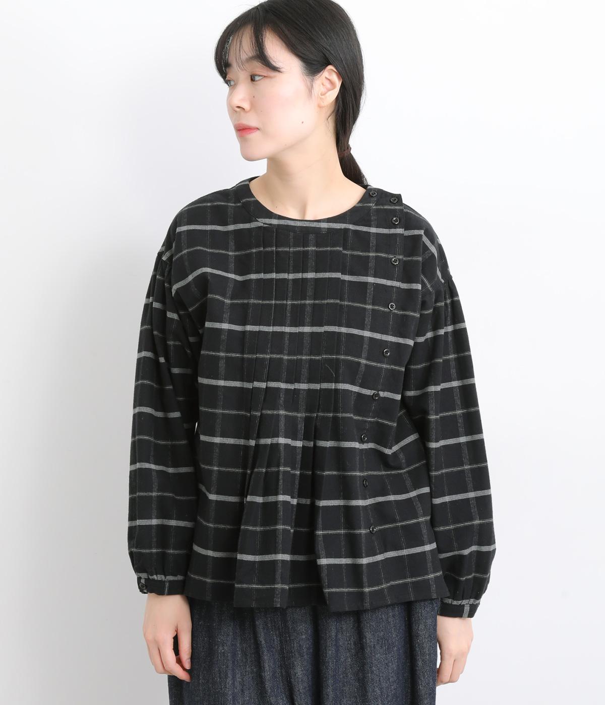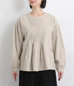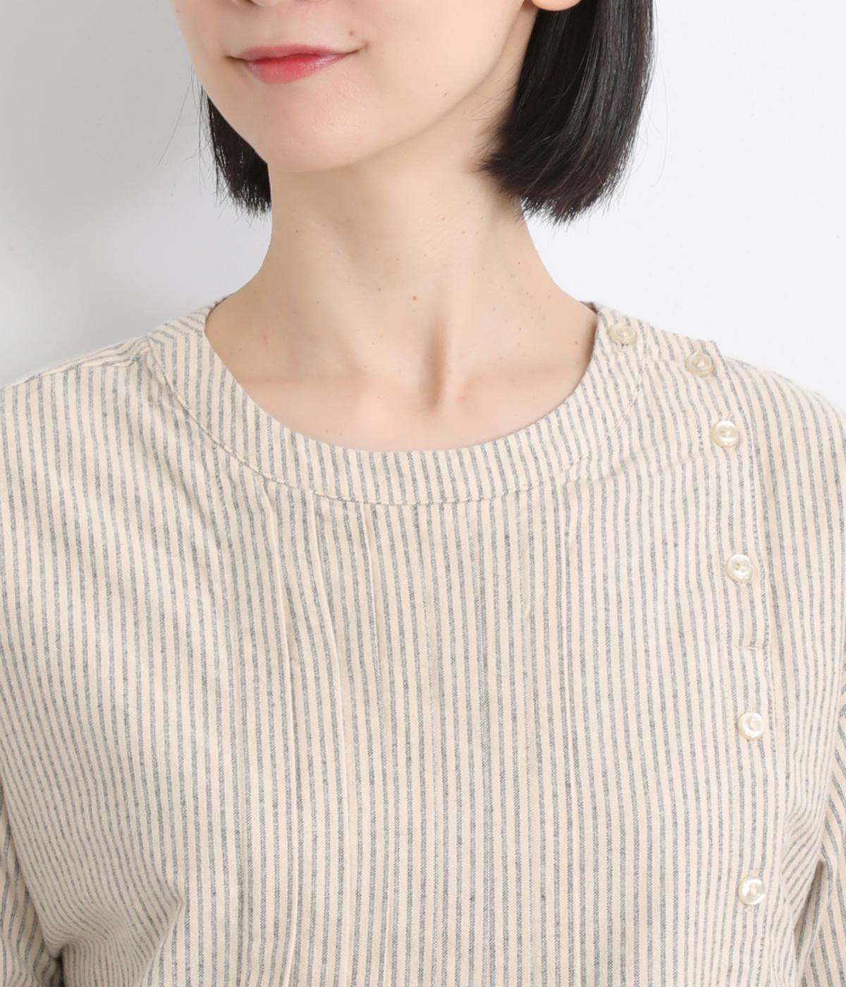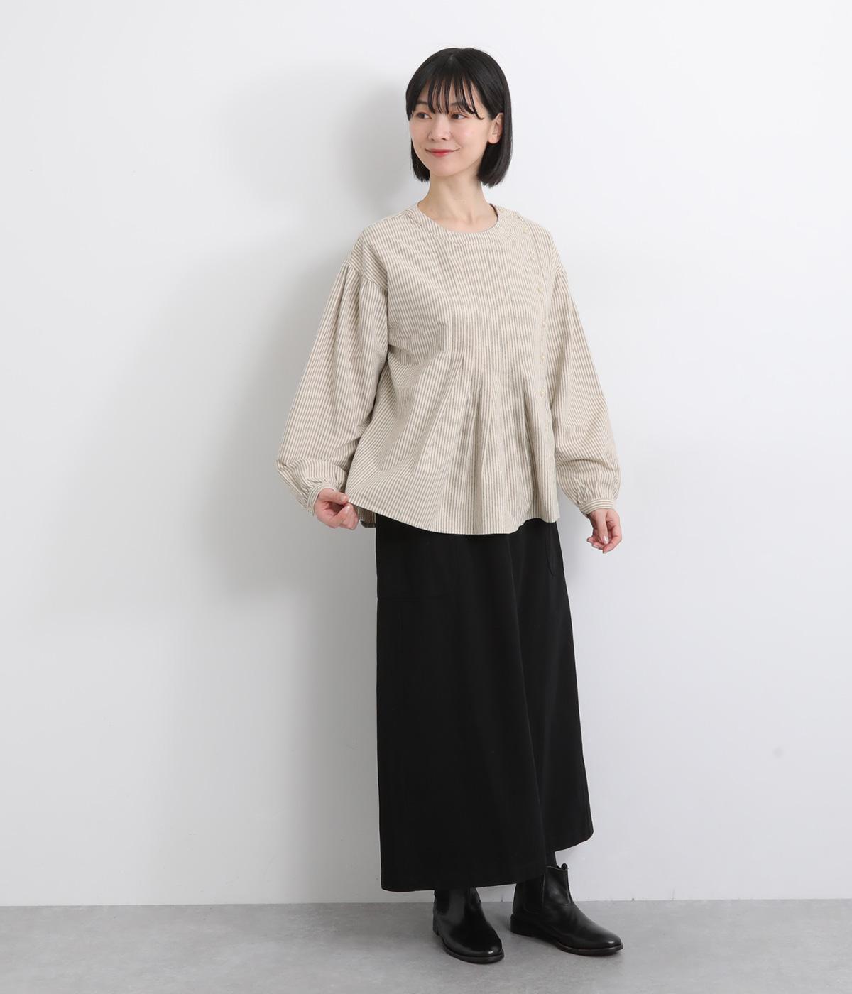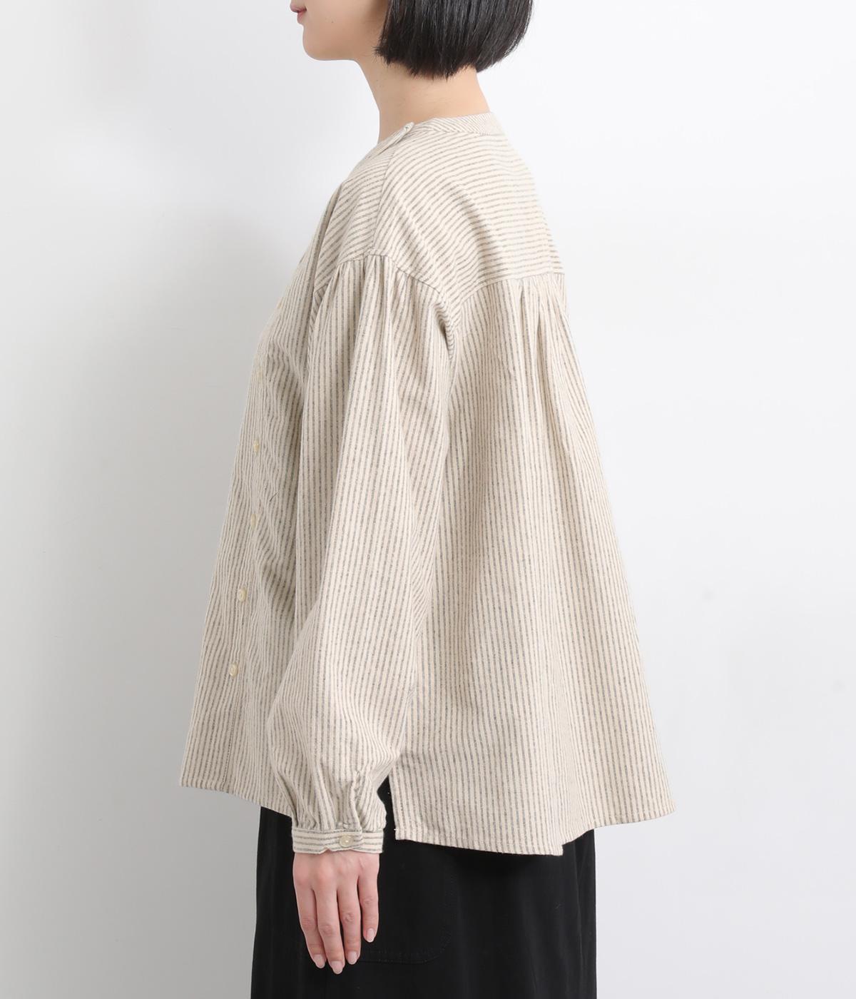 サイド開きが特徴的なブラウス。フロントのタックやところどころに施したギャザーがふんわりと女性らしいシルエットをつくります。サイドにはスリットをあしらいほどよい抜け感をプラス。さりげないディテールを散りばめたこだわりの一枚です。