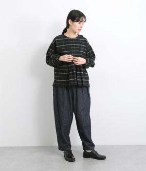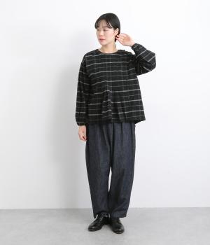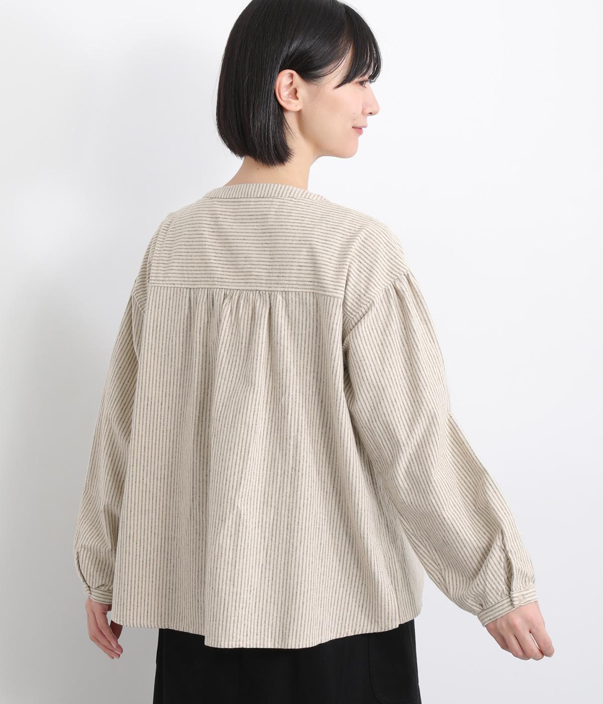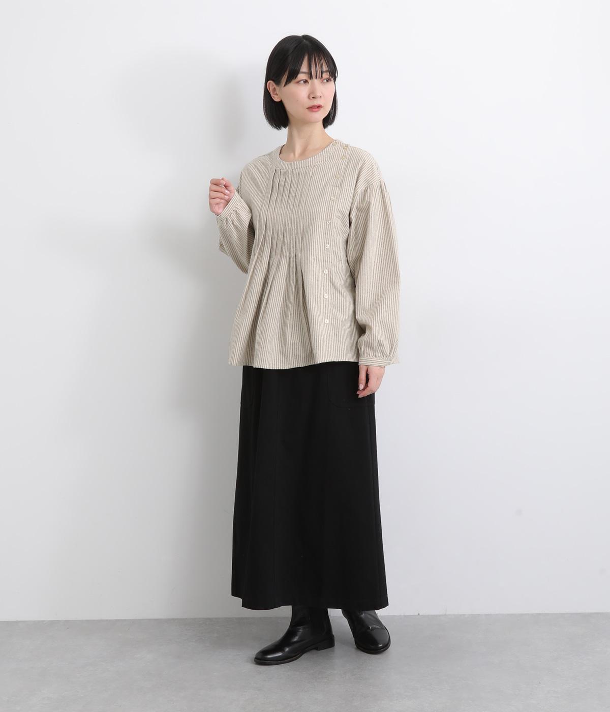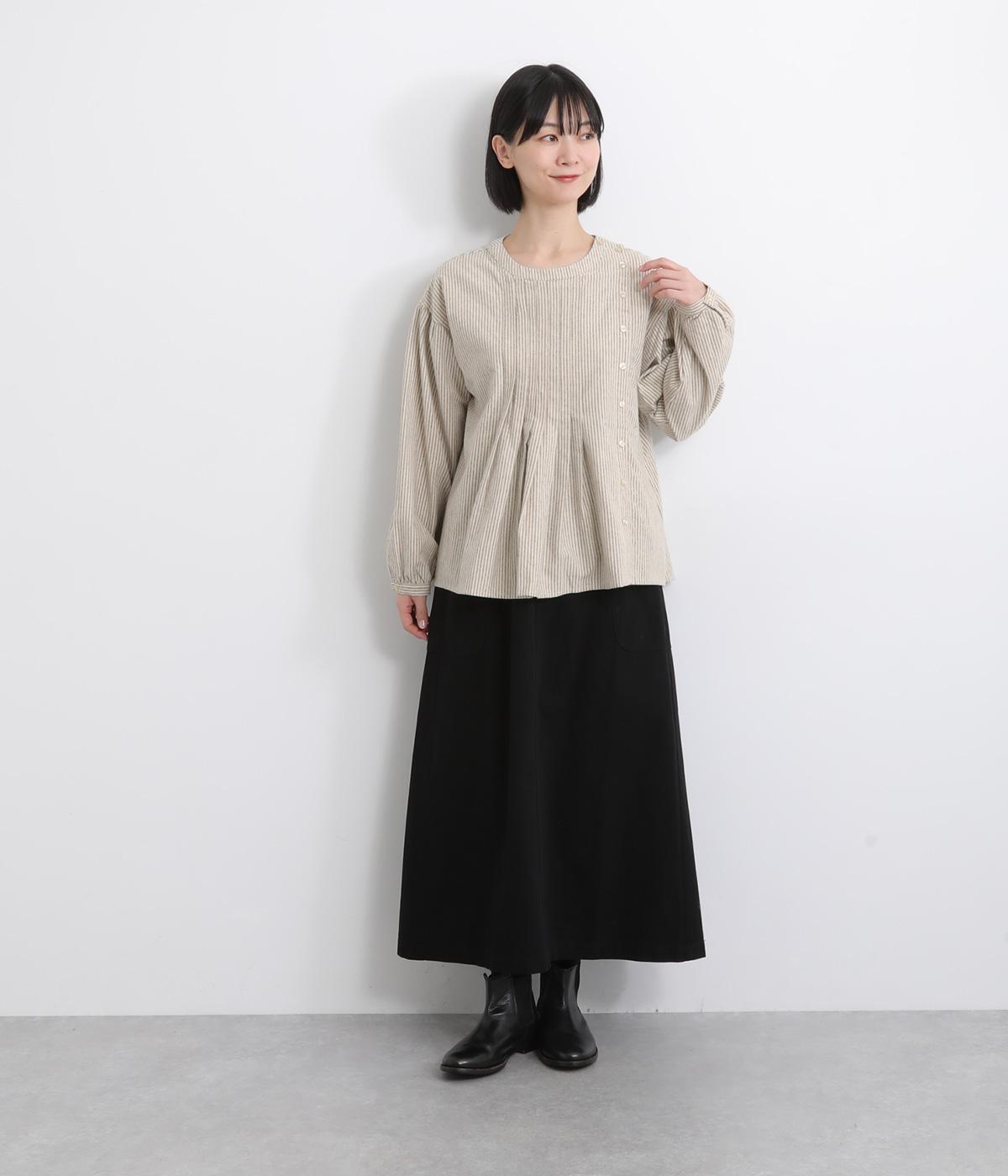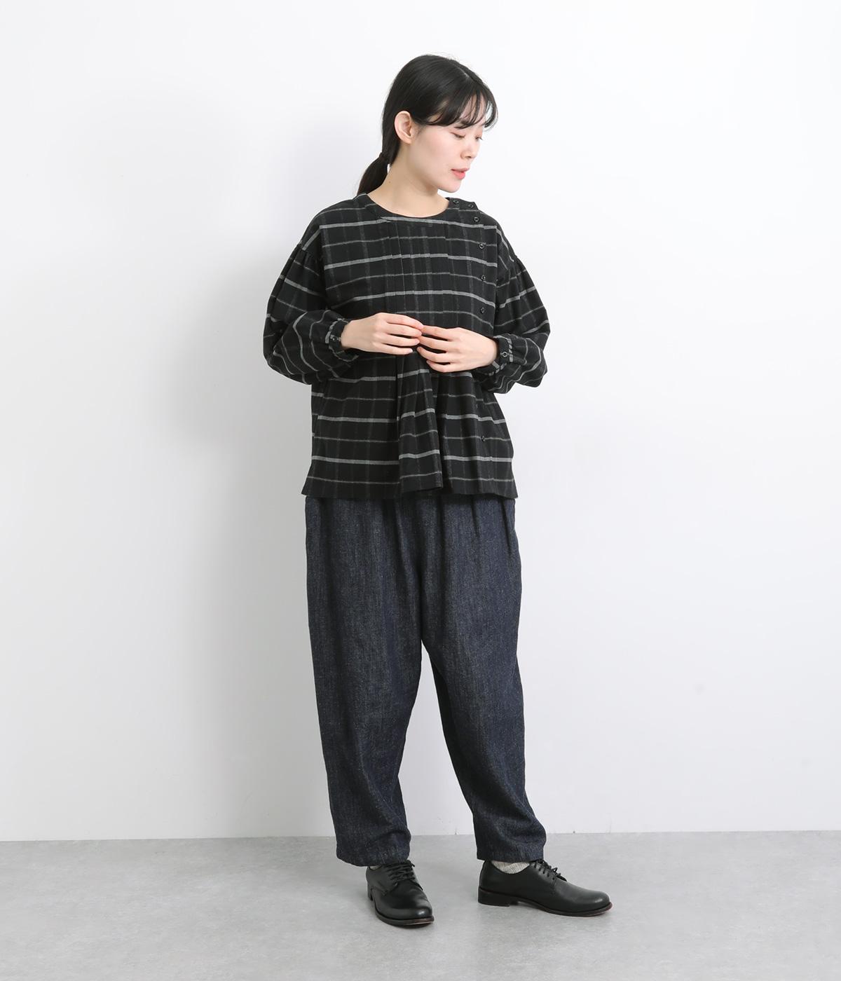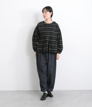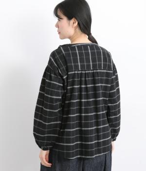 微起毛が優しくあたたかみのあるコットンフランネル生地を使用しました。ナチュラルな風合いが魅力です。ほどよいハリがタックやギャザーをきれいに保ちます。