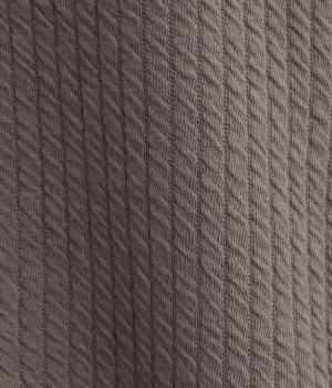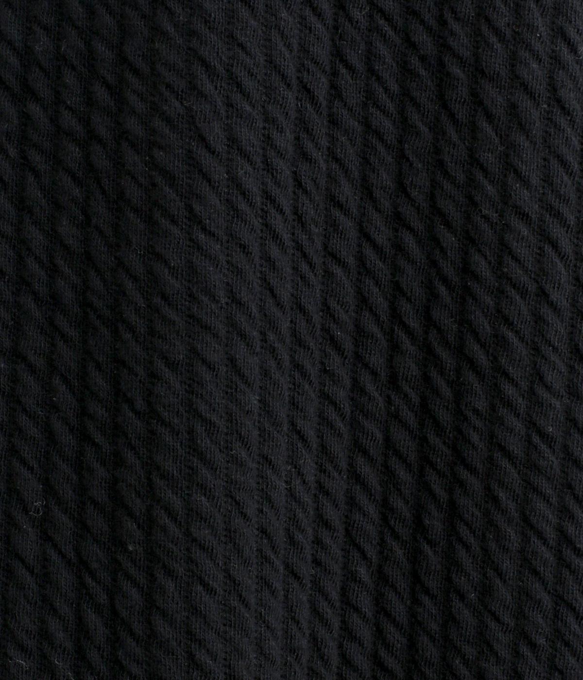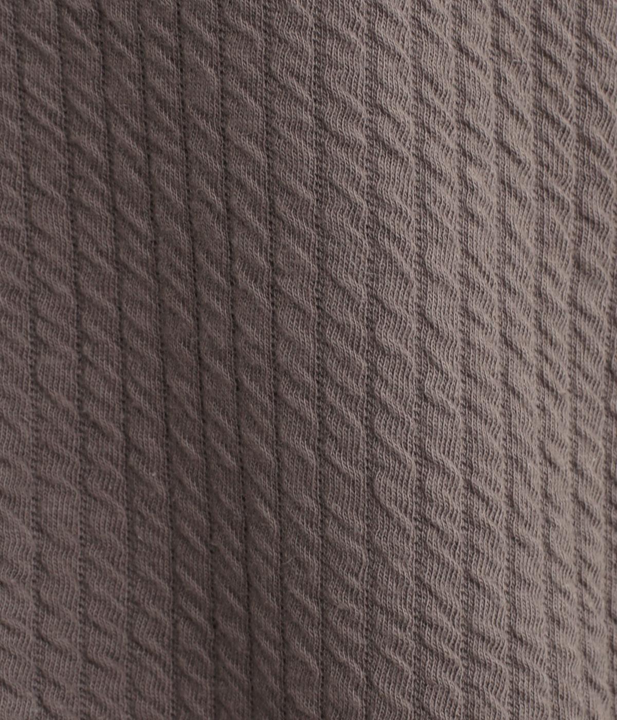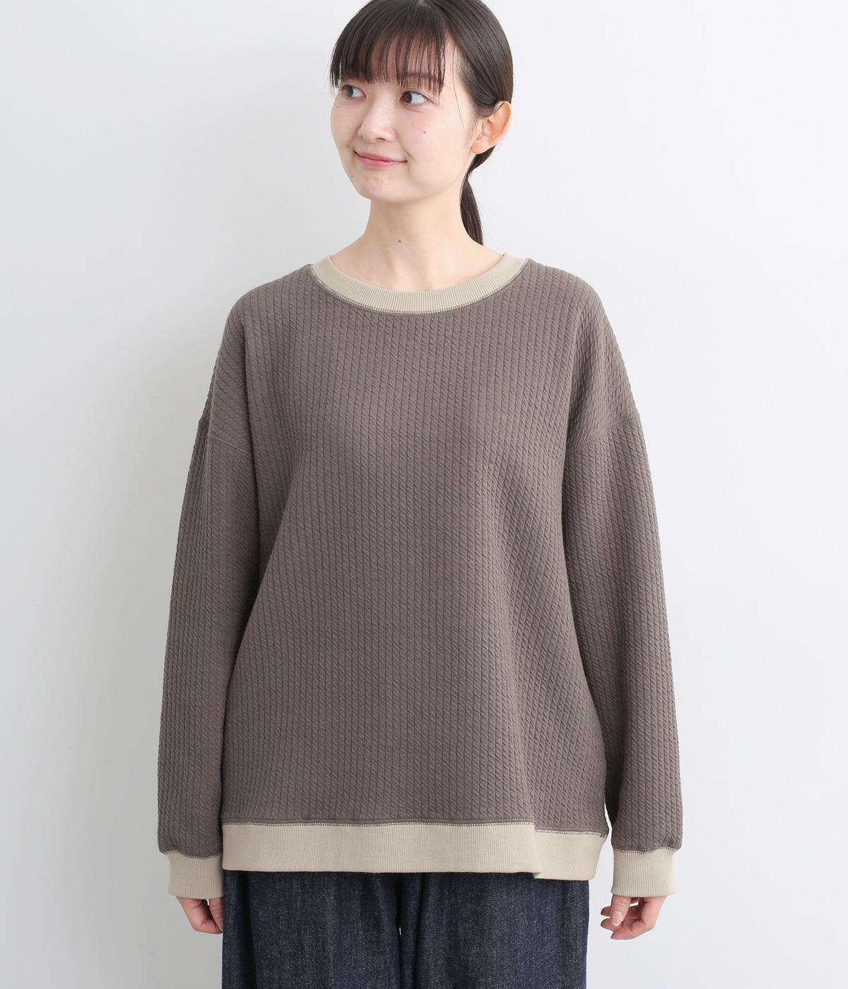 表面にはニットのような縄編み風の柄が特徴のジャカードキルト、裏面はやわらかなスウェットライク素材を使用。肌あたりがよく、一枚でもあたたかいです。