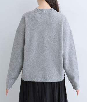 ウール特有のチクチクを感じにくい、ふっくらとしたとてもやわらかな質感のニットです。細めの糸でフラットに編み上げた滑らかな表面感で上品な印象に。体の動きを邪魔しない伸びのよさも◎です。