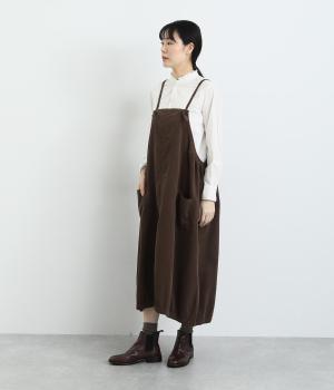 ソフトな風合いのコットンコーデュロイ生地を使用。やわらかな光沢に細畝で、カジュアルすぎない雰囲気のいい仕上がりです。厚手すぎず着心地も◎。