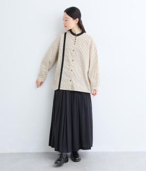 随所を無地で切り替えて、動きのあるデザインに仕立てたシャツです。ランダムに配置されたボタンがアクセント。身幅にゆとりを持たせたオーバーシルエットは、前をあけて羽織って合わせるのもおすすめです。