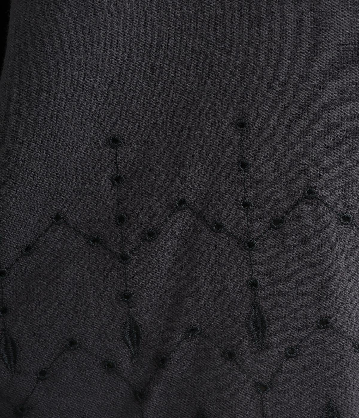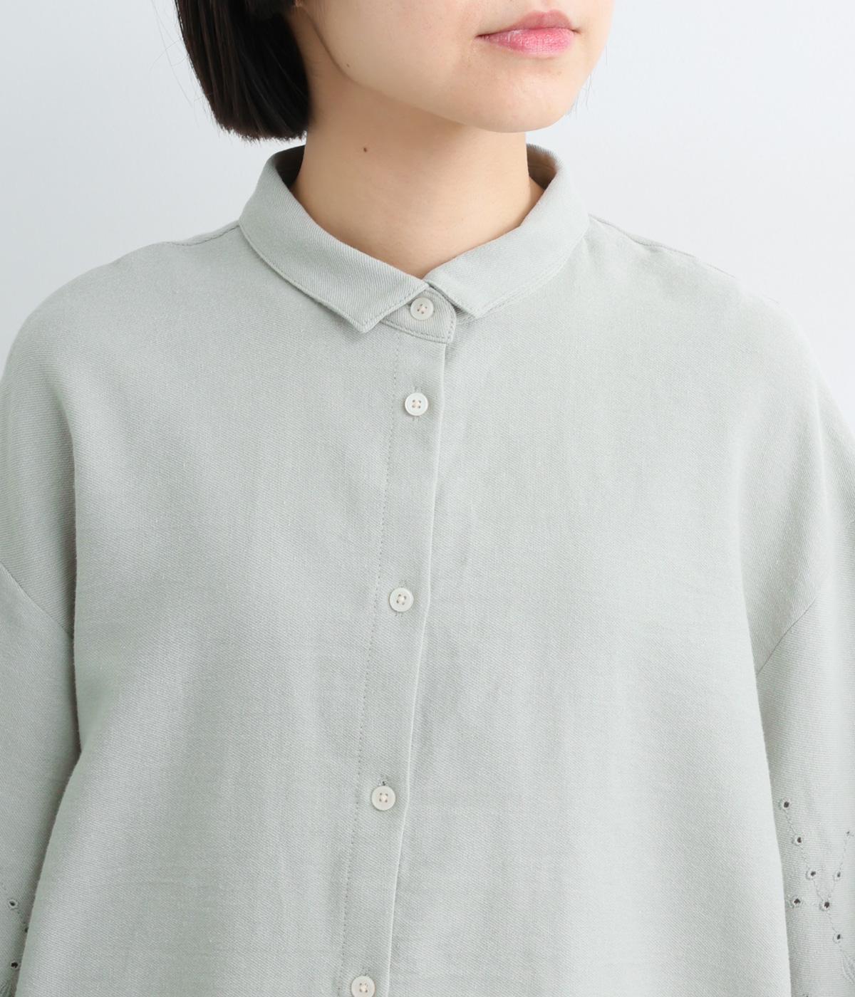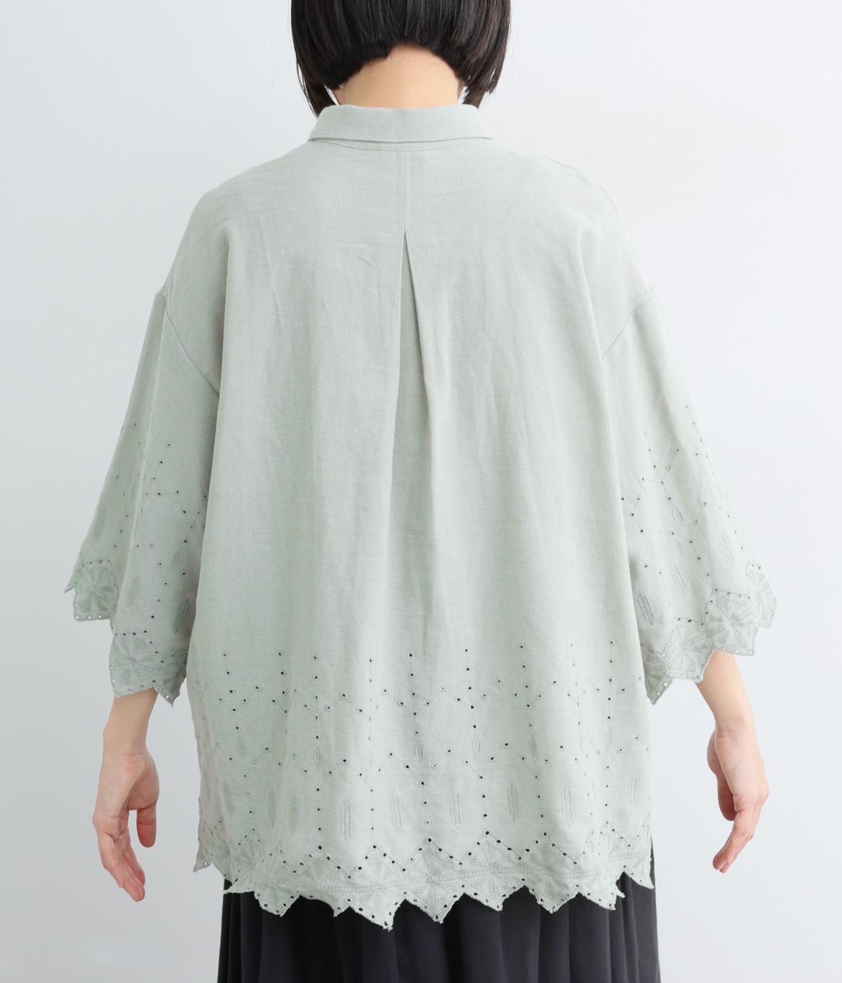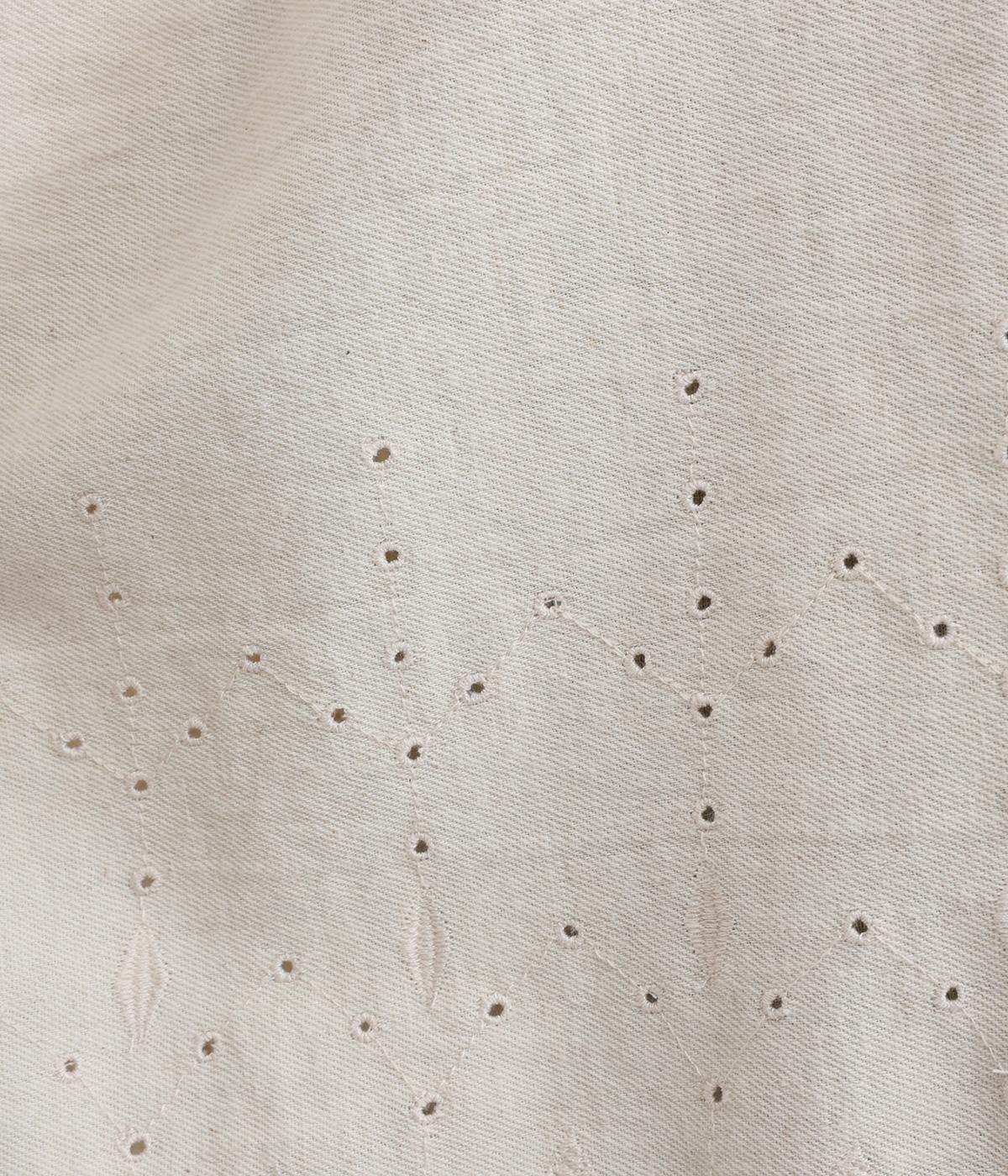 裾に施されたスカラップ刺しゅうが、上品な華やかさを演出するブラウスです。袖と裾の繊細なレースの透け感は、装いに奥行きと軽やかさをプラス。裾に向かって広がるシルエットが、腰まわりを自然にカバーしてくれます。