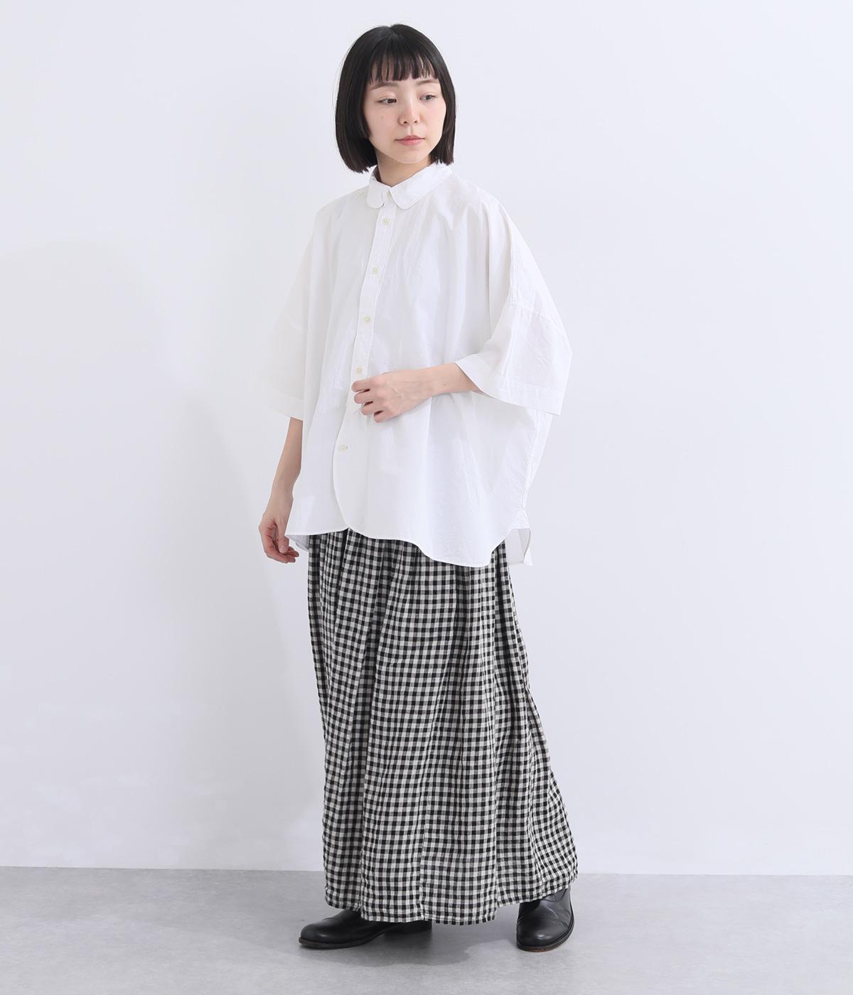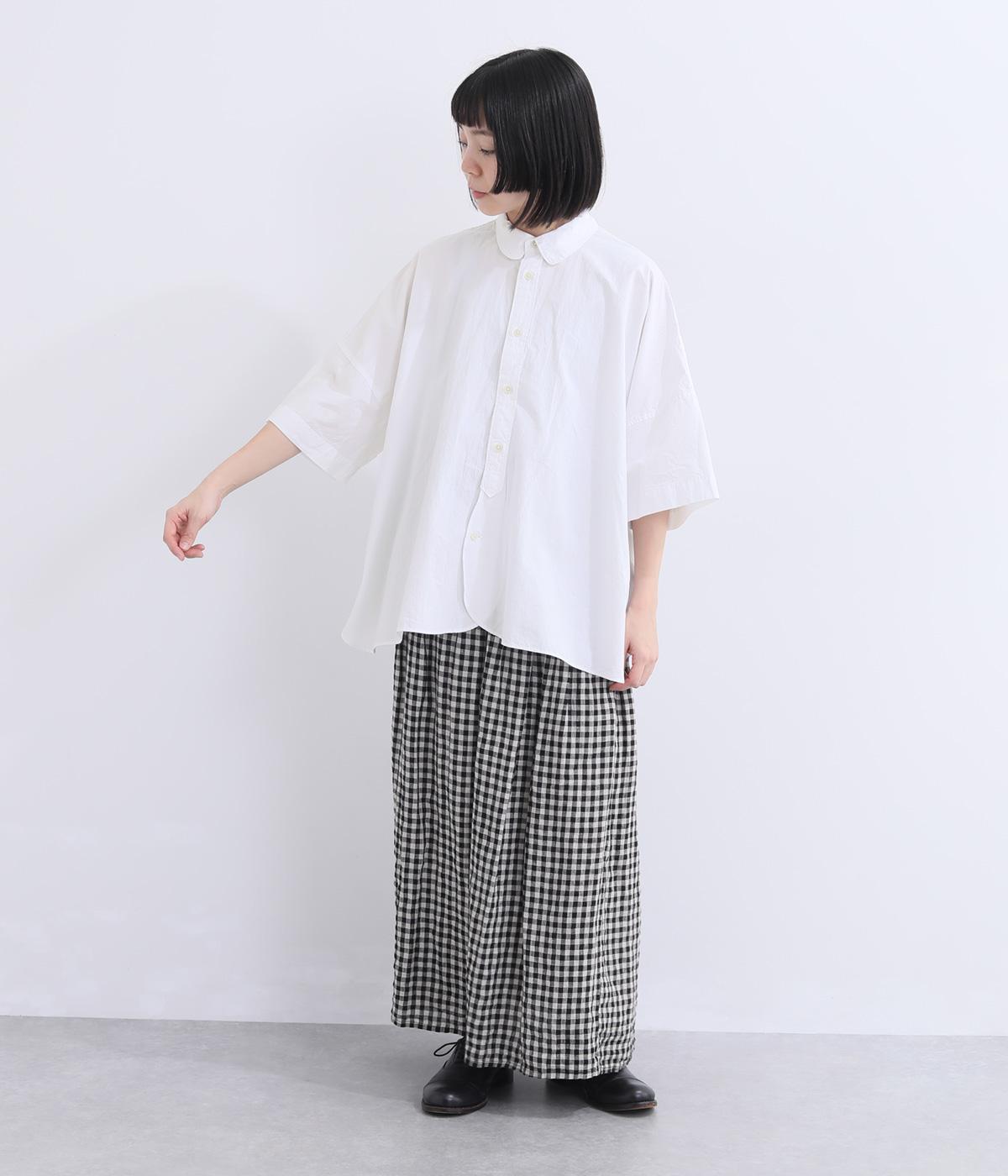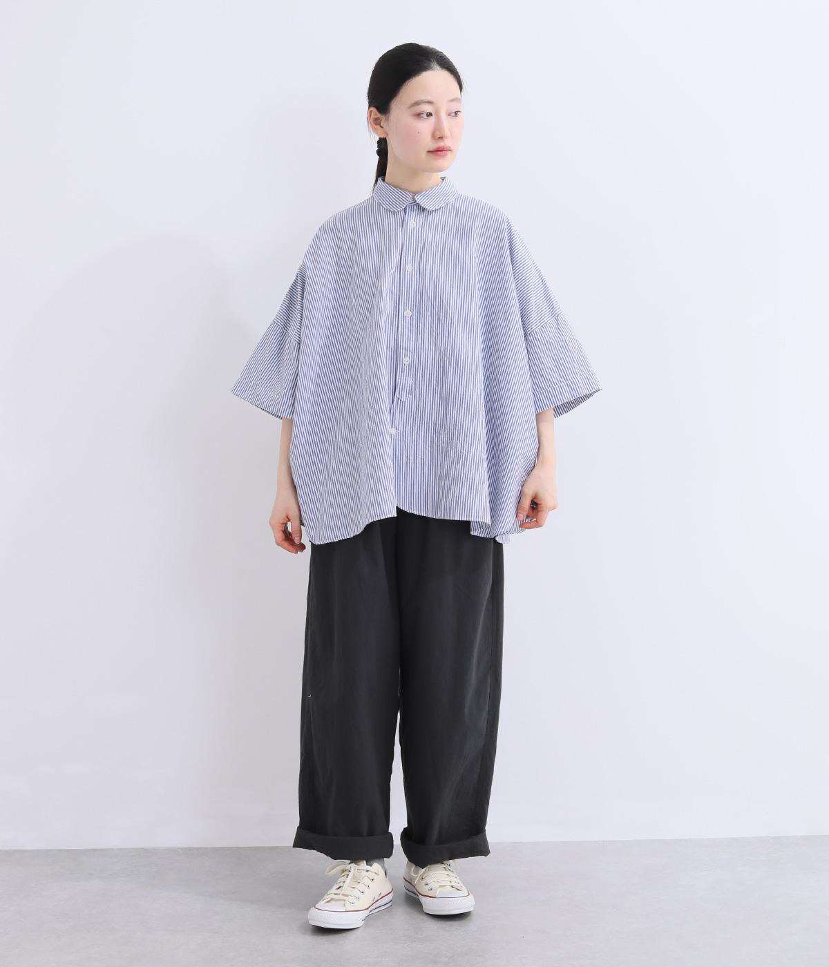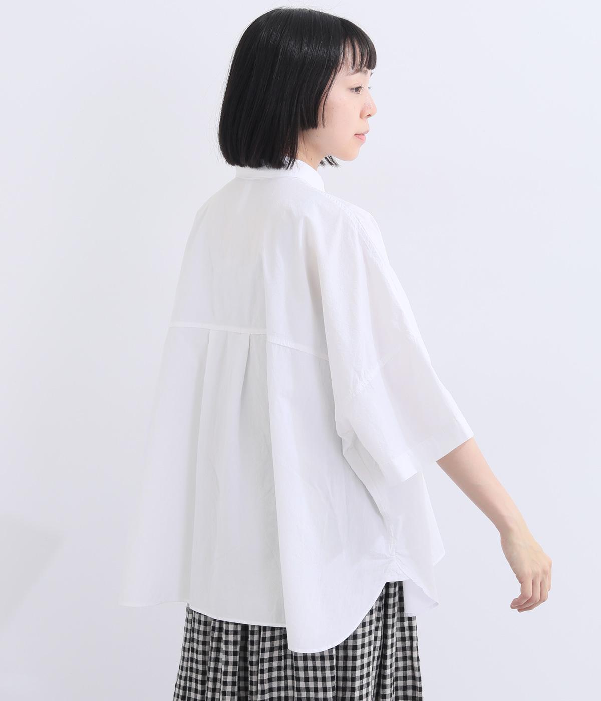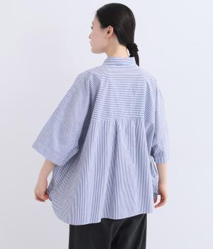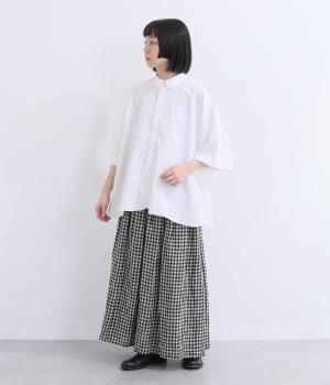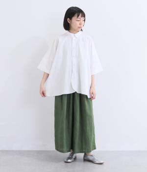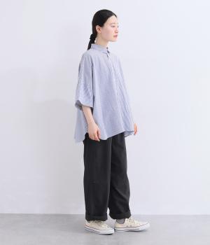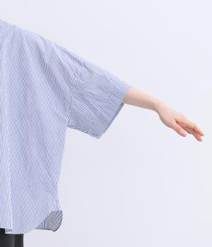 ゆったりとしたワイド袖がこなれた雰囲気を運びます。ワッシャーブロード特有の自然なシワ感がナチュラルな表情を添え、リラックス感のある着心地。ラウンドした裾がやわらかな女性らしさを演出します。