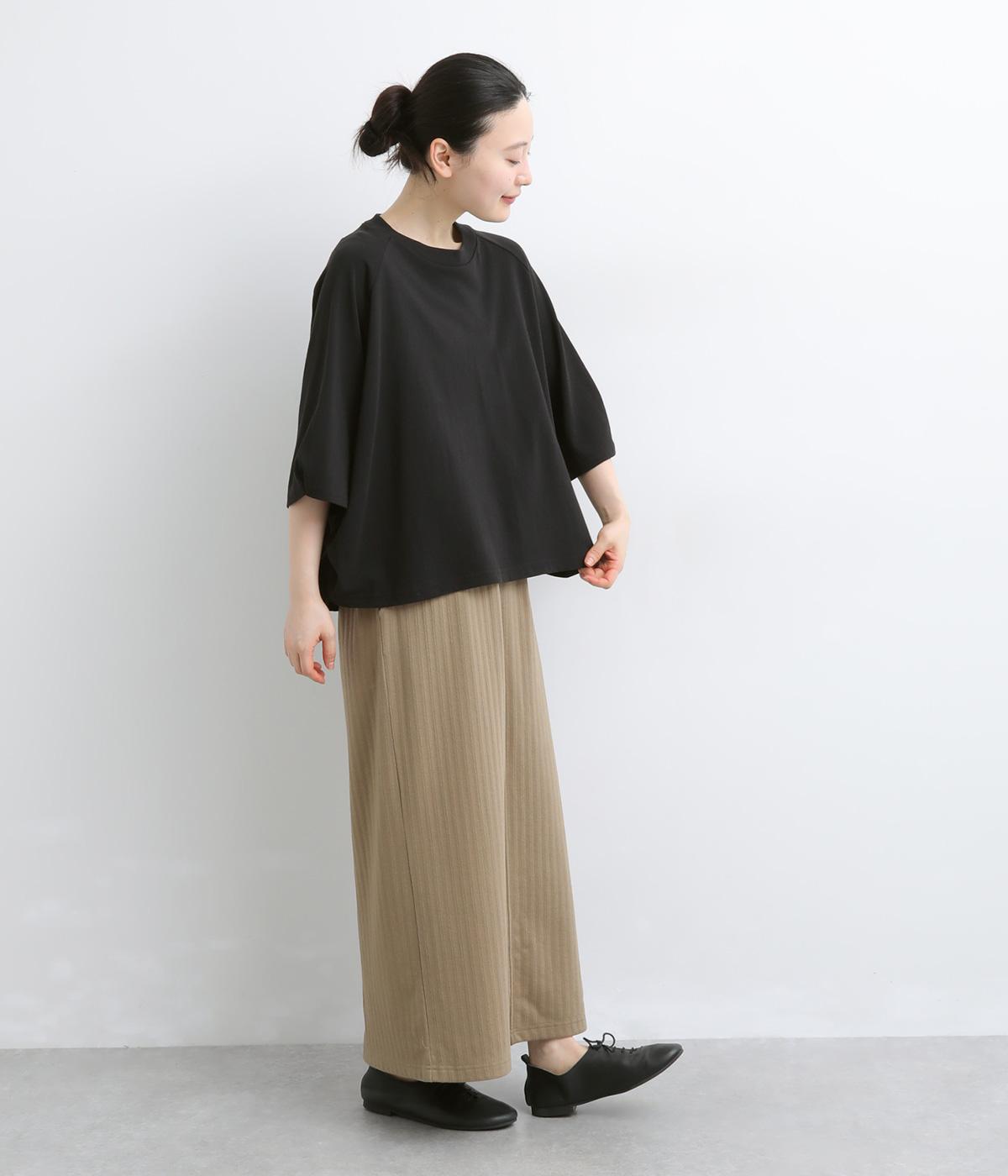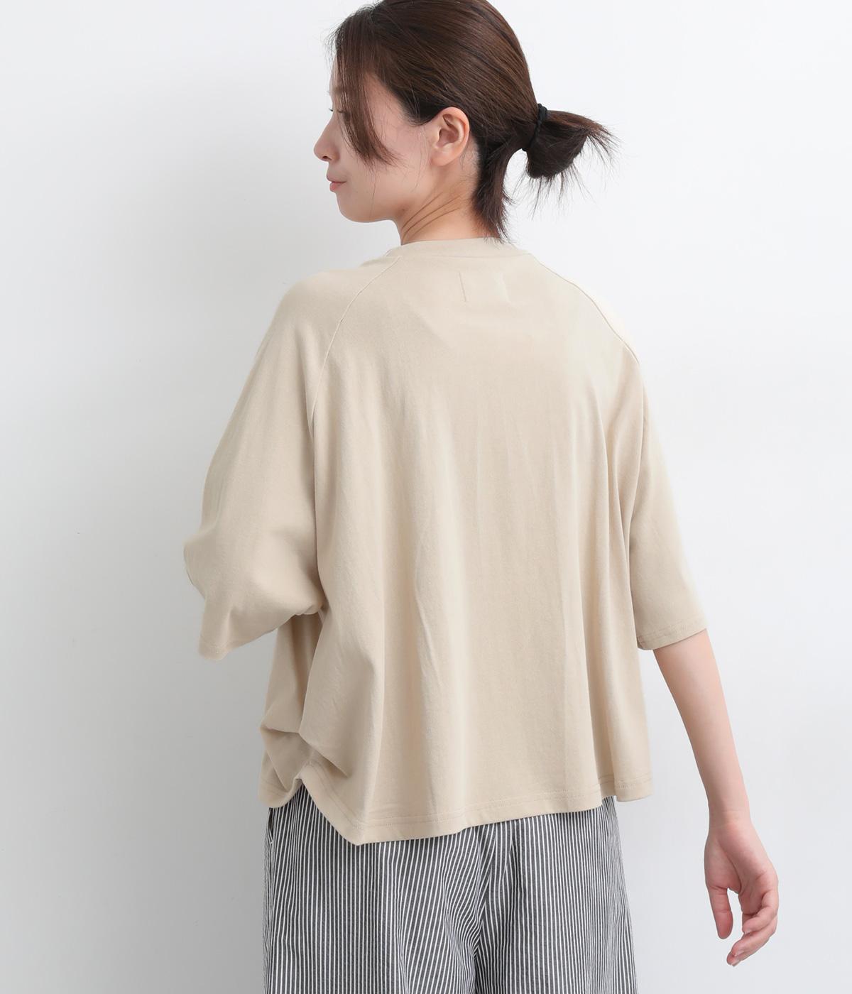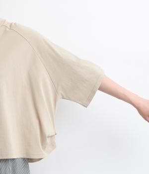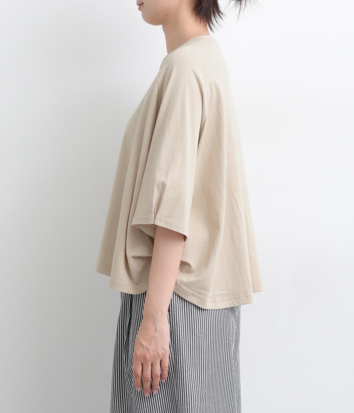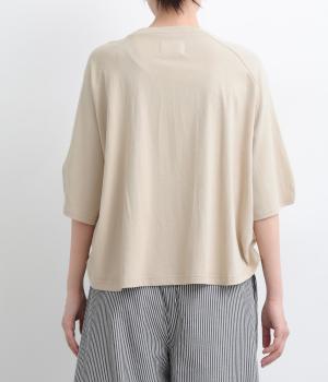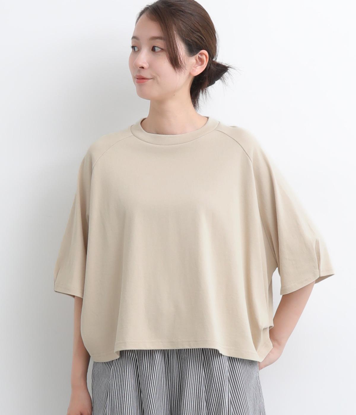 太リブにラグラン袖のメンズライクな要素を、丸みのあるシルエットで中和したMIXテイストな一枚。ワイドな身幅で風通りがよく、サイドタックが立体的なニュアンスを生みます。6分袖でロングシーズン着まわせるのも◎。