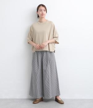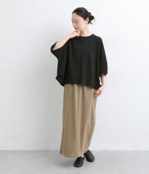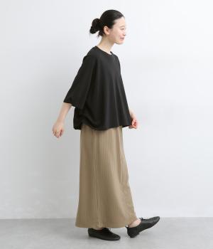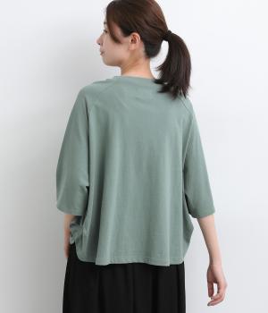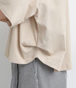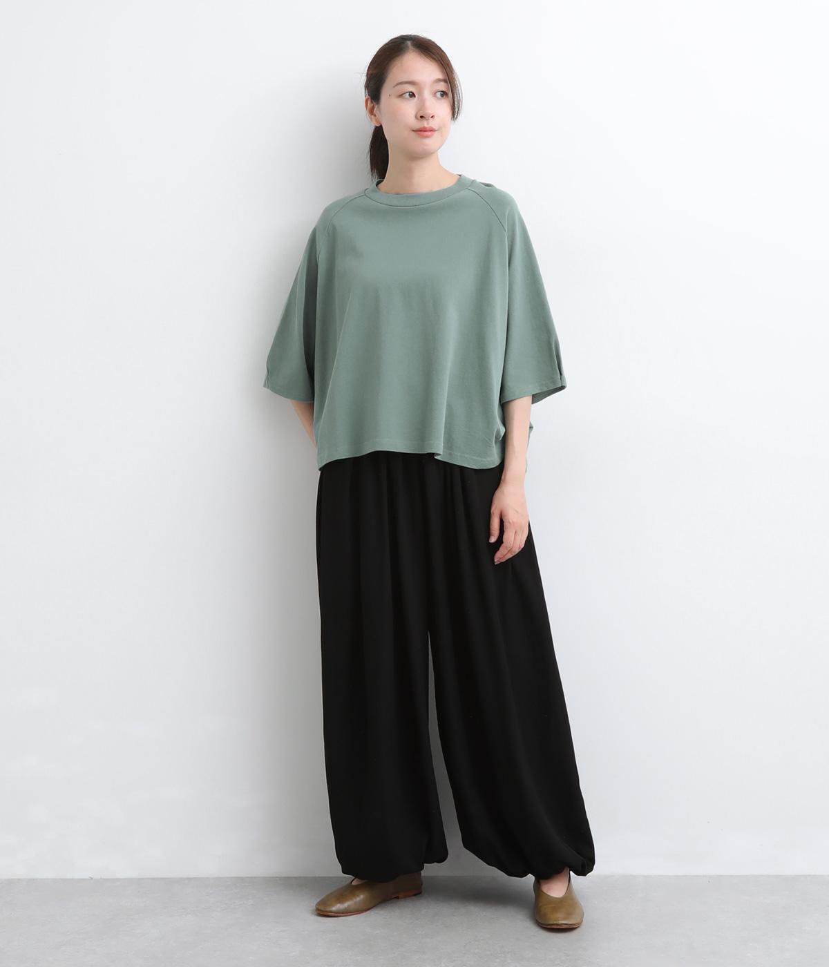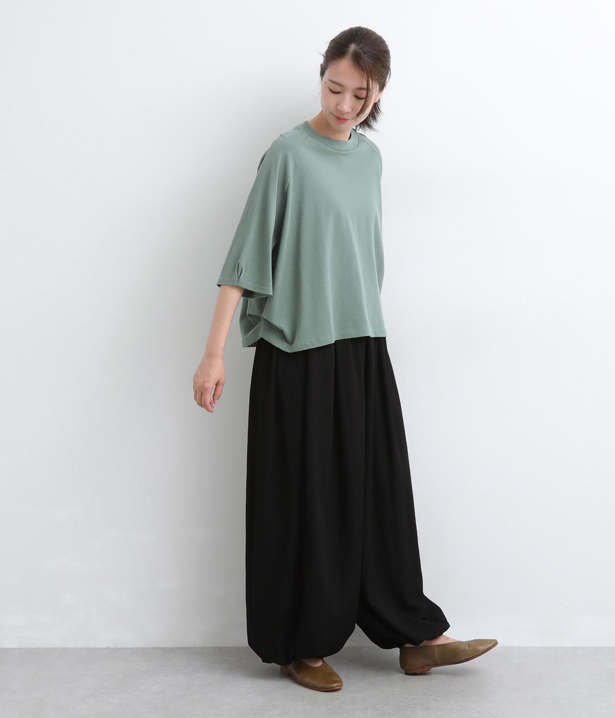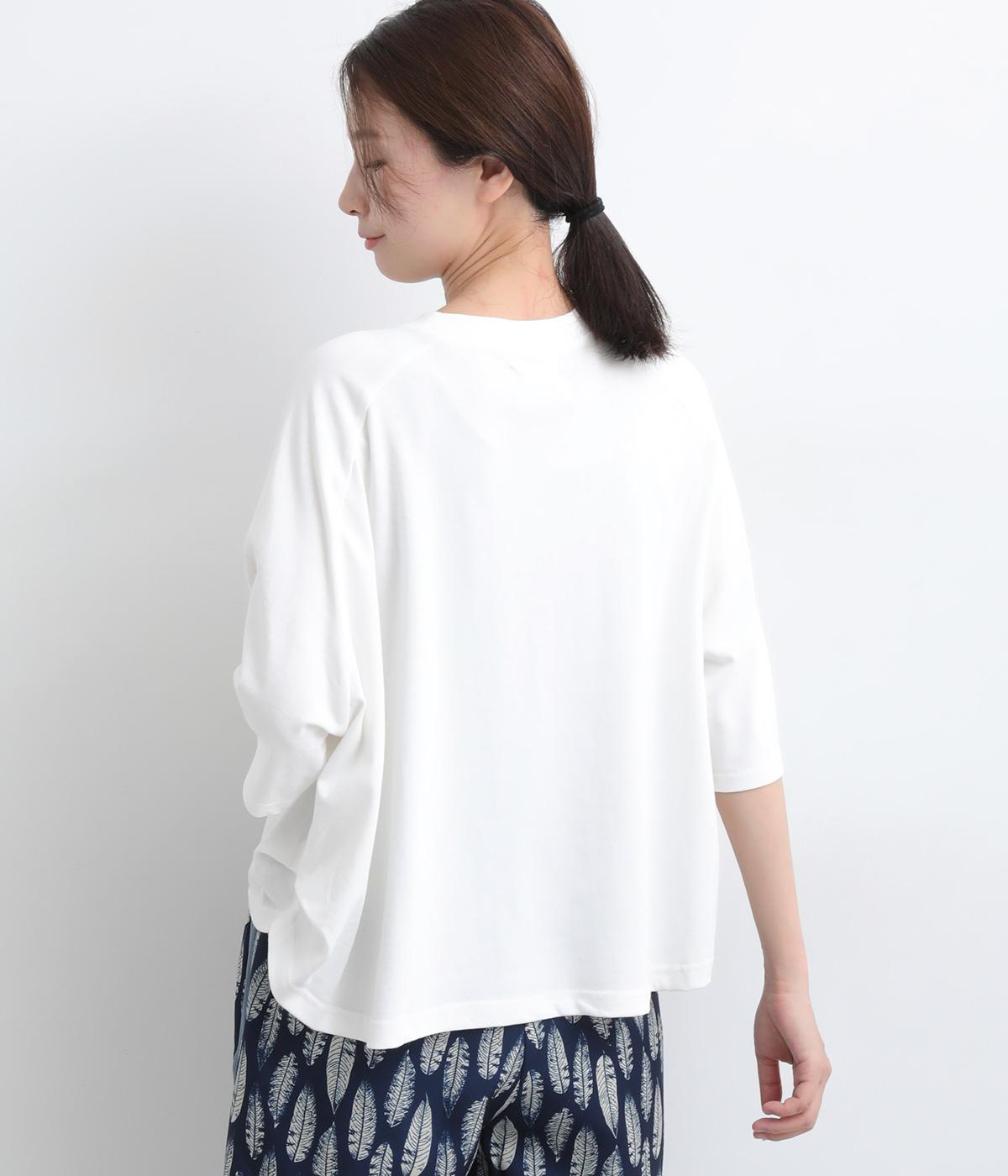 太リブにラグラン袖のメンズライクな要素を、丸みのあるシルエットで中和したMIXテイストな一枚。ワイドな身幅で風通りがよく、サイドタックが立体的なニュアンスを生みます。6分袖でロングシーズン着まわせるのも◎。