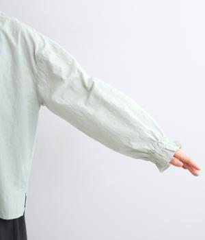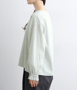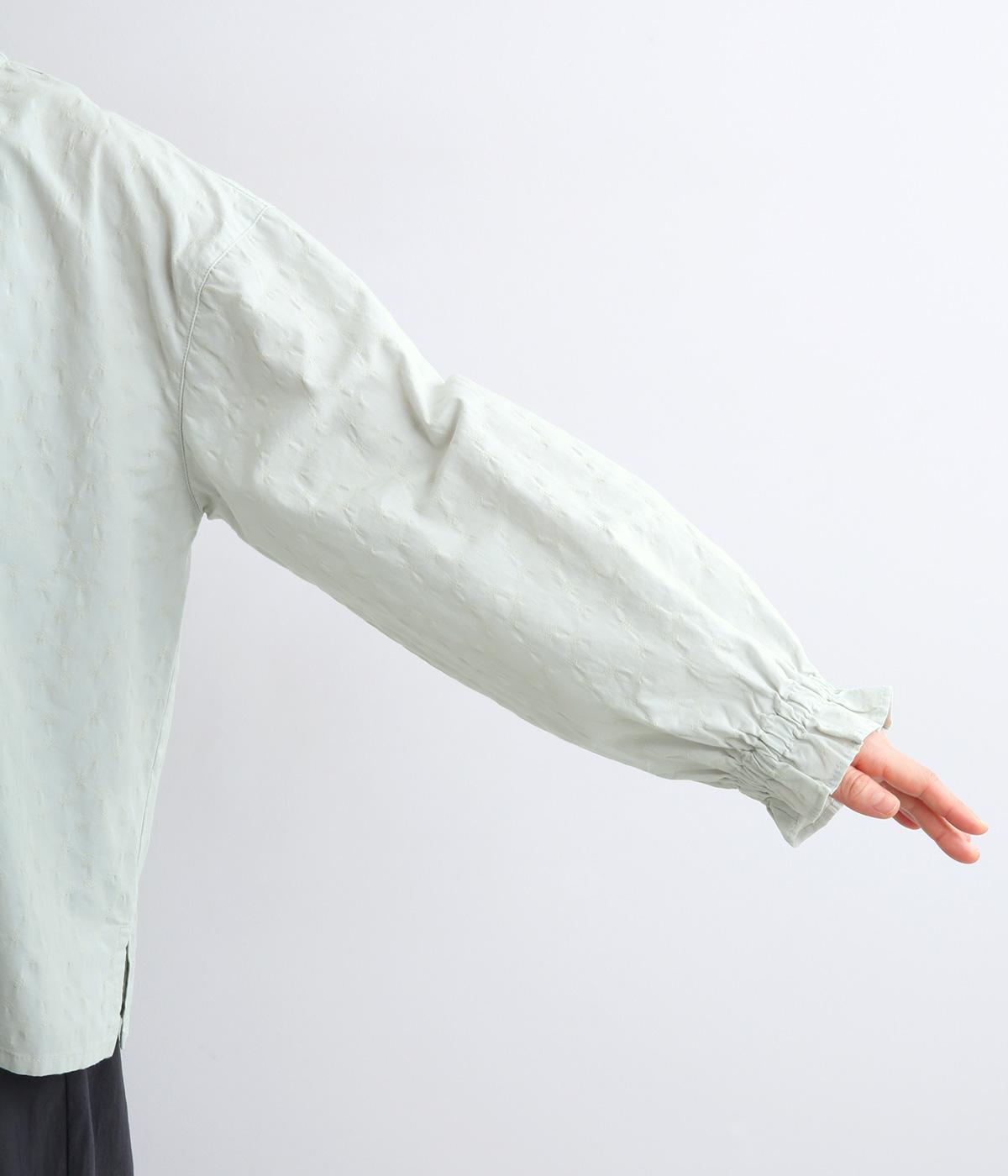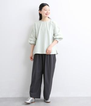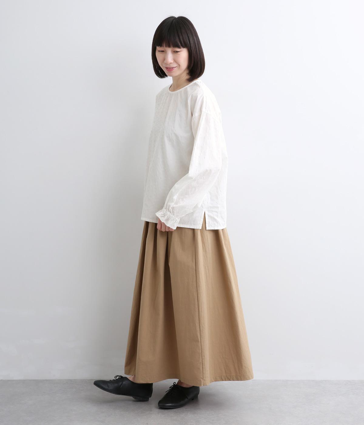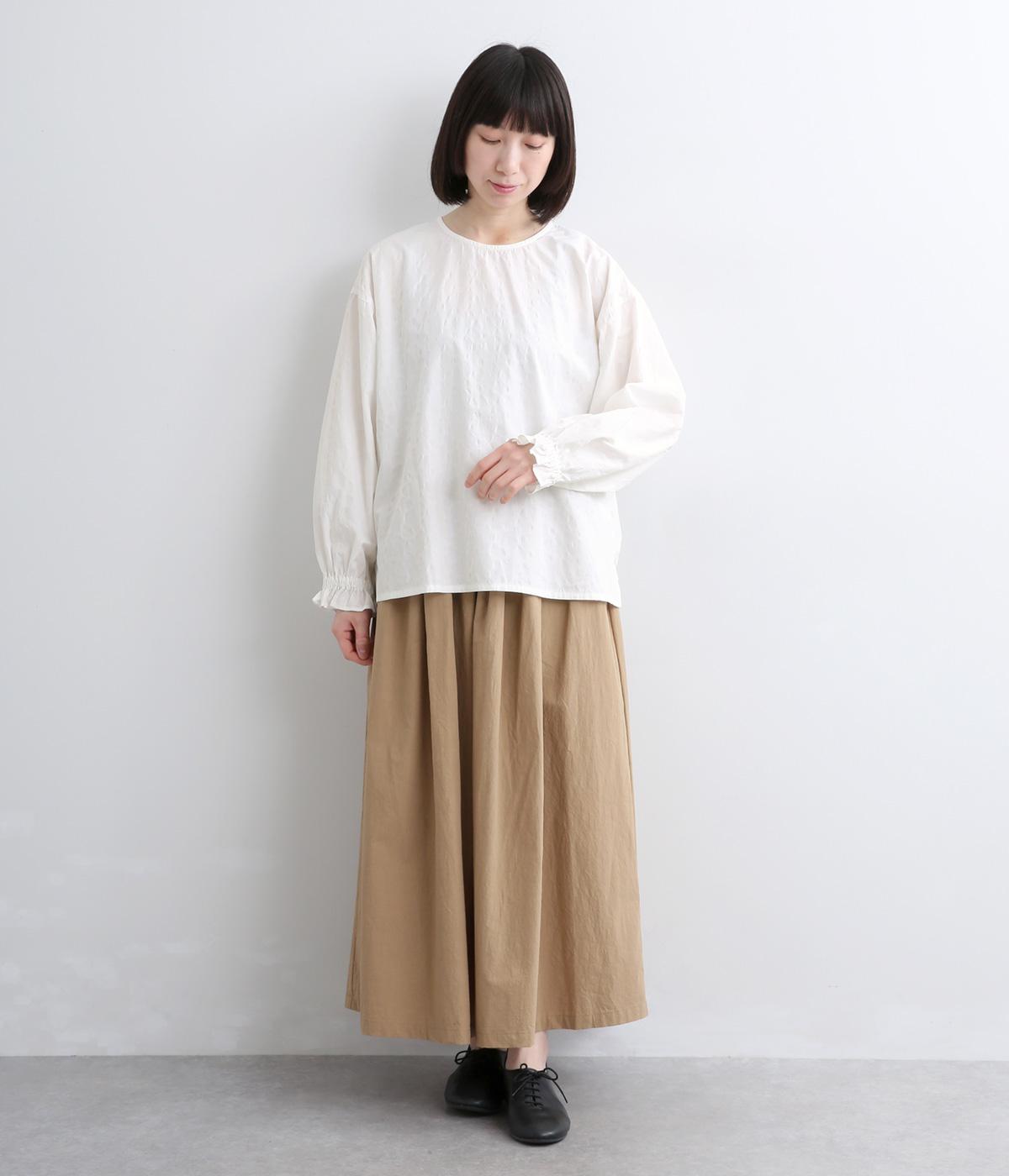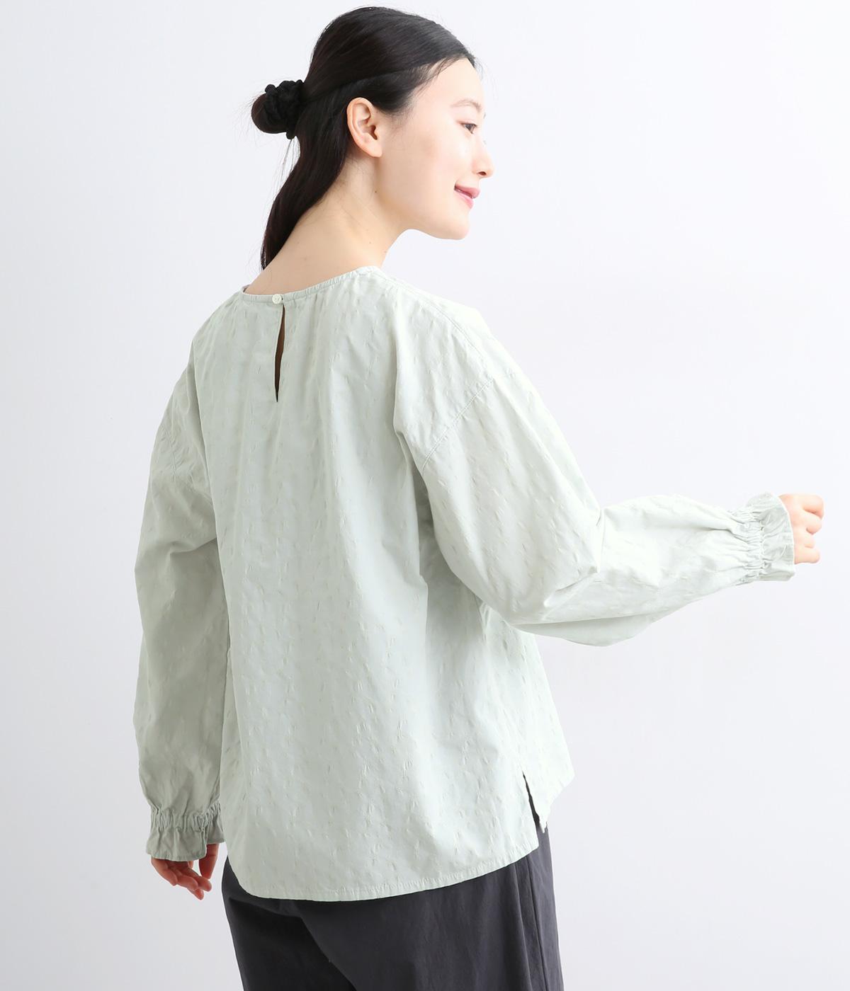 無地感覚で着こなしやすく、さり気なく表情をつけてくれるドットジャカードが印象のいい一枚。適度にゆとりを持たせたボックス型は、サイドスリット入りでボトム合わせもすっきり見え。袖口フリルが可愛らしく、ゴム入りでたくし上げも◎。
