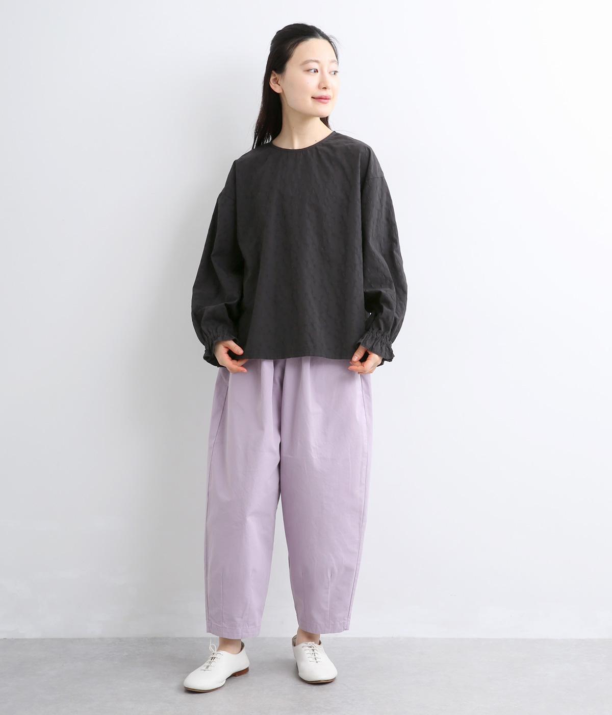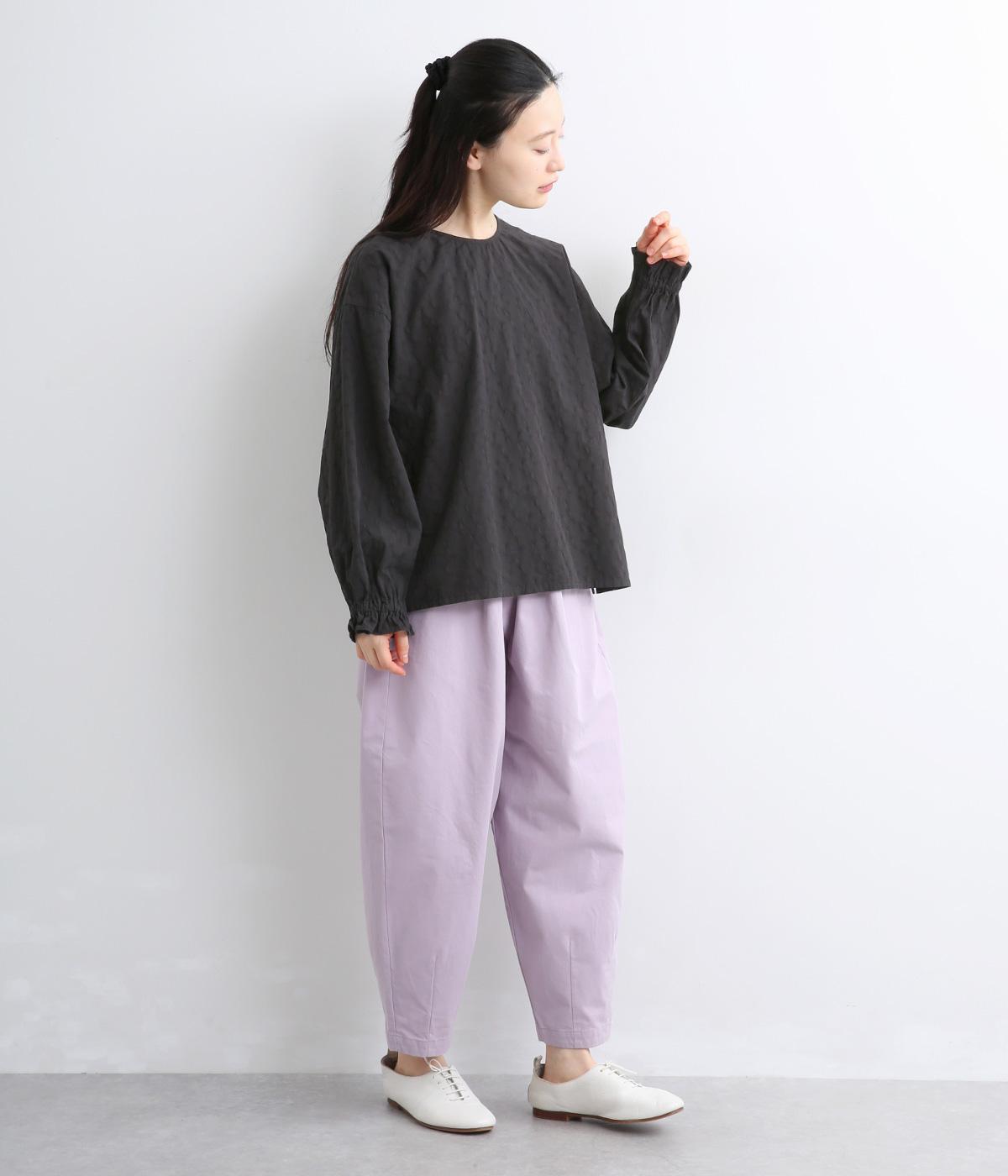 さり気なく表情をつけてくれるドットジャカードのコットン生地を使用。使い勝手のいい薄め中厚手のしっかりとした生地感で、ロングシーズン快適に着まわせます。