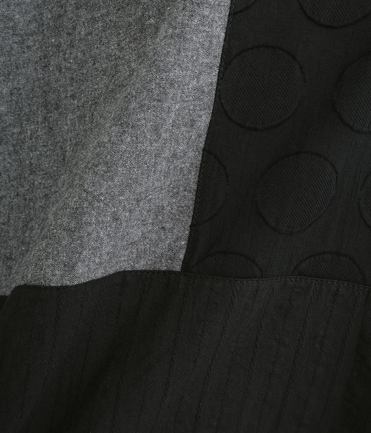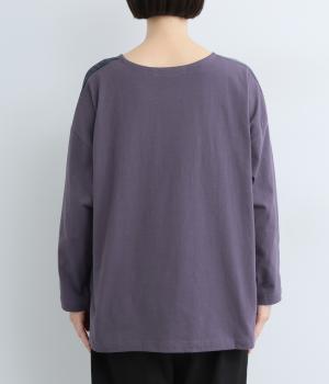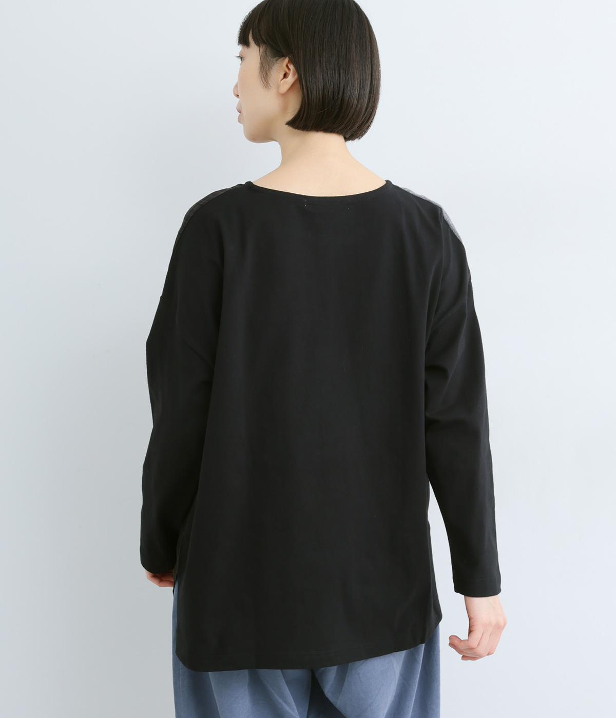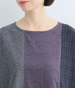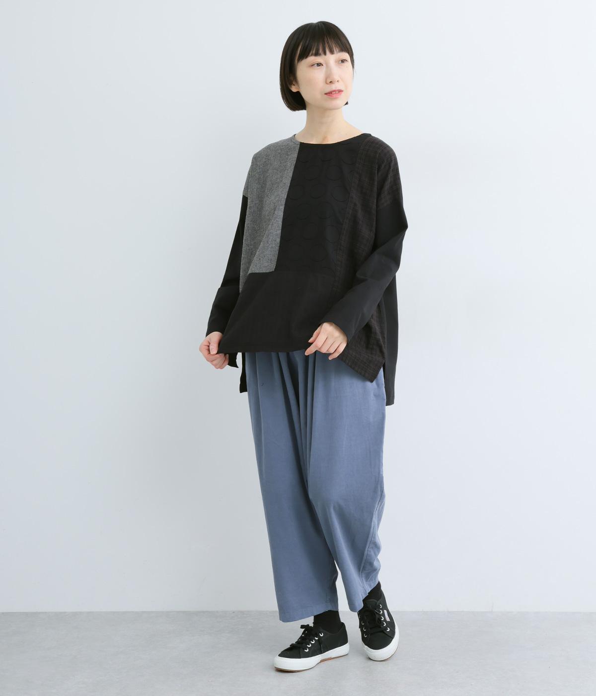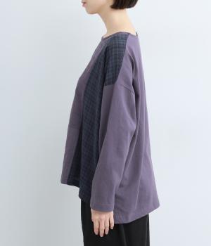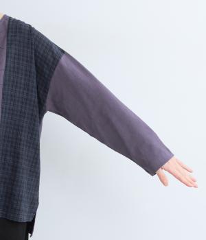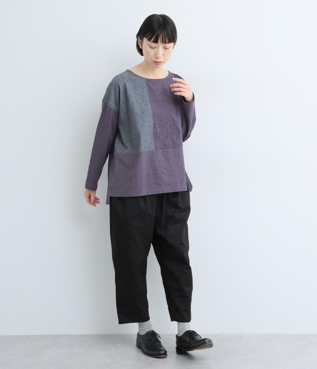 前身頃の様々な柄の布帛生地を切り替えたパッチワーク風、袖や後身頃はやわらかなカットソー素材で、デザイン性と着心地を両立。ナチュラルな風合いのコットンで、着るほど体になじみます。