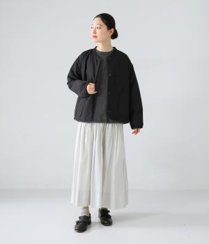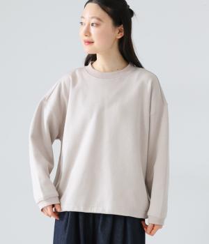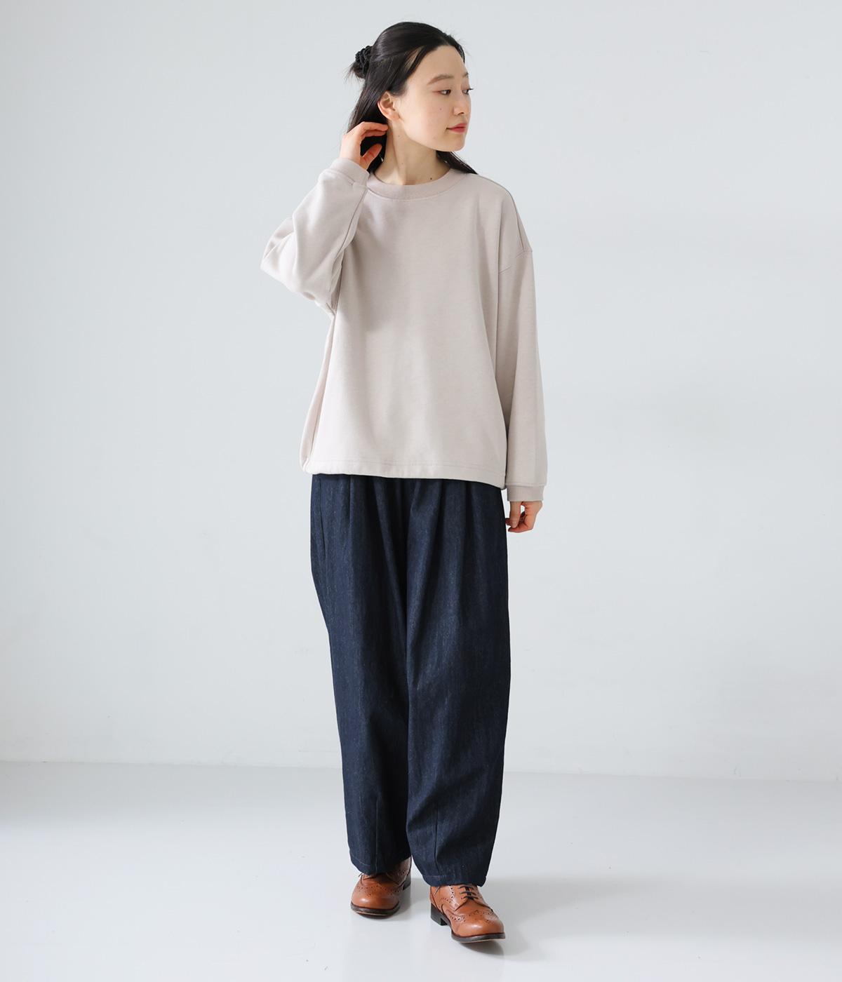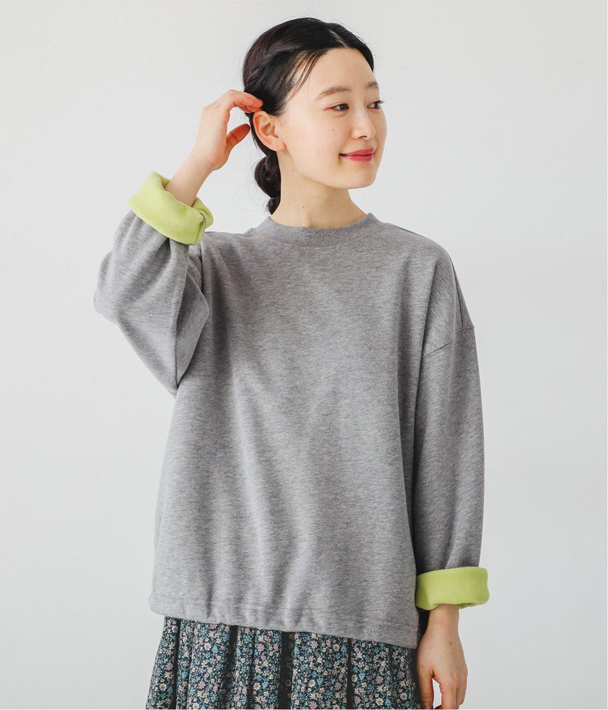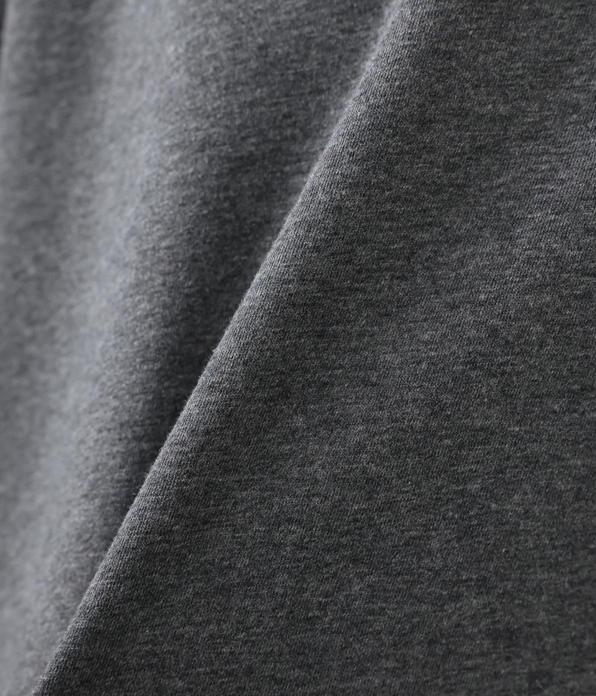 表面はさらっとなめらかな肌ざわりの天竺素材。裏面はふっくらとしたやわらかなフリース素材を使用した、あたたかな着用感を叶える生地です。軽くて伸びが良く、デイリーに活躍します。