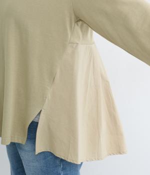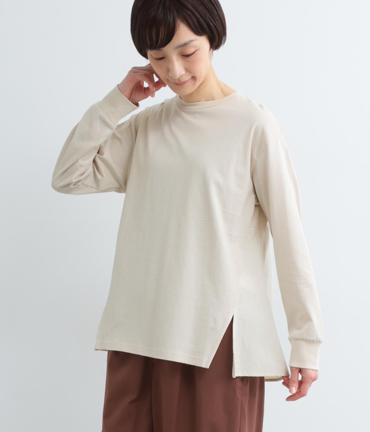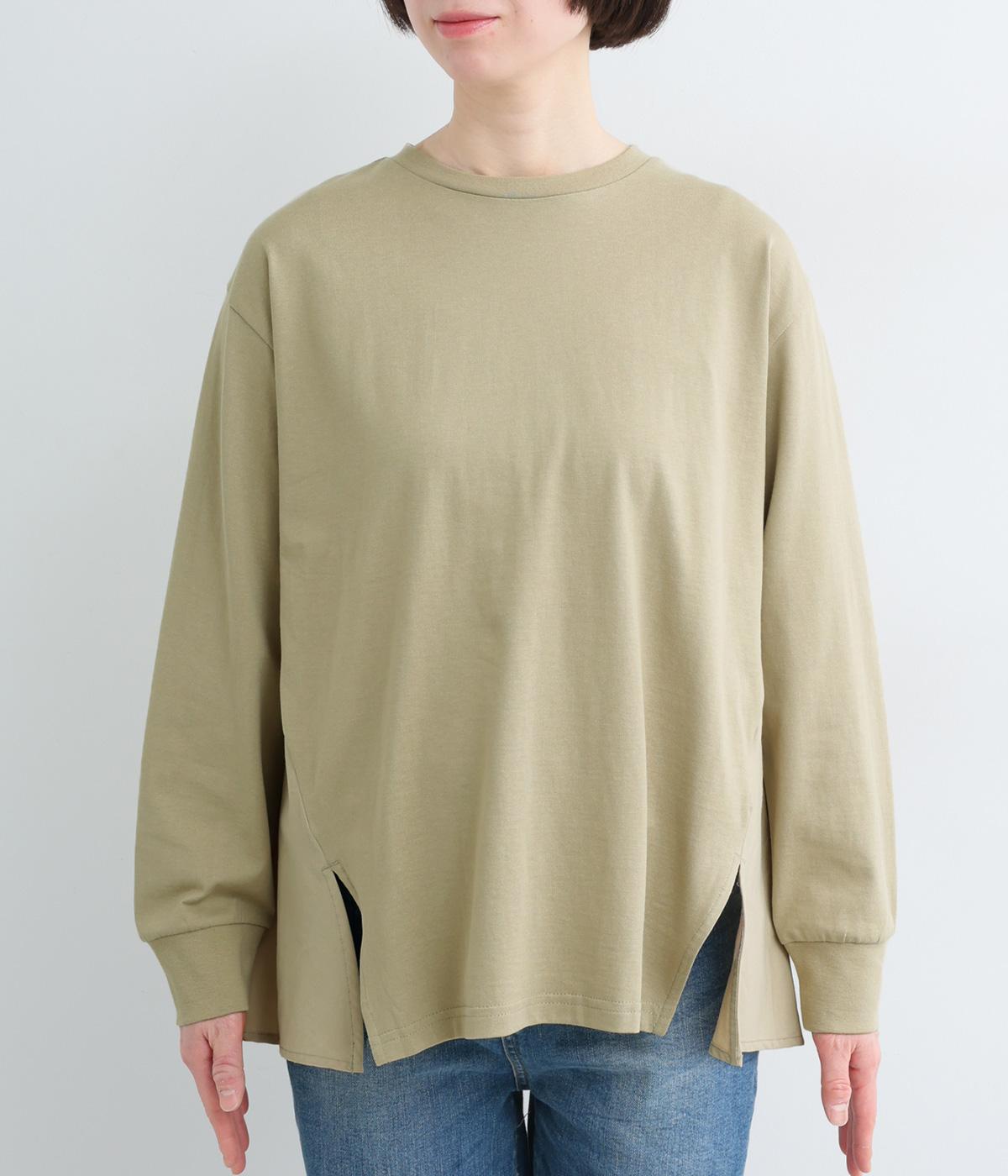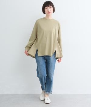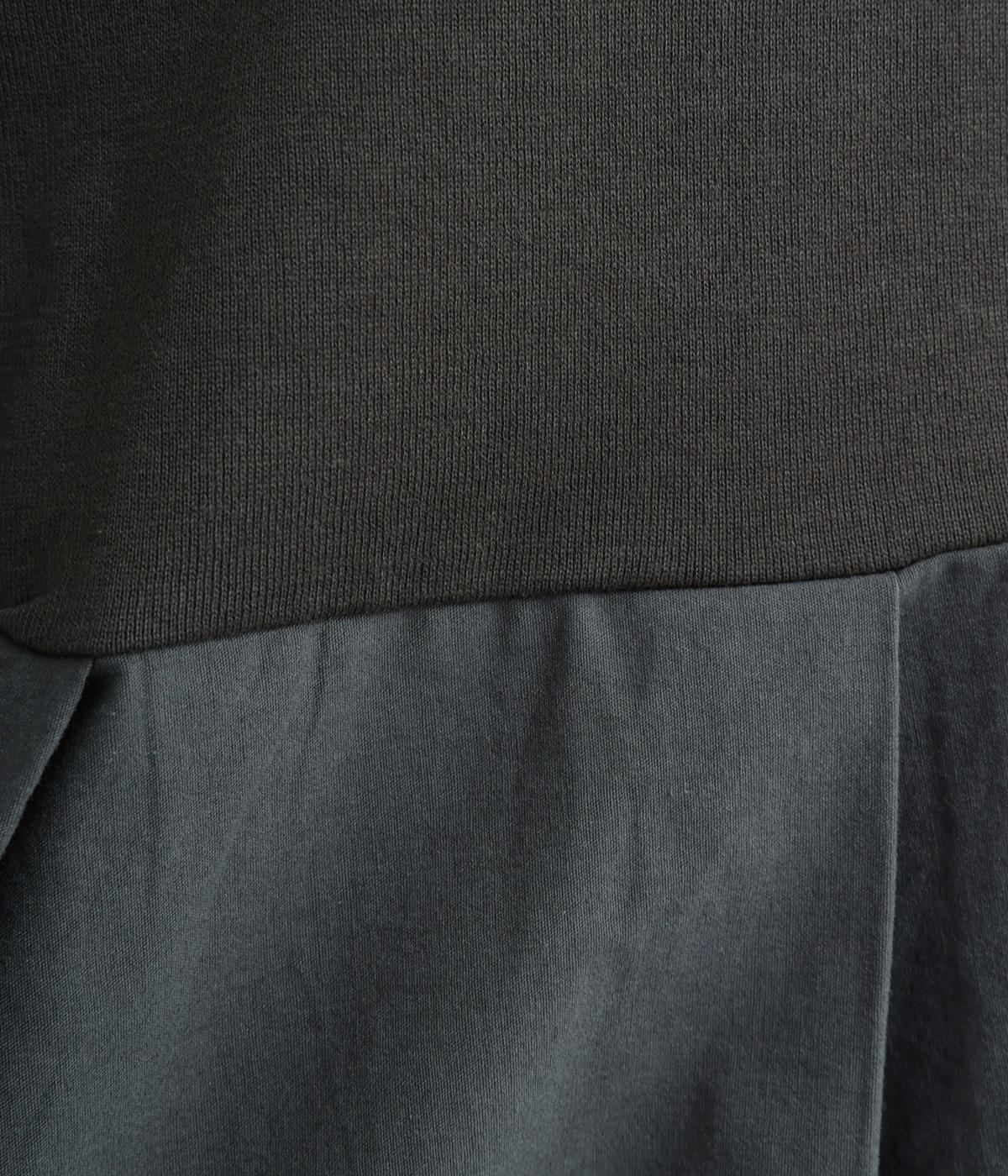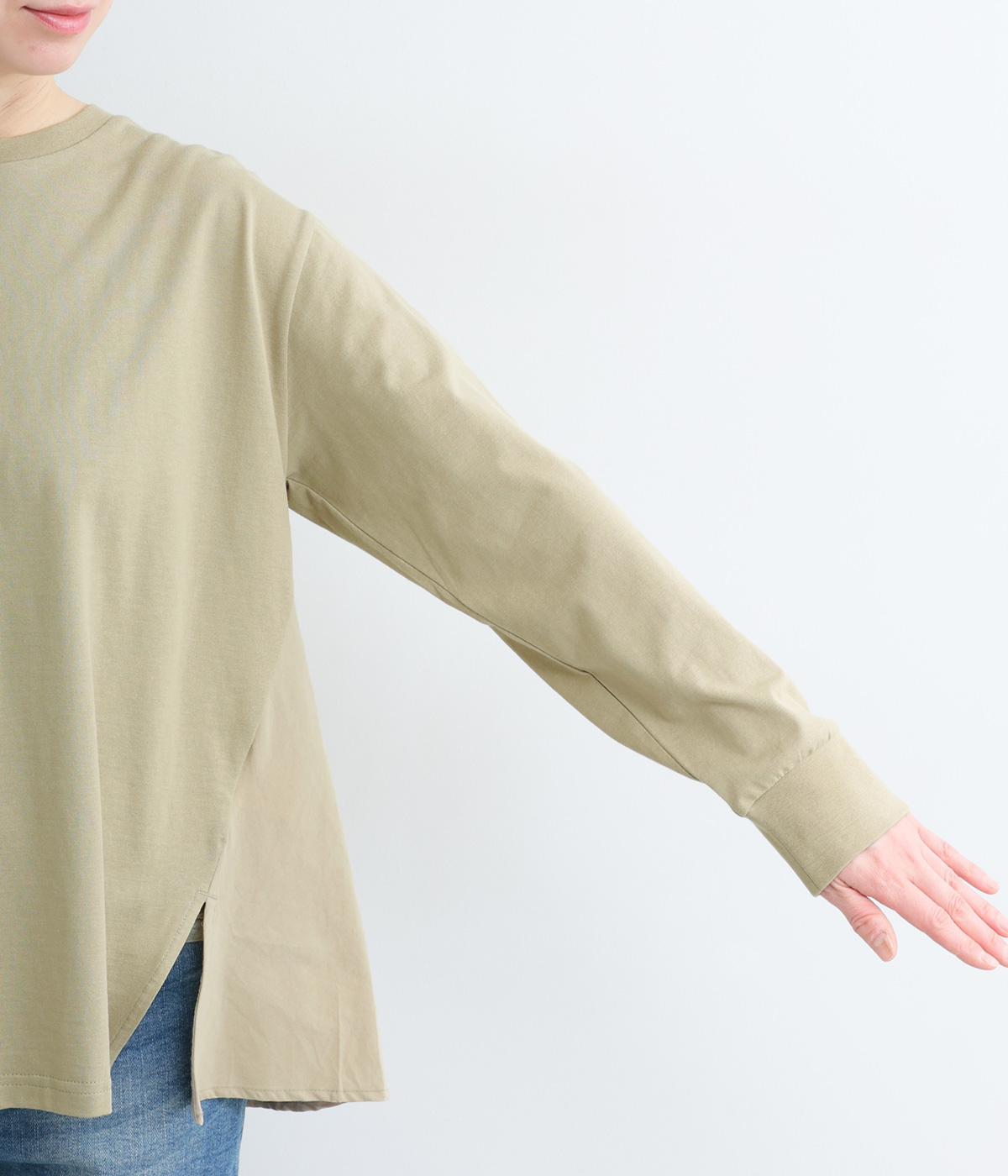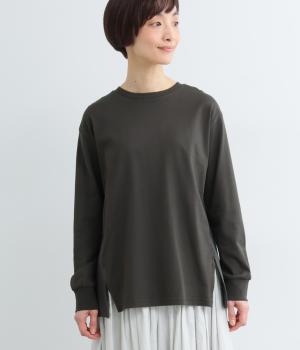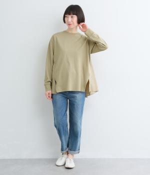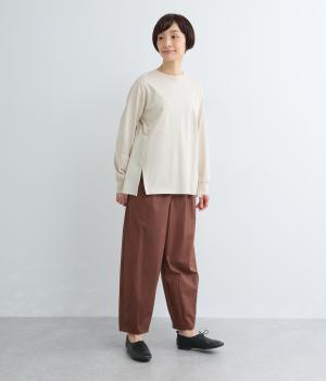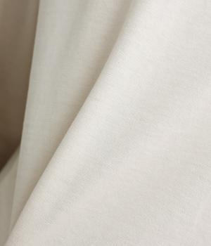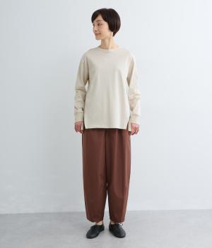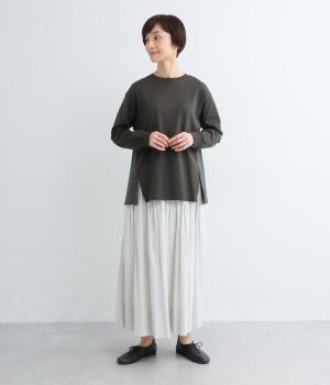 ややドライなタッチが心地よいコットン天竺と、軽やかな平織り生地を組み合わせています。天竺は強撚糸を使用し、なめらかでほんのり光沢のある表面感に。ほどよい厚みで、安心感のある着心地に仕上げています。