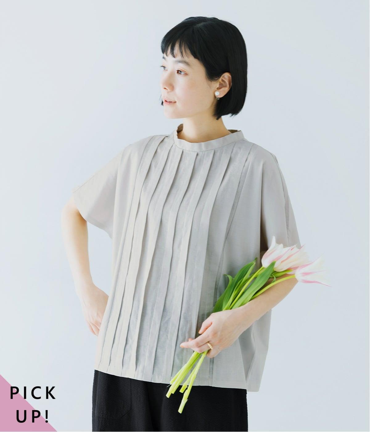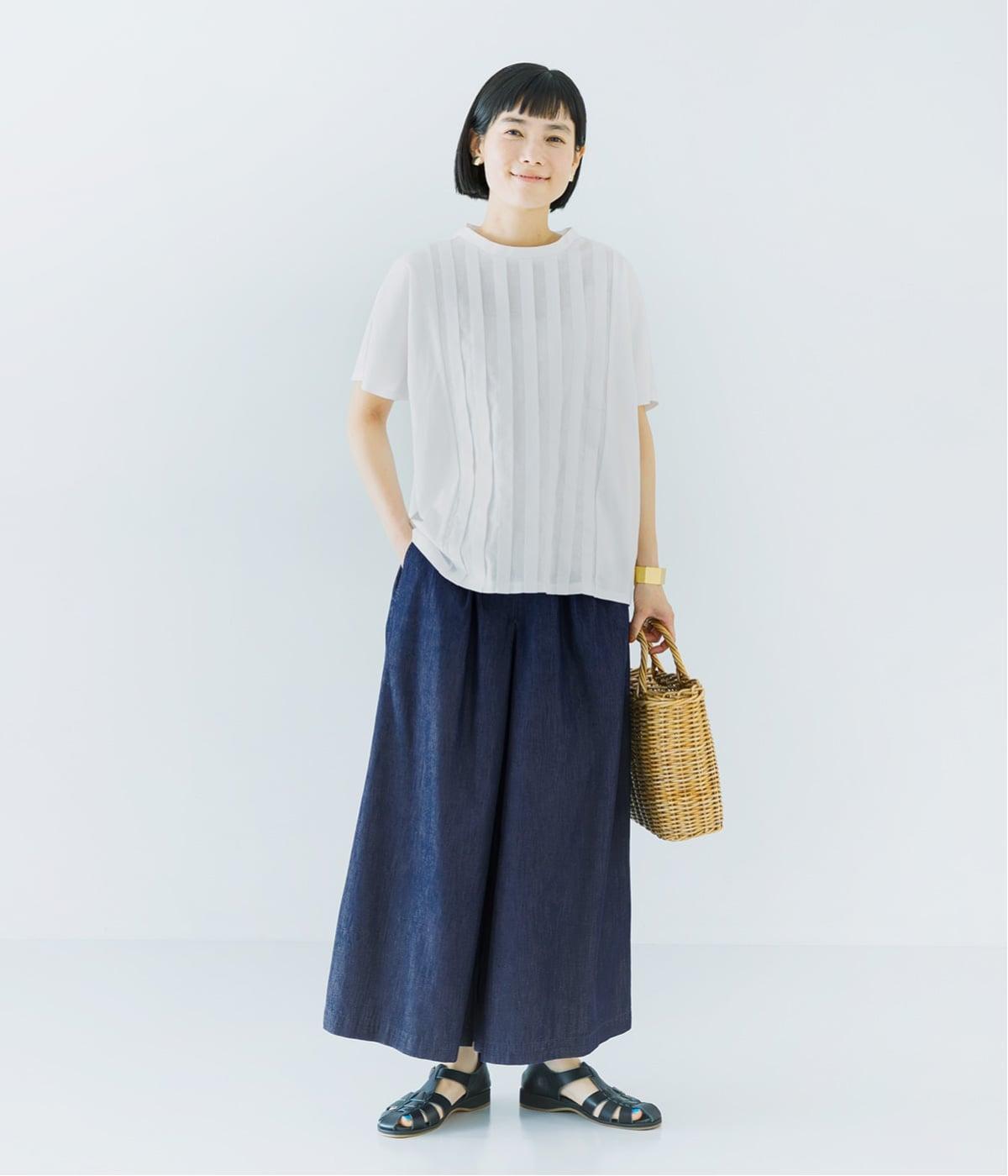ジャケットやカーディガンに合わせてもラクな着心地で、きれいめに見えるデザイン。羽織りを重ねることで、ブラウスのような上品な見え方も楽しめます。