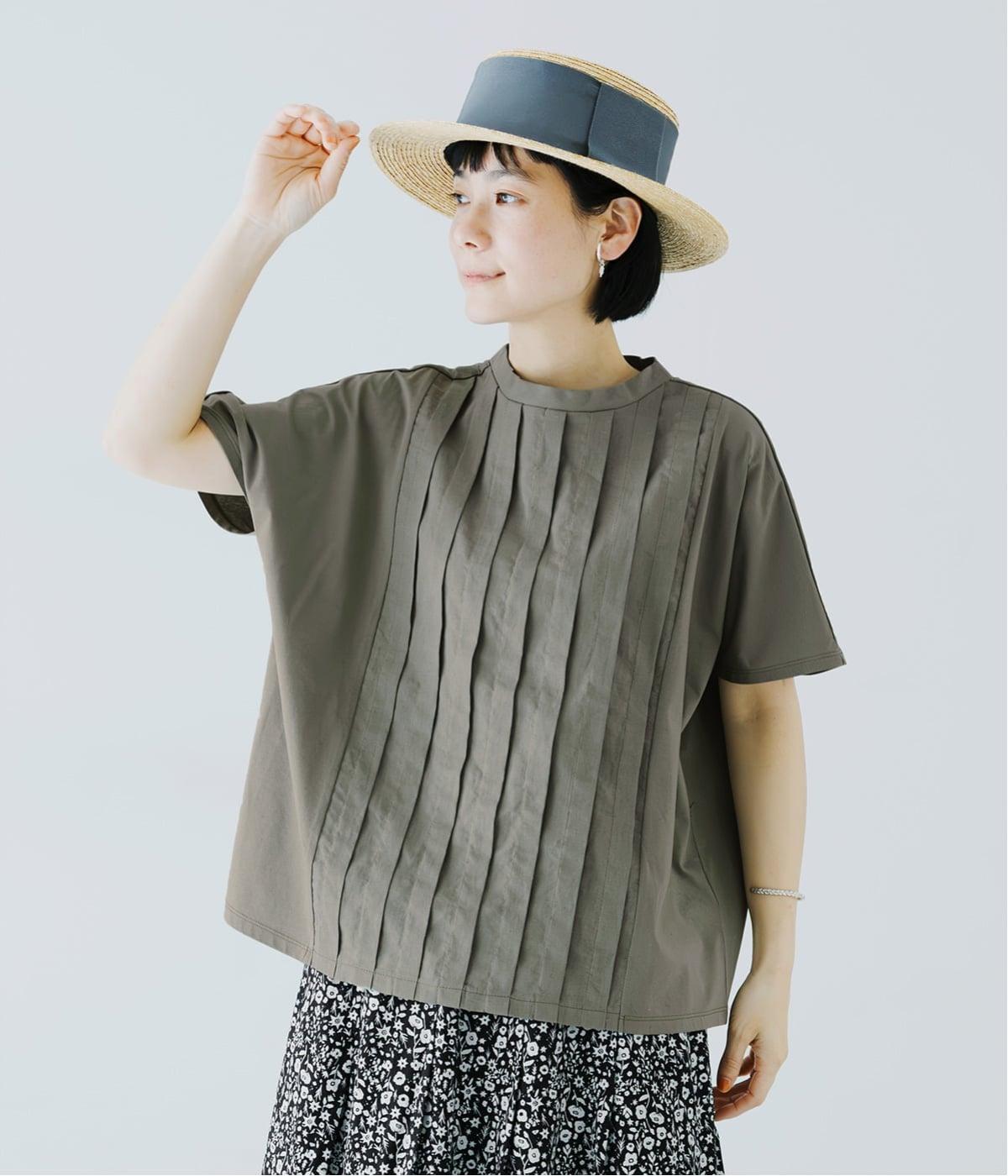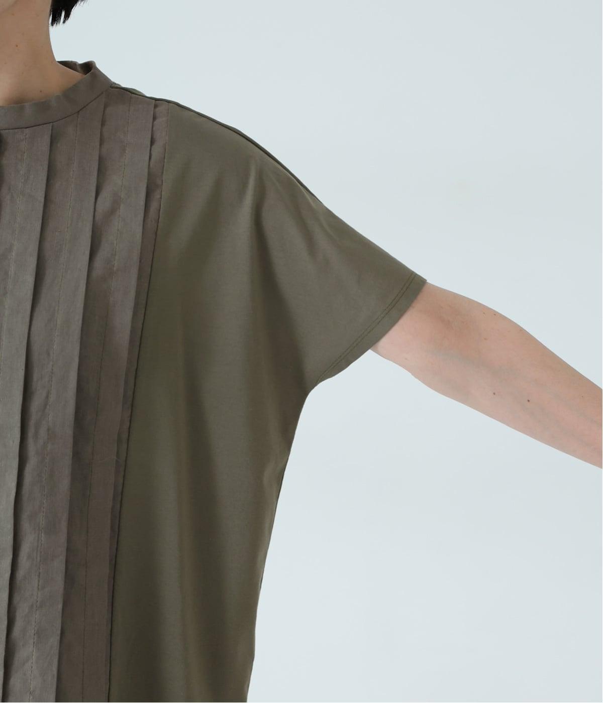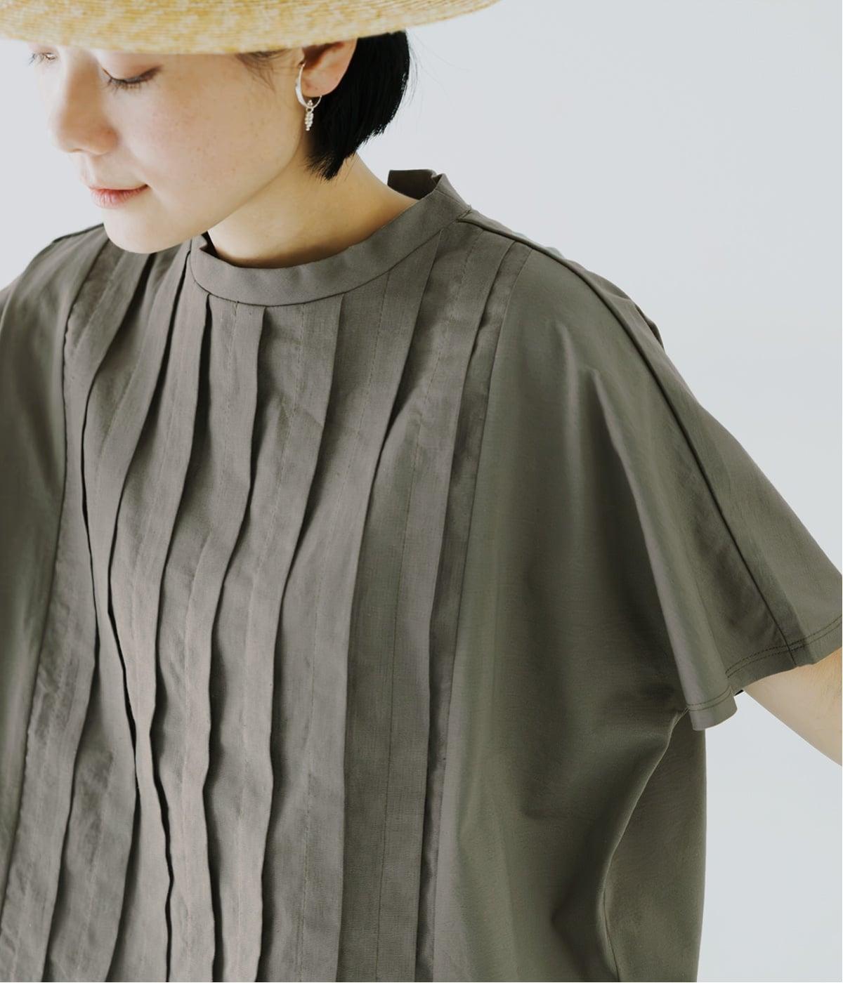 ニュアンスのあるやさしいトーンのカーキが穏やかなムード。フレンチスリーブがやさしく二の腕をカバーし、女性らしさを引き立てます。