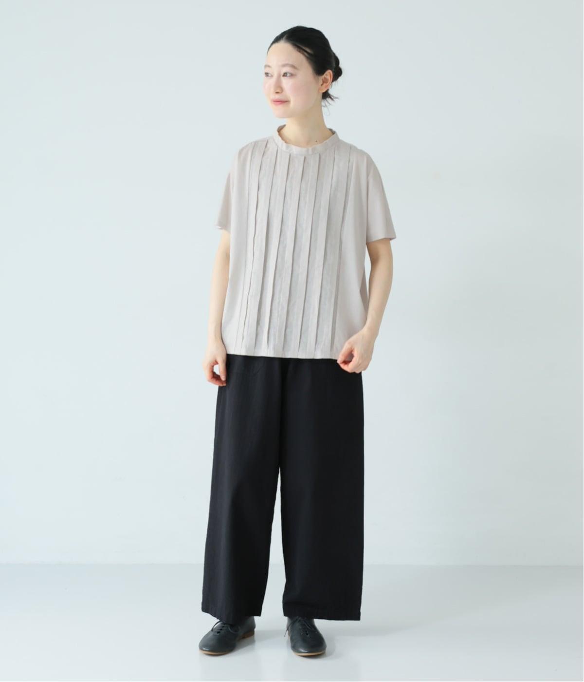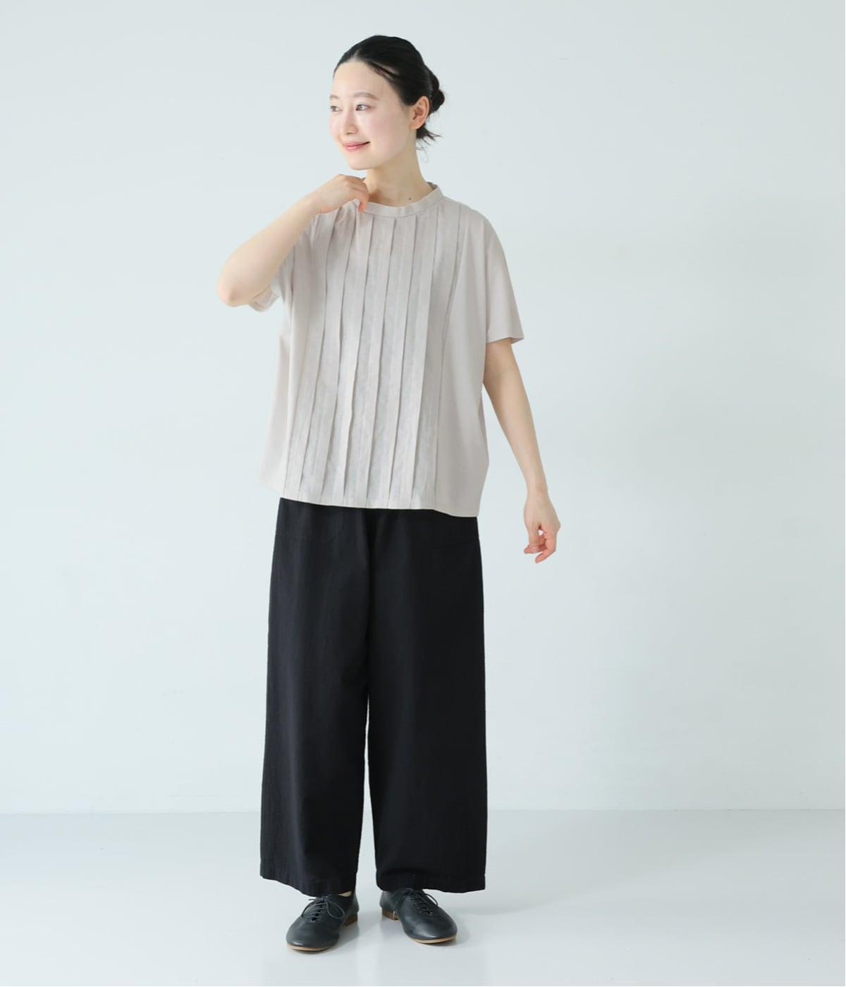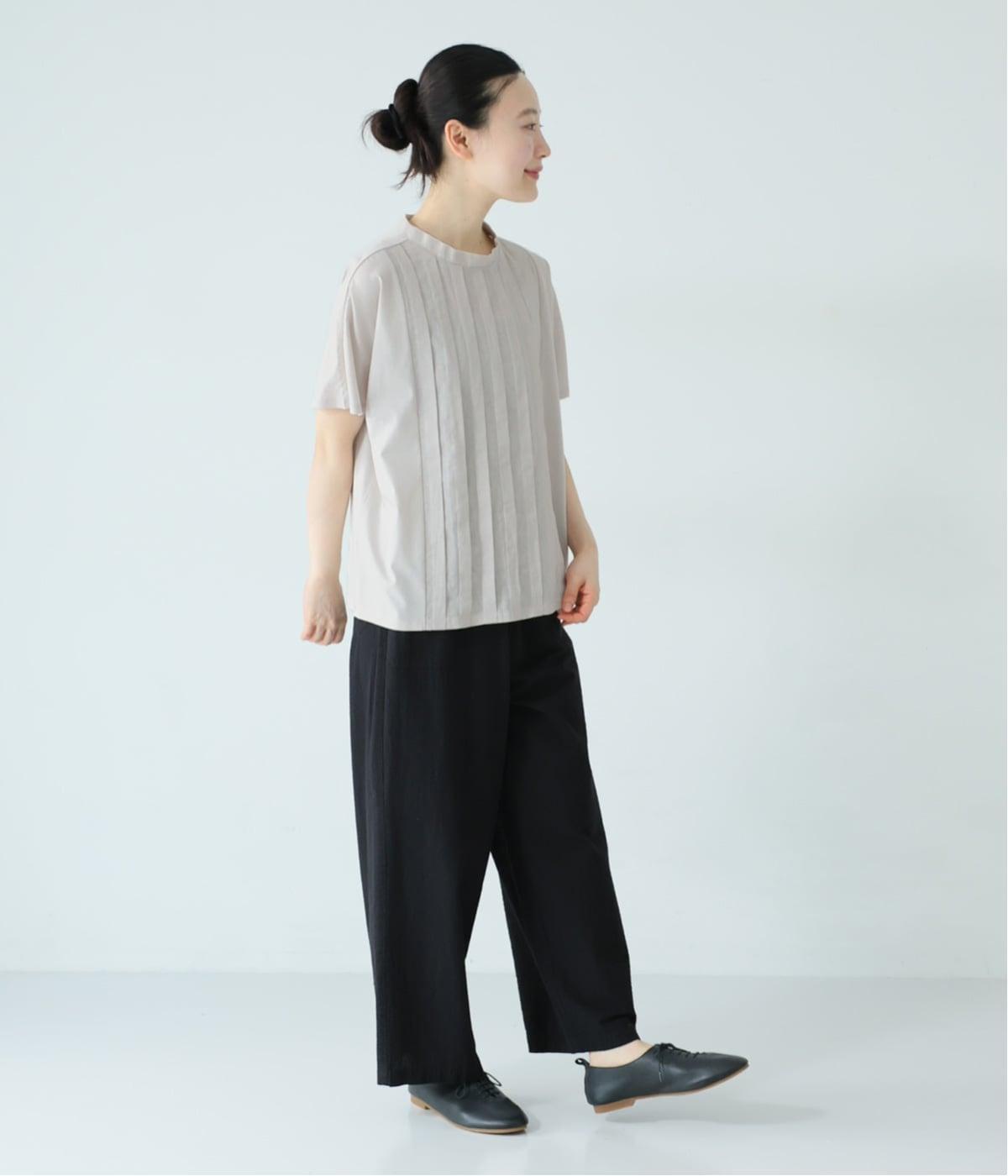 中央に施したタックが縦のラインを強調し、フロントにほどよい立体感と奥行きをプラス。太目のタックをあしらうことで、きれいめな印象に仕上げました。