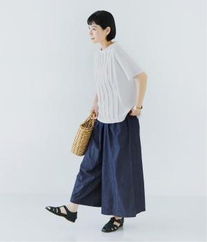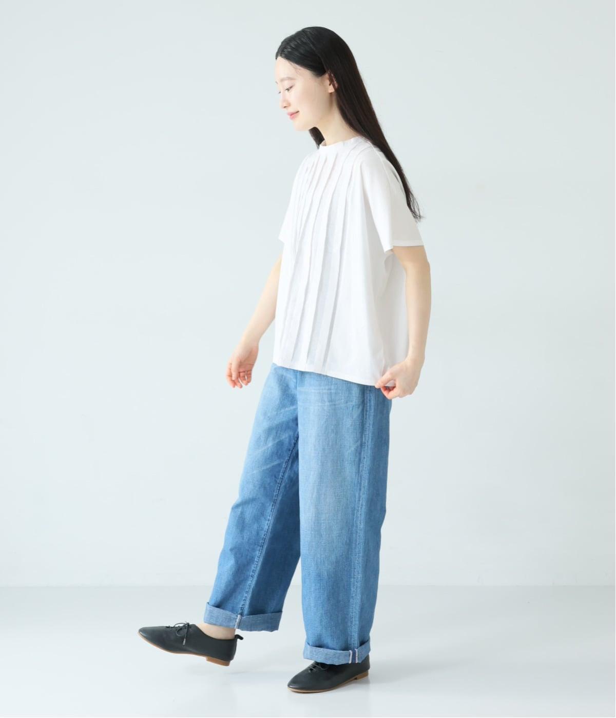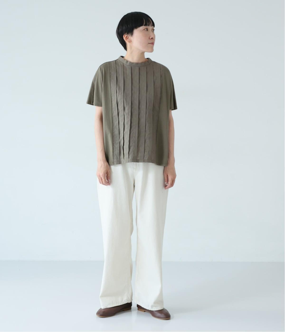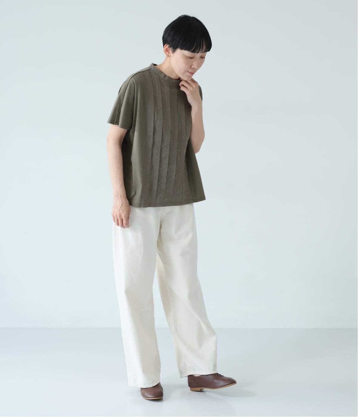 中央に施したタックが縦のラインを強調し、フロントにほどよい立体感と奥行きをプラス。太目のタックをあしらうことで、きれいめな印象に仕上げました。