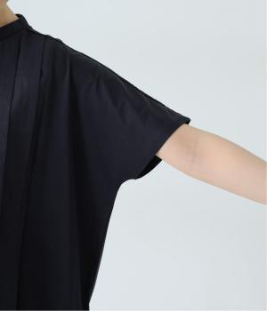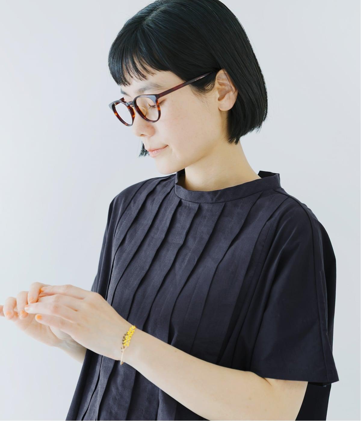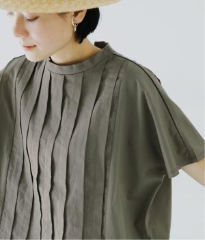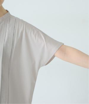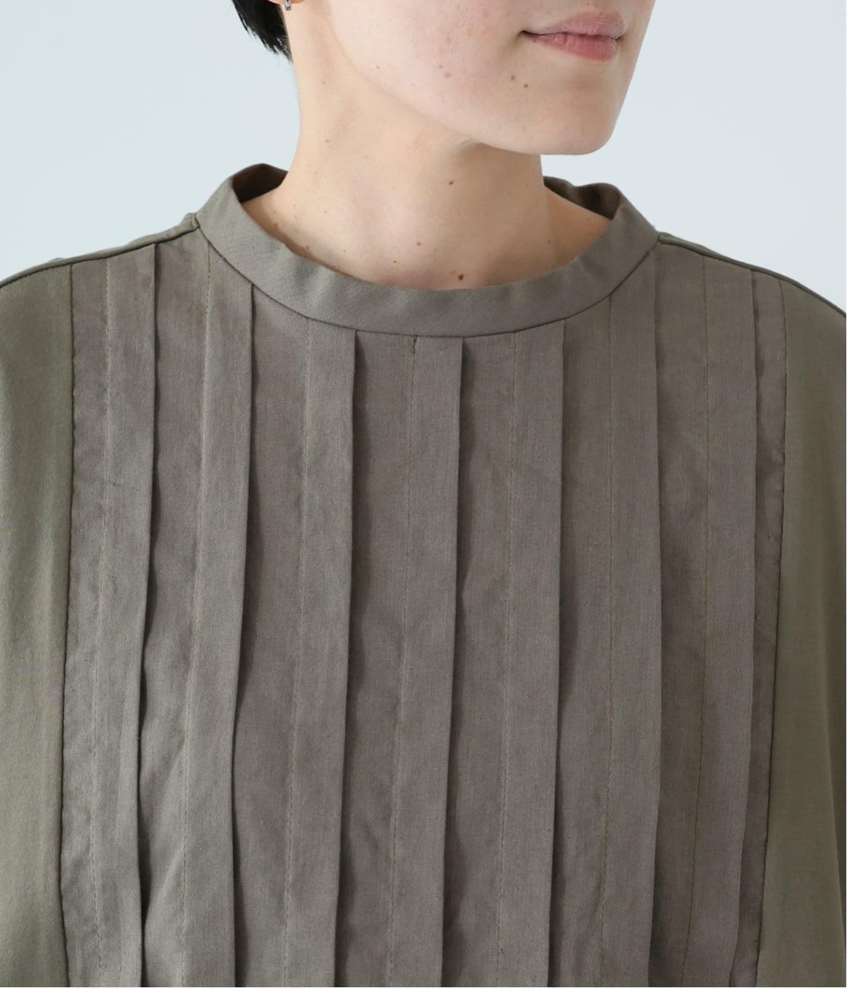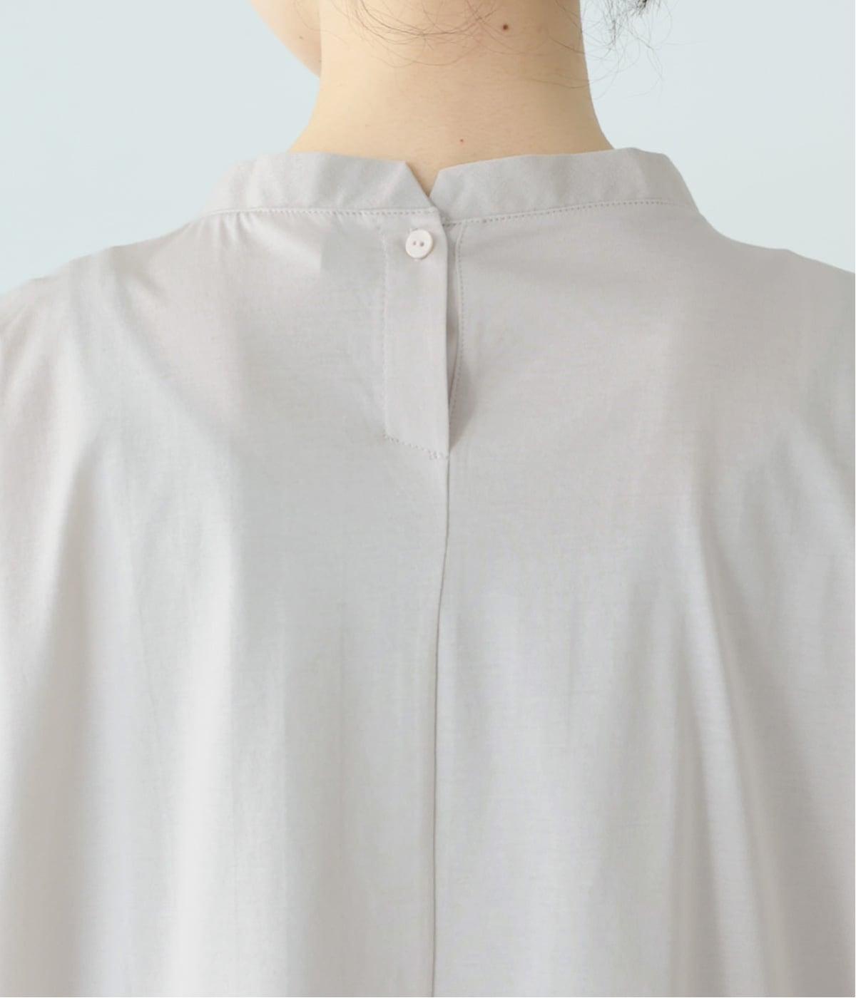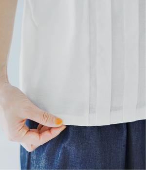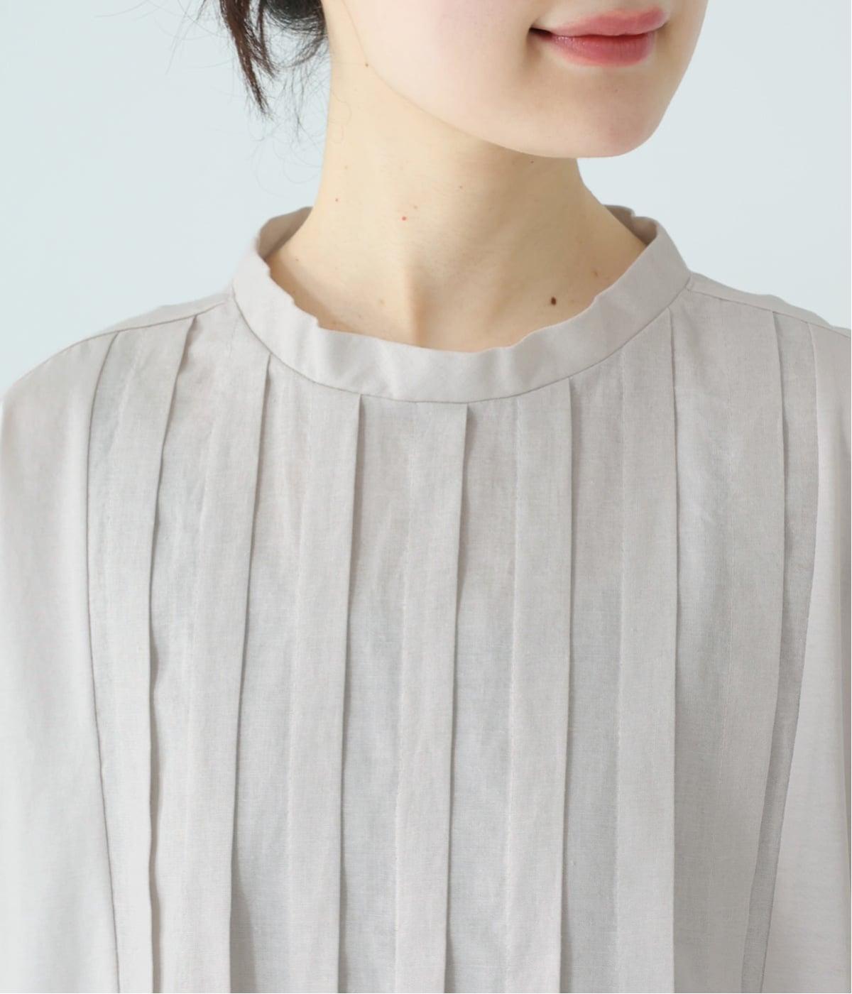 フロント中央には、リネンのハリと清涼感にコットンのやさしい質感を加えた、リネンコットン布帛生地を使用。軽やかで上品な表情が特徴です。