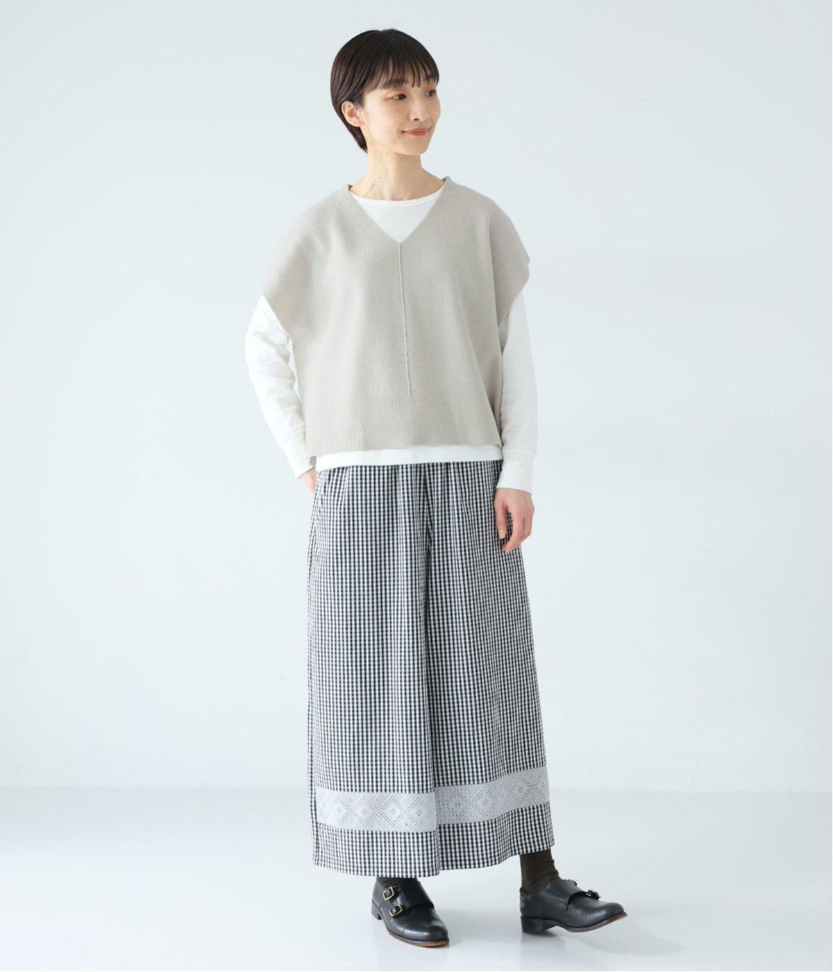 肩まわりをすっぽりと包み込み体のラインをカバーする、ワイドなシルエットが魅力のニットベスト。Vネックとサイドスリットが抜け感を運びます。前身頃には立体感のある畦編みを取り入れ、前後でさりげなく異なる表情に仕上げました。