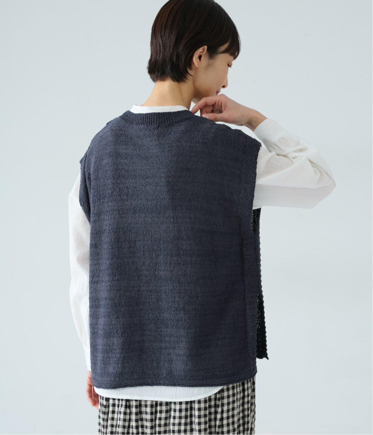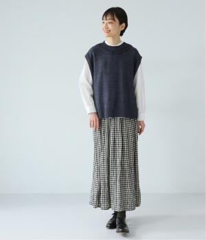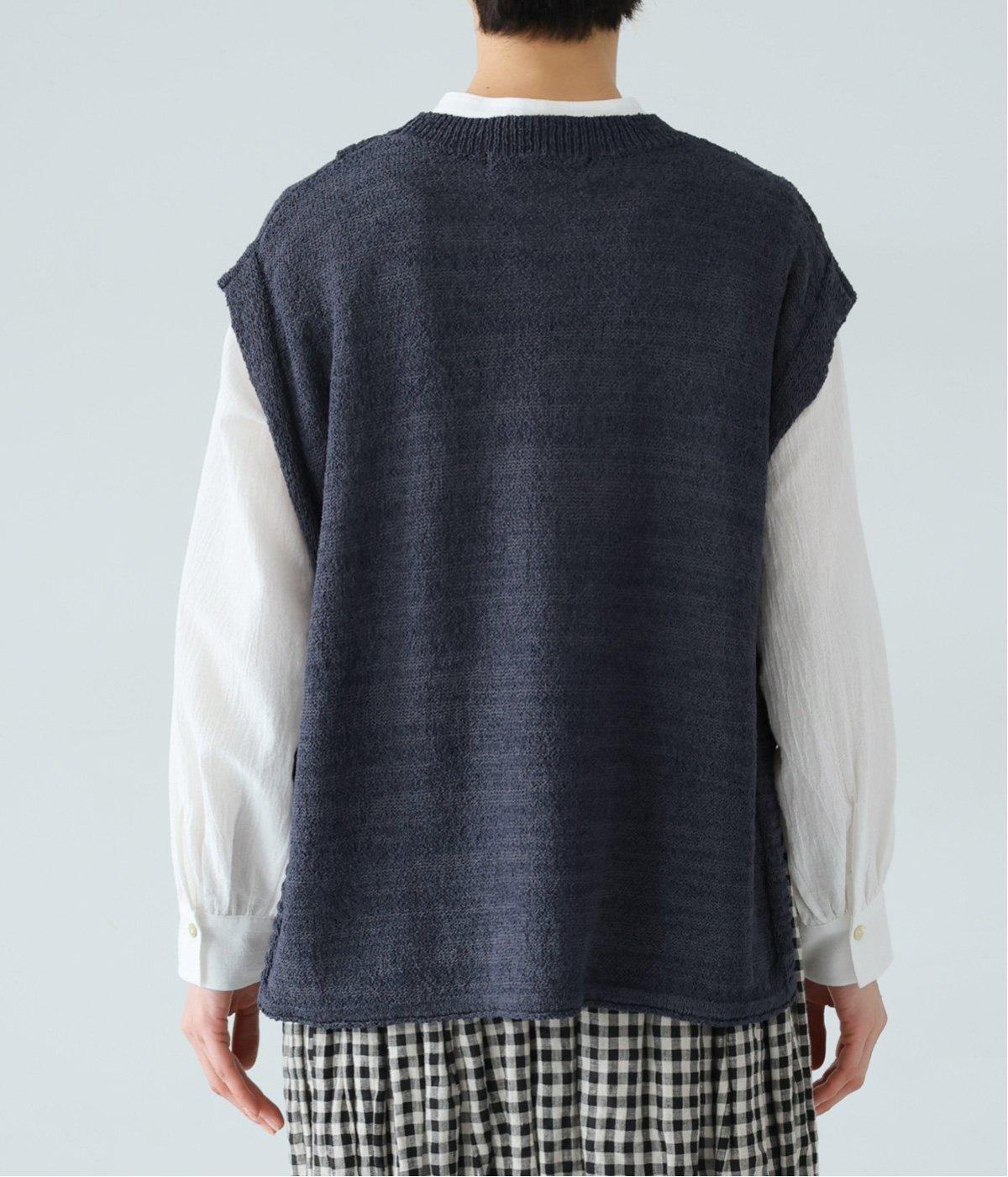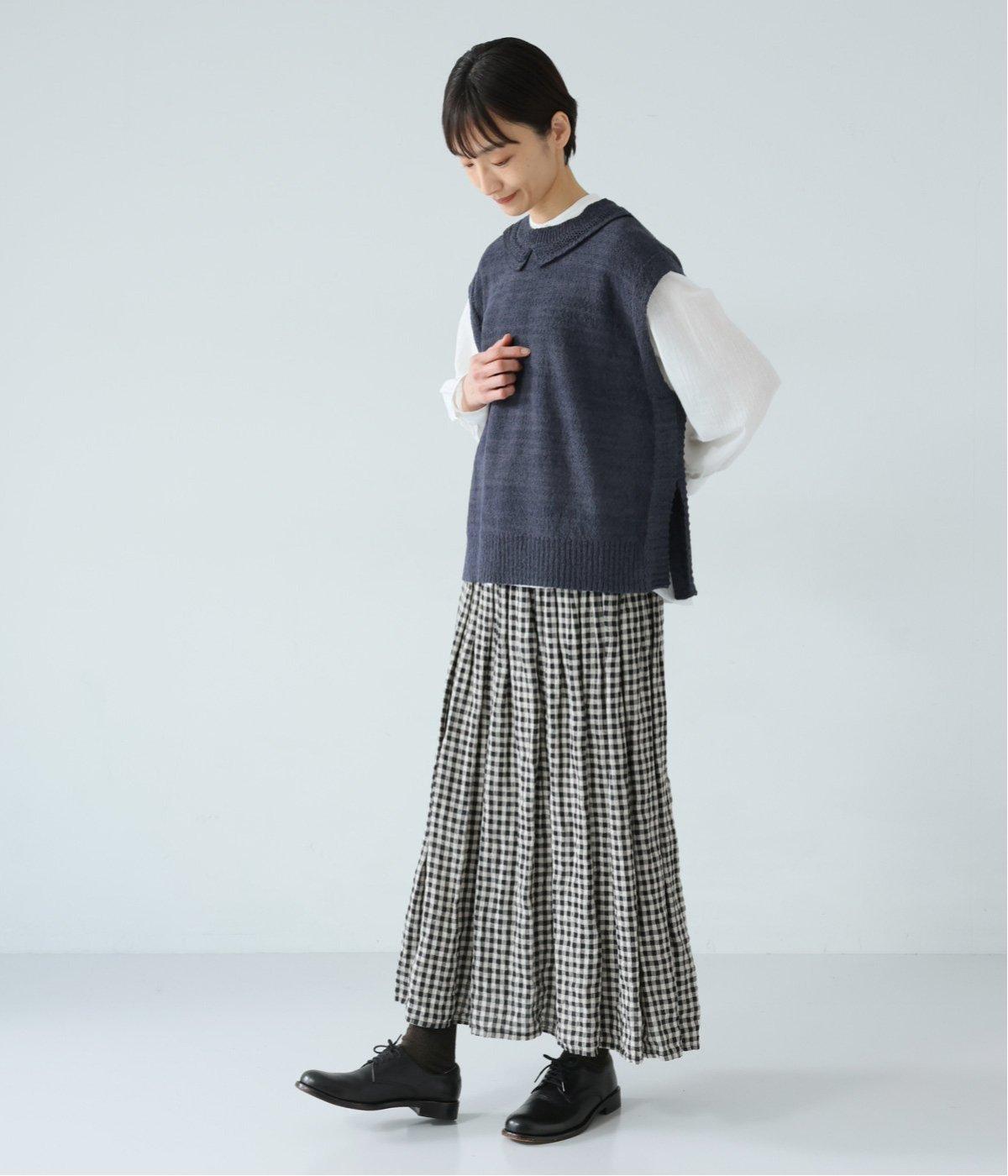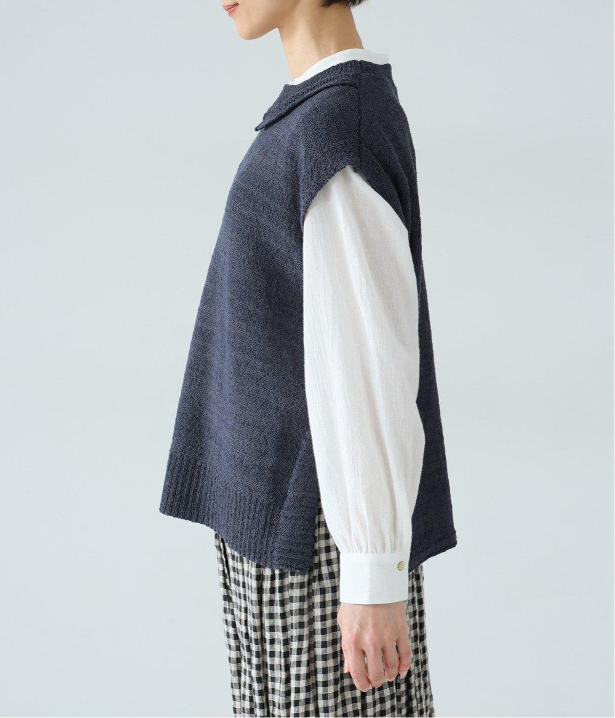体形カバーになりつつ、着こなしをグッとおしゃれに見せるニットベスト。前ネックに襟をつけて上品な印象をプラスしました。両サイドの深いスリットが、重ね着をよりこなれたムードに。スカートにもパンツにもバランスよく合わせられます。