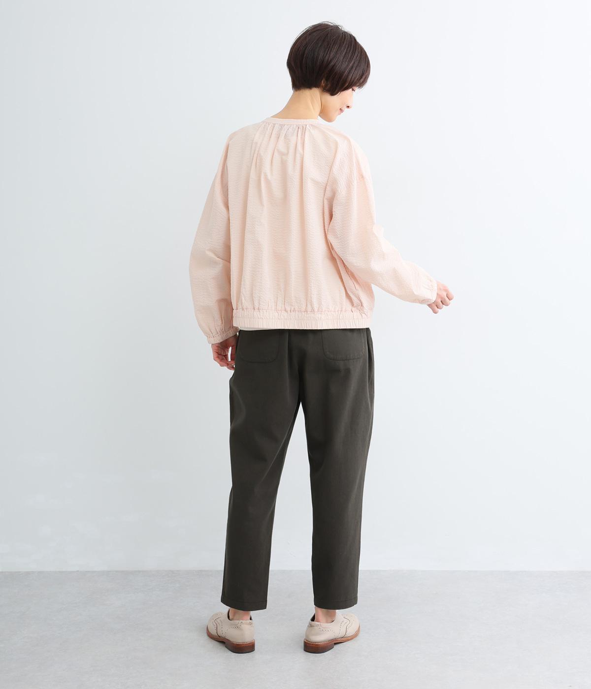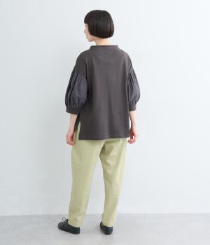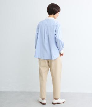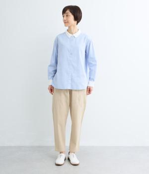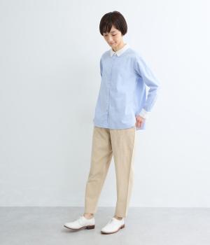 ナチュラルな風合いが魅力のコットンツイル素材。さらりとした肌ざわりながら、やわらかくしなやかで、体になじむ着心地に仕上げています。ほどよい厚みでロングシーズン活躍し、デイリー使いしやすい生地感です。