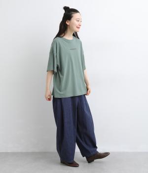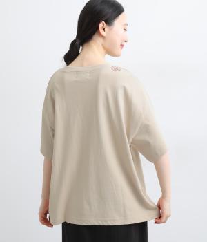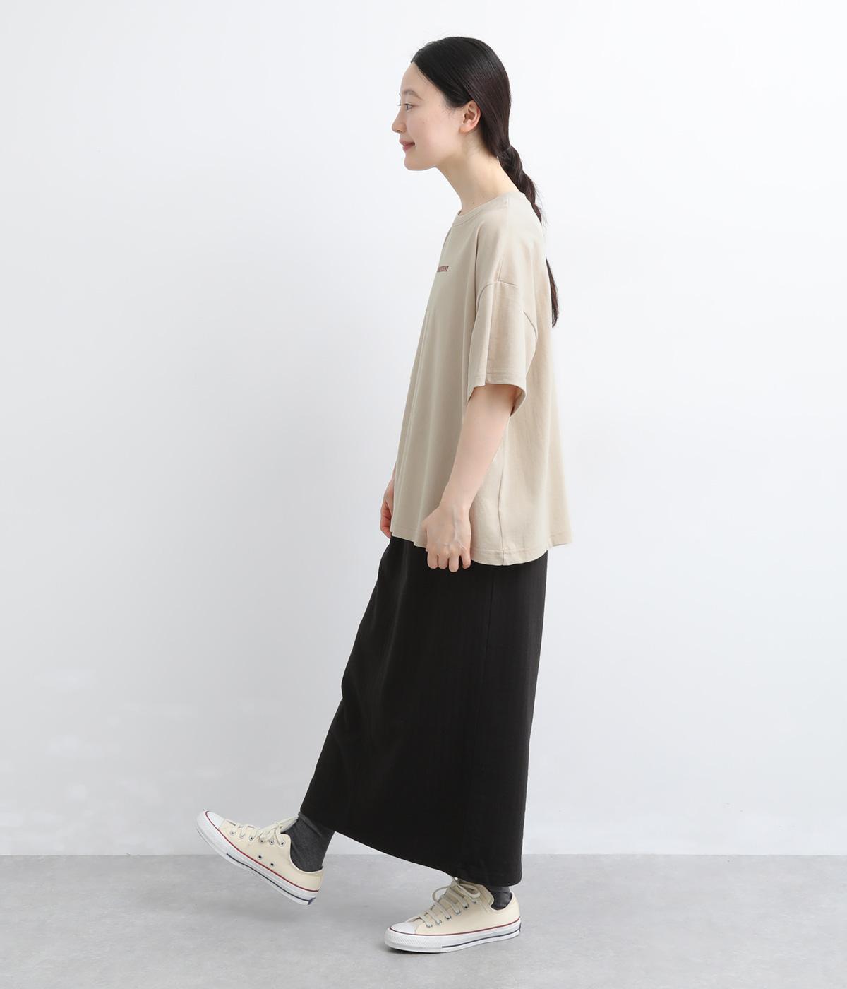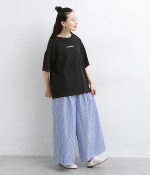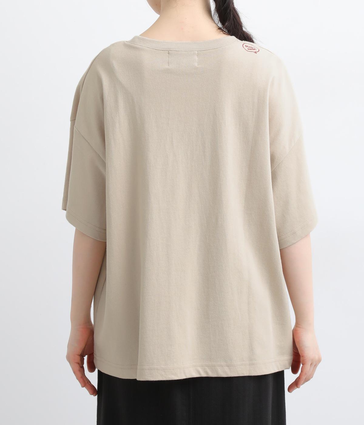 リラックスムード満載なゆったりめのTシャツ。フロントにはシンプルな1ワードプリントを。右肩後ろには思わず笑みがこぼれるような遊び心のある手書き風刺しゅうをあしらいました。プライベートタイムを大切にしたくなる一枚です。