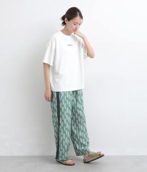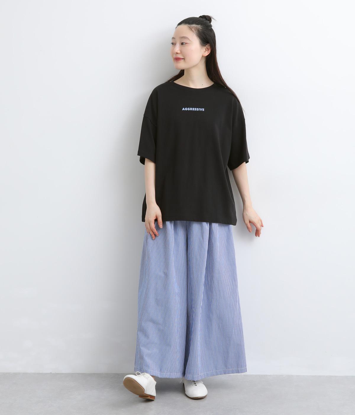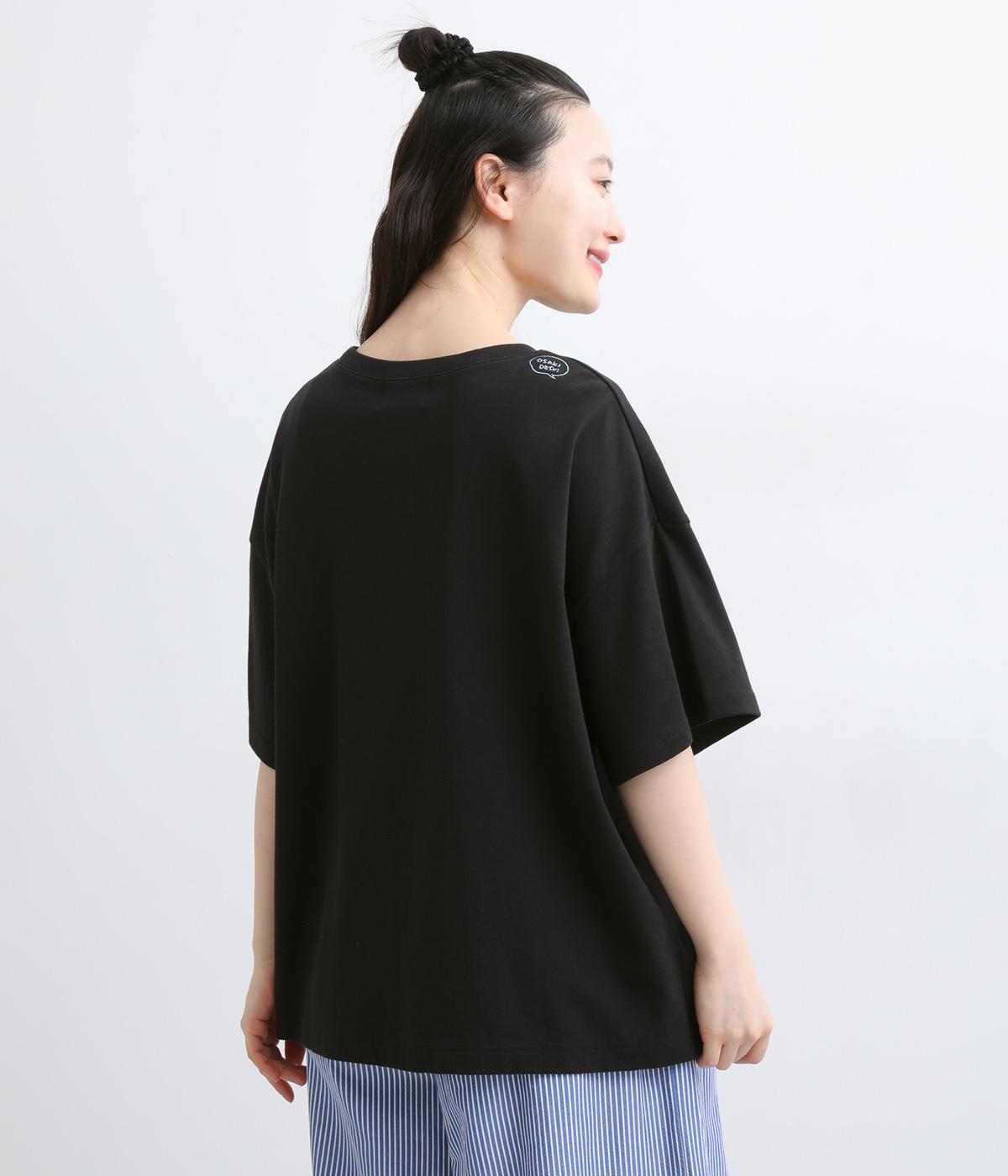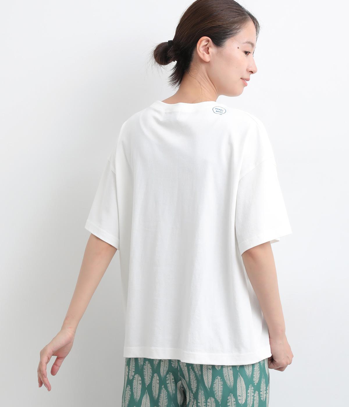 リラックスムード満載なゆったりめのTシャツ。フロントにはシンプルな1ワードプリントを。右肩後ろには思わず笑みがこぼれるような遊び心のある手書き風刺しゅうをあしらいました。プライベートタイムを大切にしたくなる一枚です。