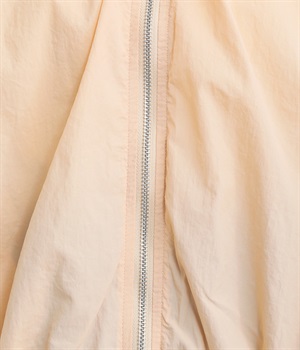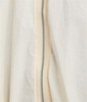 透け感のある軽量な高密度ナイロン素材で仕立てました。シワが目立ちにくく持ち歩きようとしても便利な生地感。撥水性があり汚れにくいのも特徴でトラベルにも活躍します。