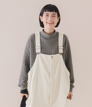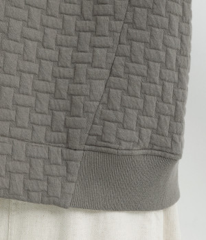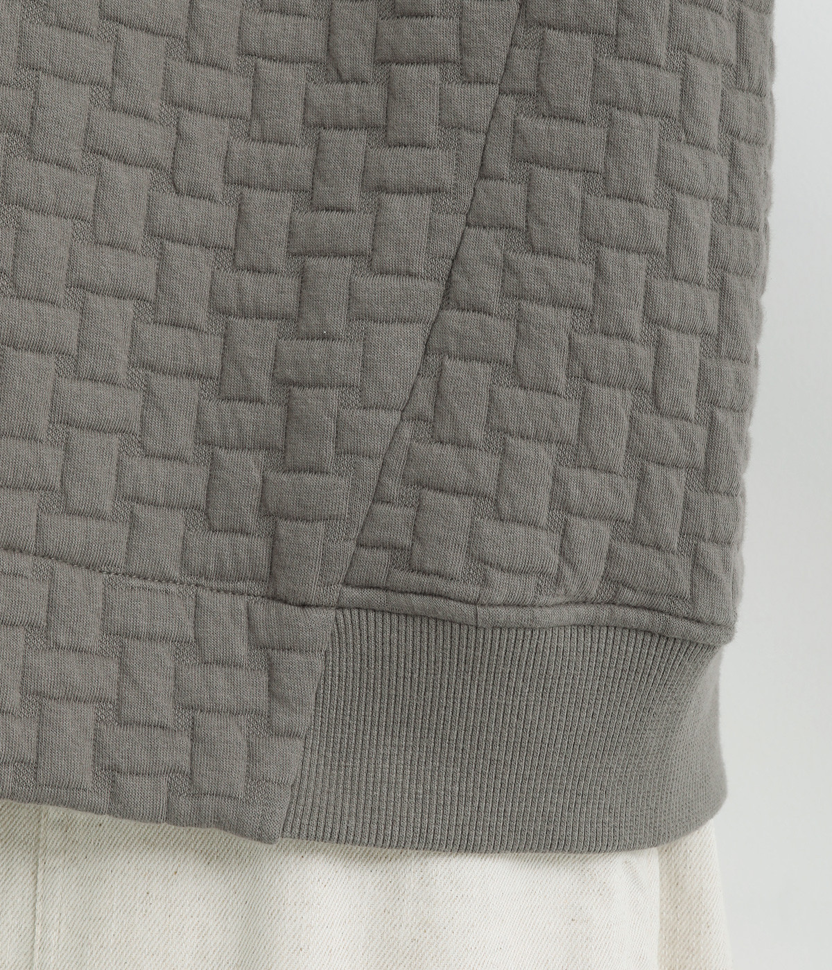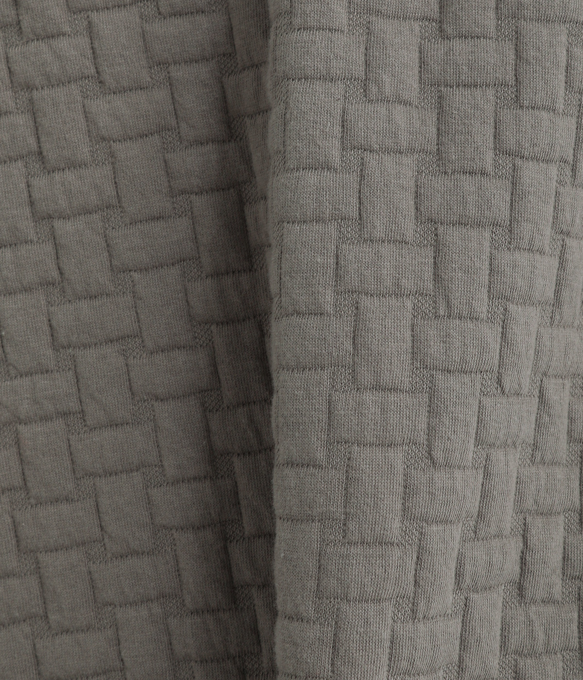 ふっくらとソフトな弾力感がとても心地良い、ガーゼのようなやさしい風合い。バスケット編み風の凹凸を出して表情豊かに仕上げました。伸び伸びと動けるよう、ストレッチ素材を混紡。