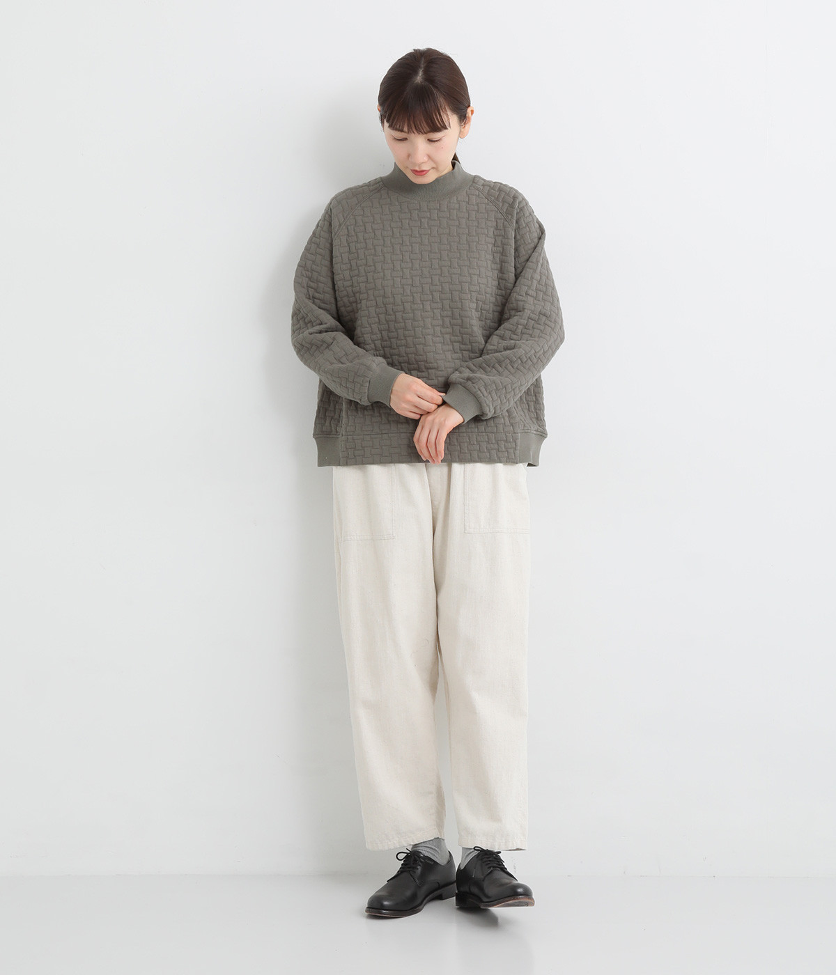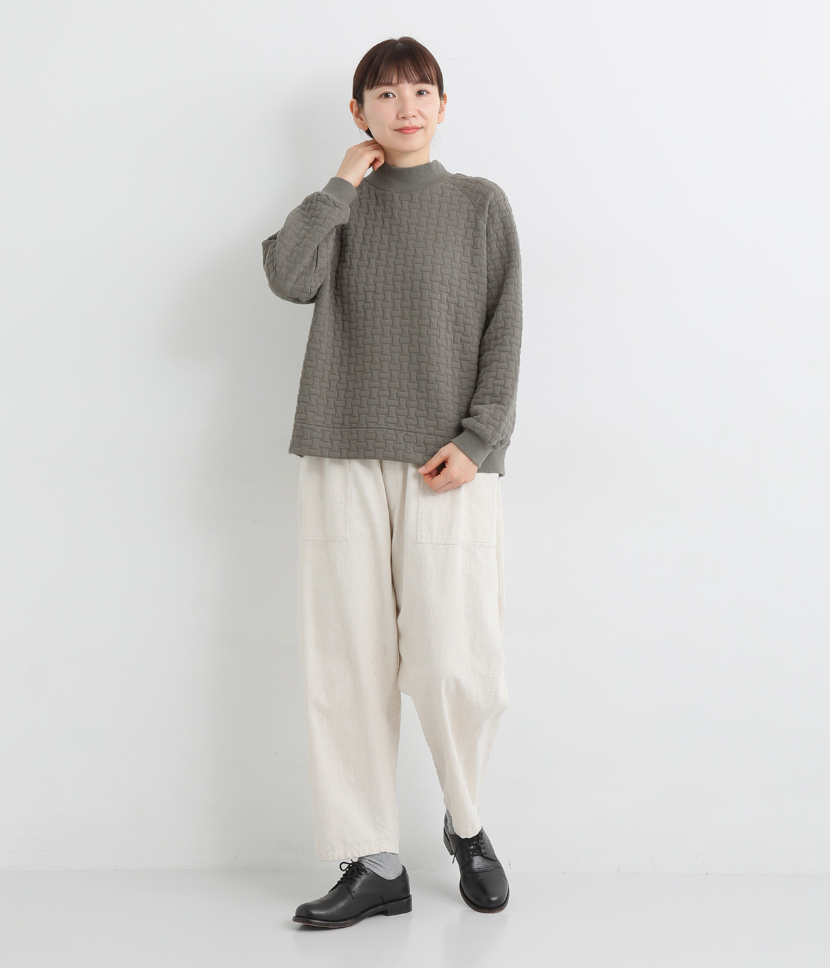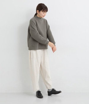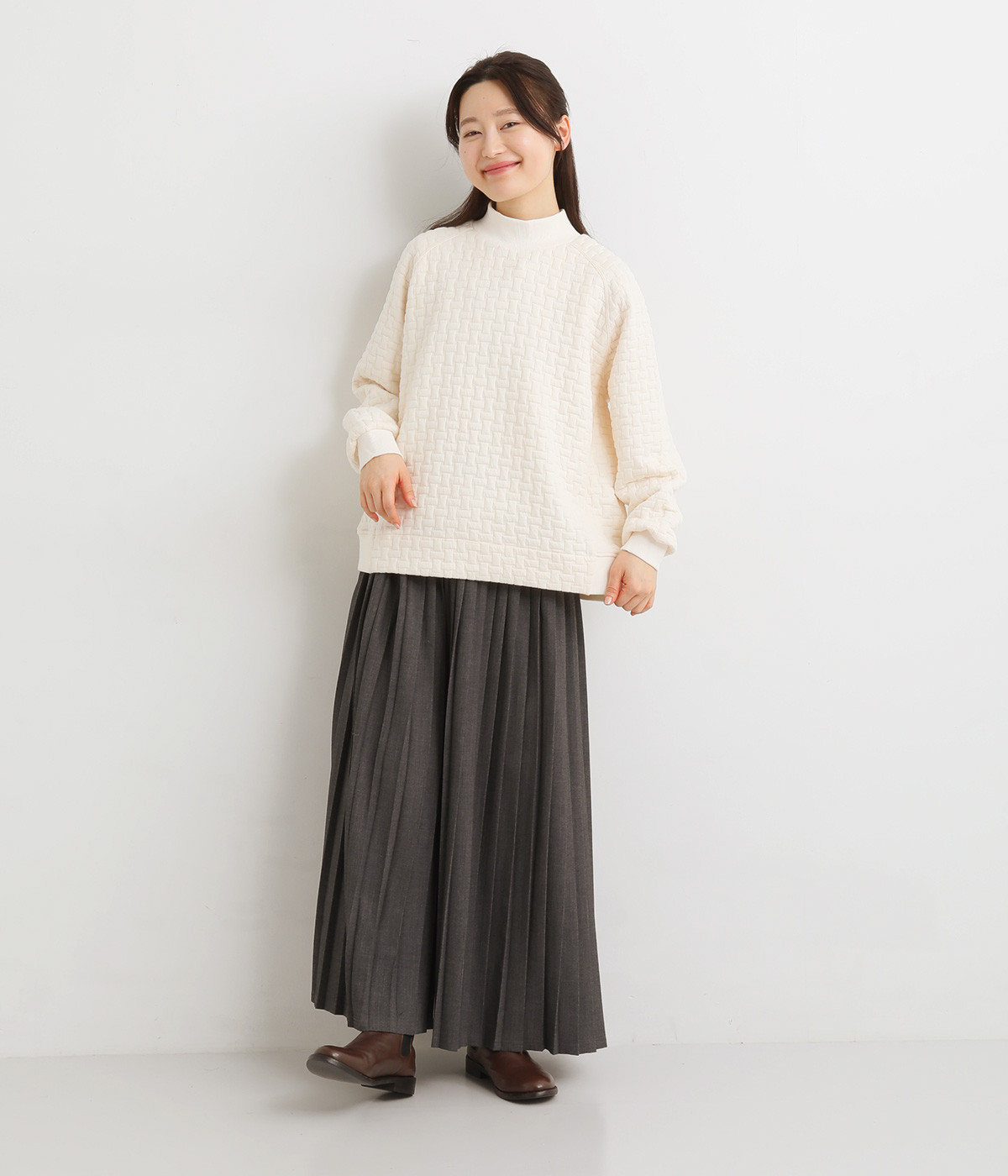 ワンカラーながら編み柄で魅せるふくれジャカードプルオーバー。インナーを入れやすいボックスシルエットで着心地にゆとりを持たせています。首元をあたたかくカバーする、幅広のリブ仕立ても◎。肩ラインが内側に入るラグラン袖が肩をきれいに見せ、腕まわりを動かしやすくしてくれます。