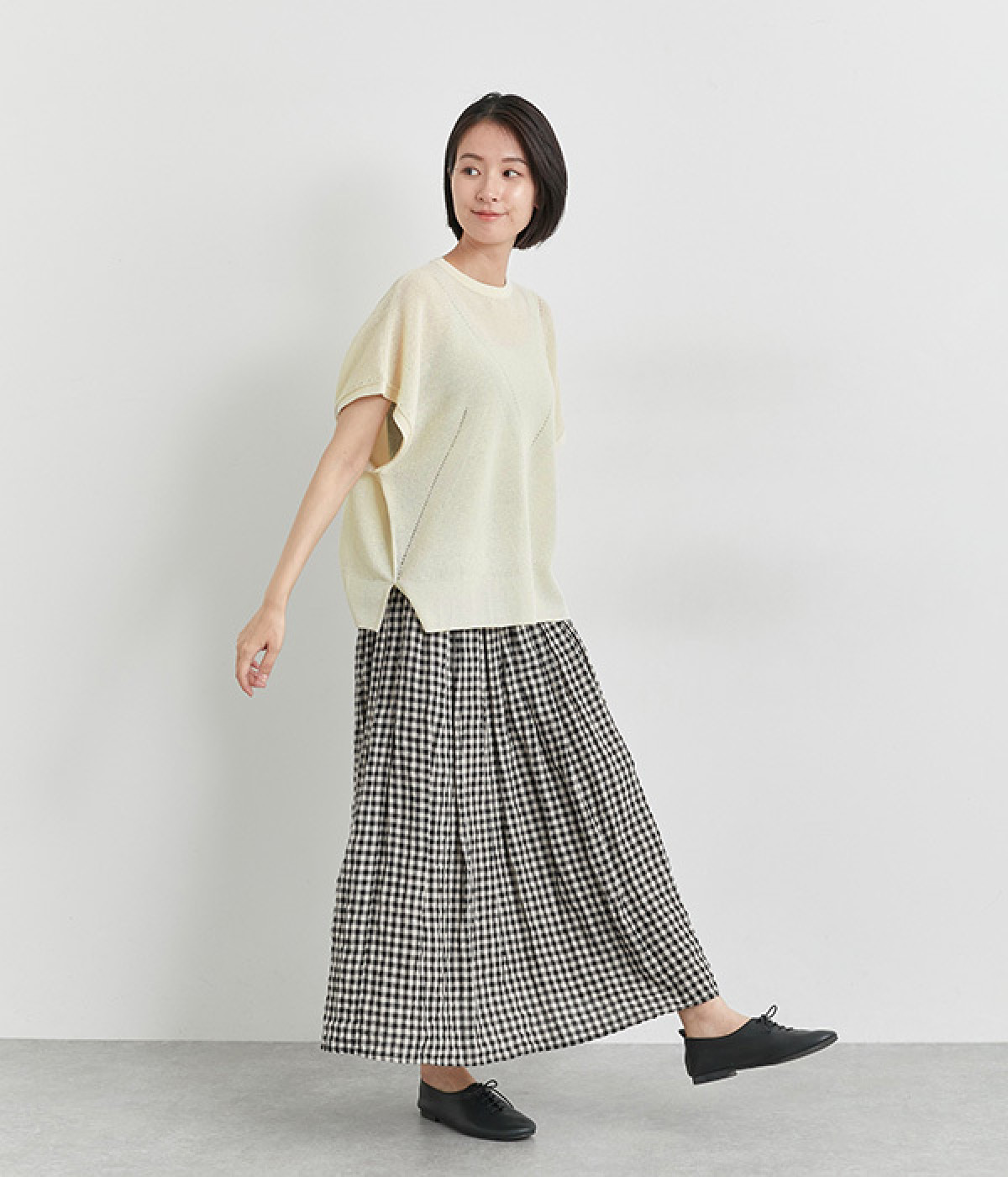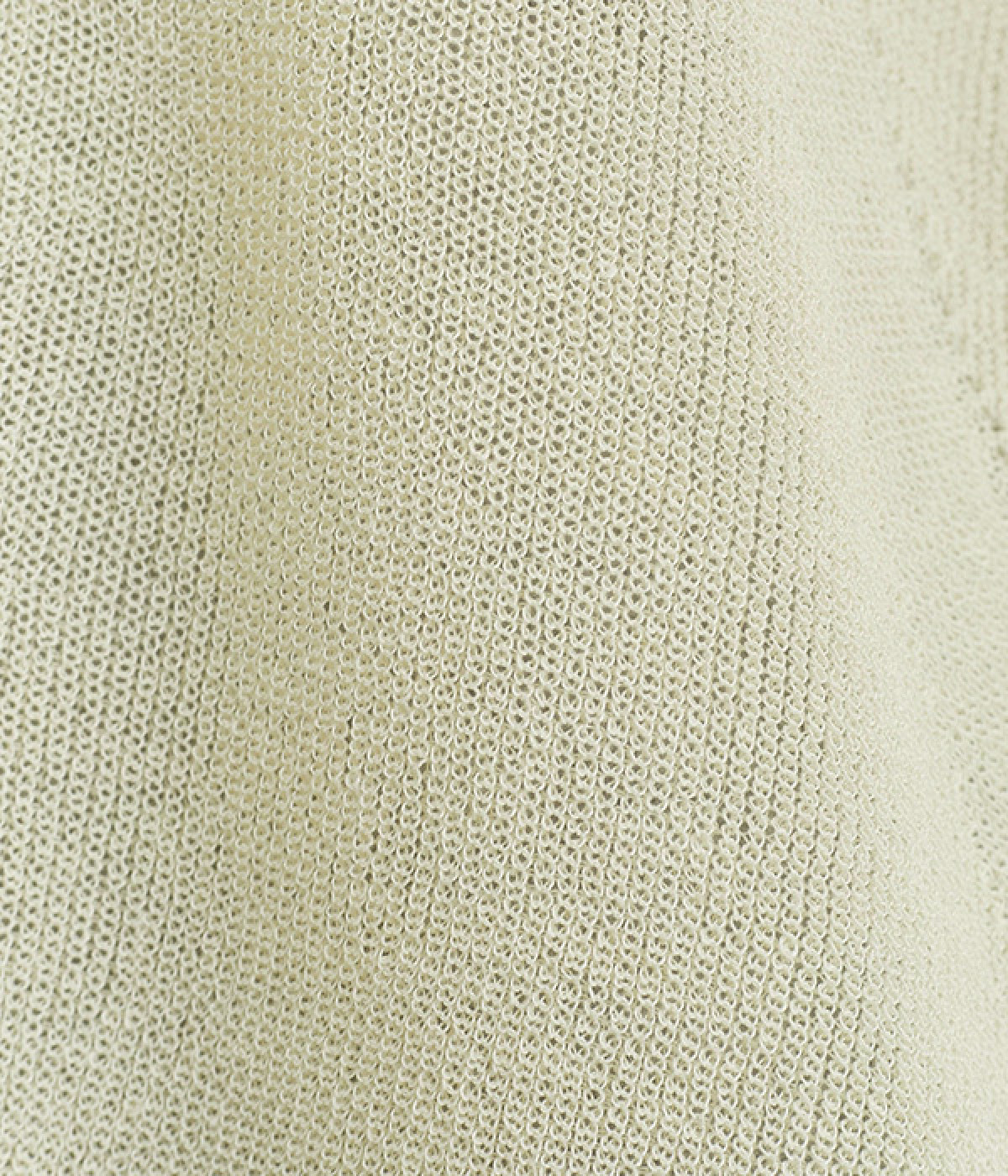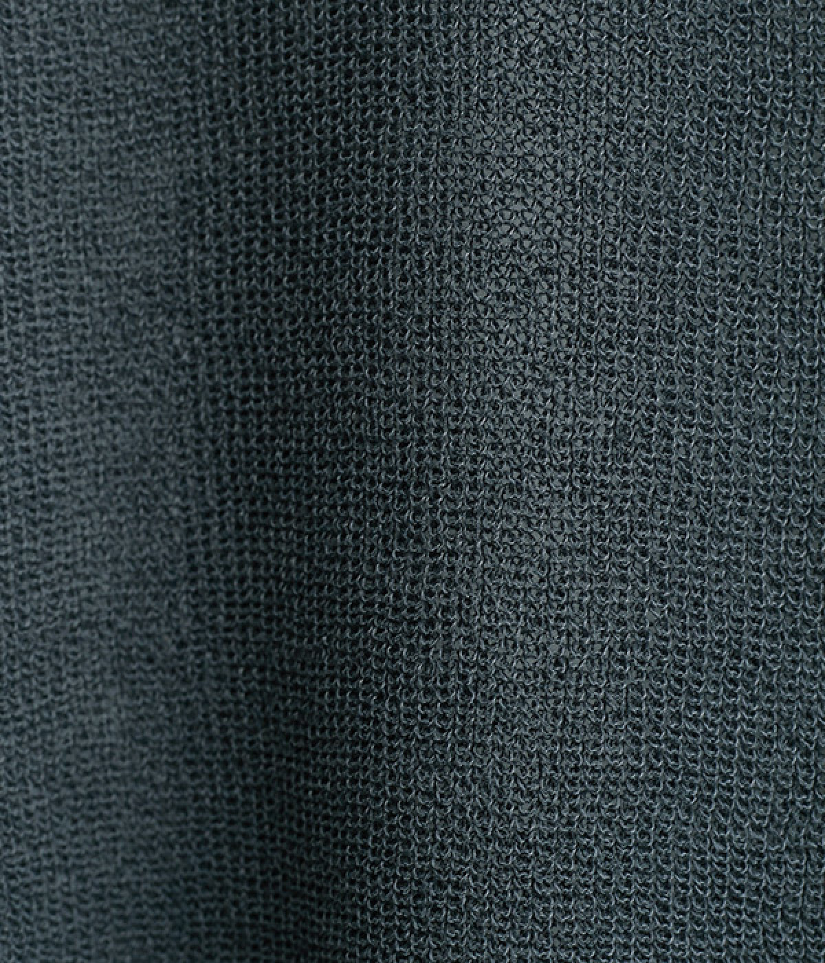 少量のリネンをブレンドさせてナチュラルさを盛り込みました。凹凸のある肌触りや伸縮性が着心地の良さを高めます。ニット製品ながらご家庭での洗濯が可能なのもうれしいポイントです。
