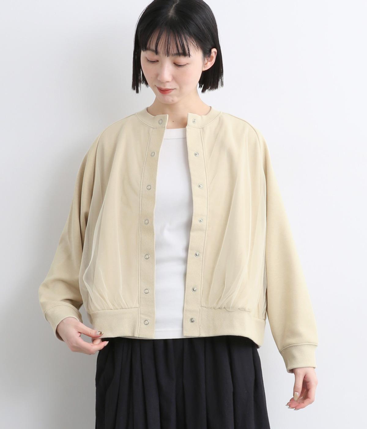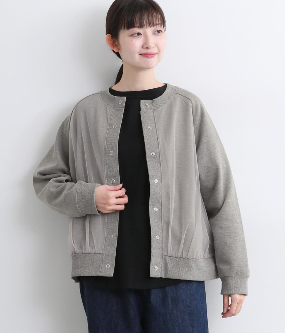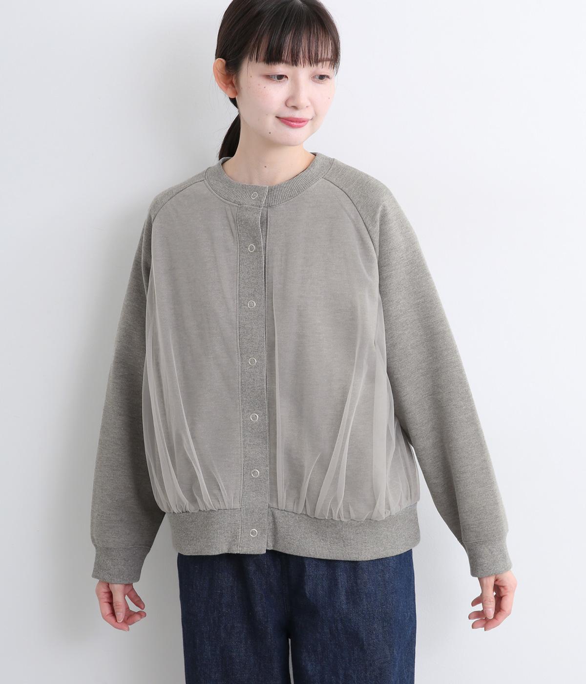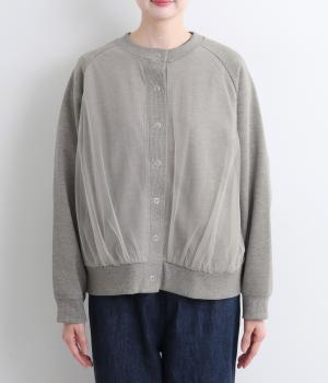 目立ちすぎないチュールが上品なこなれ感を醸すカーディガンです。裾のギャザーが軽やかなチュールのドレープをつくり、さりげない華やかさを添えています。フェミニンにもカジュアルにも好相性なアイテムです。