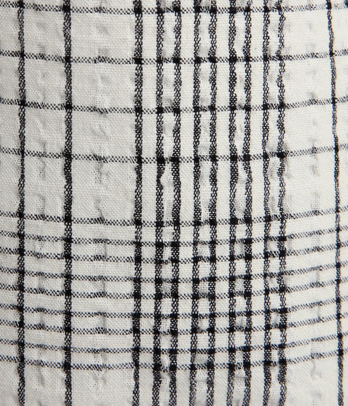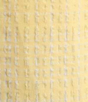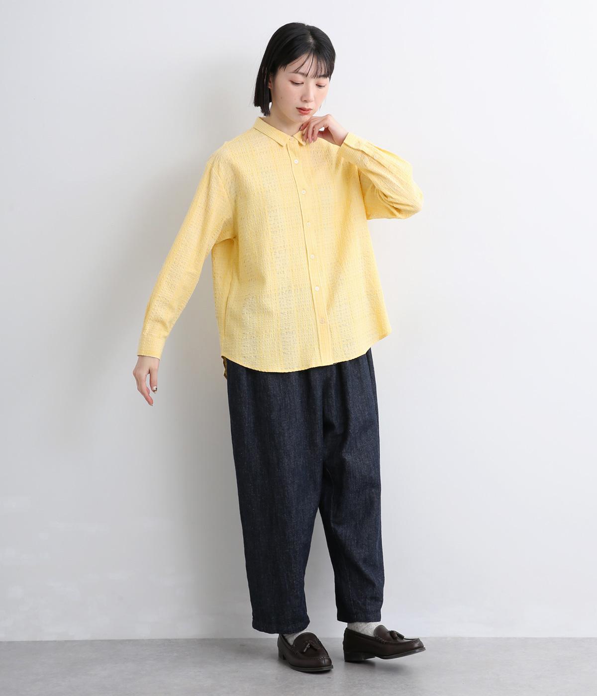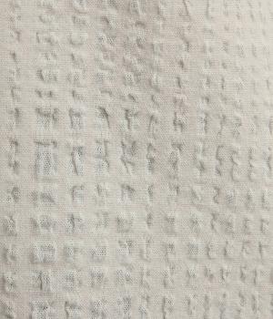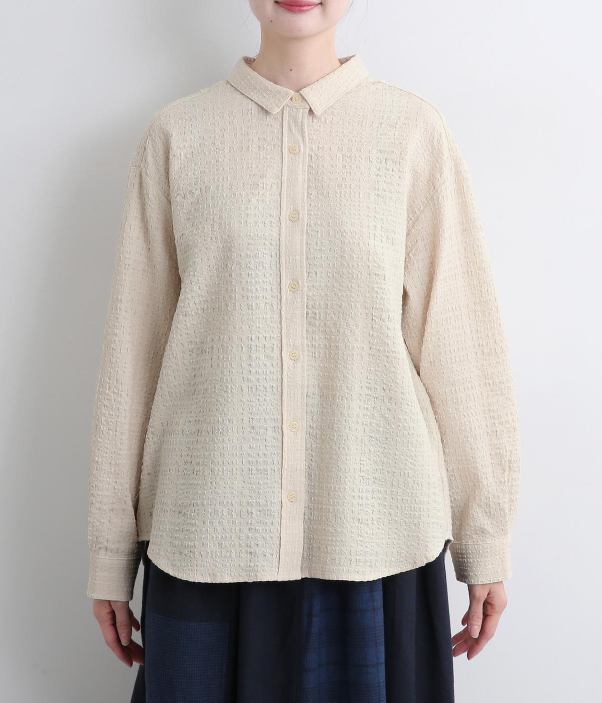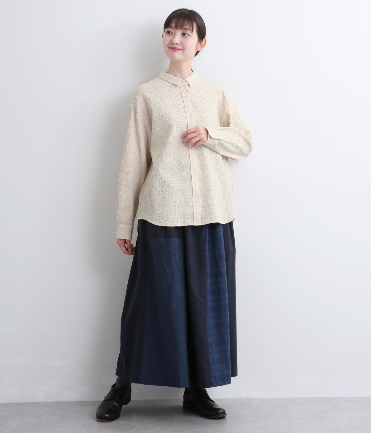 ぽこぽこと凹凸のある表面や、洗いをかけた自然な風合いが味わい深いポリウレタン混のコットン生地を使用しました。通気性がよく、さらりと心地よい肌ざわりが魅力です。