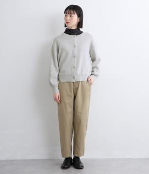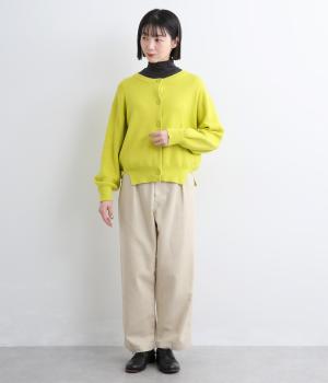 ほどよい丈感のシンプルなカーディガンです。やや広めの襟ぐりはさまざまなインナーと合わせやすく、サイドスリットはシルエットにほのかな変化をつけて抜け感をプラスします。さりげないこだわりを散りばめた一枚です。