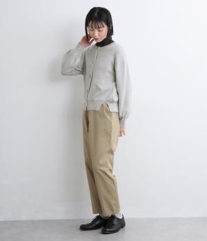 高密度でフラットな表面とハリが特徴のコットンミラノリブニット生地です。軽やかで伸縮性があり着心地よく、ほのかな光沢感が上品な印象です。お家で洗えるのも嬉しいポイントです。