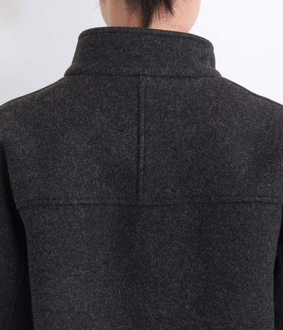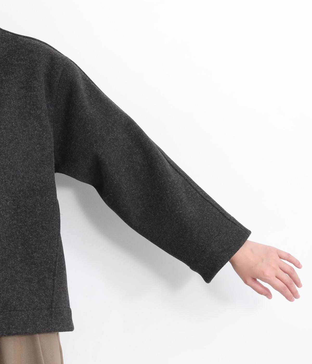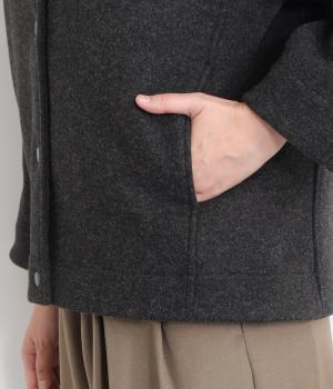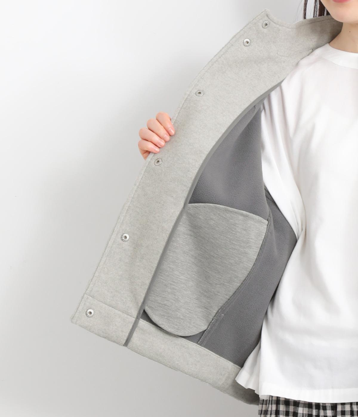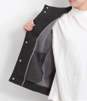 2枚の異なる生地を接着剤で貼り合わせ1枚にしたボンディング生地を使用。ハリ感や厚みのある生地で立体的なシルエットを描き、裏地なしでもしっかりとしています。裏面はフリースで防寒力も◎。