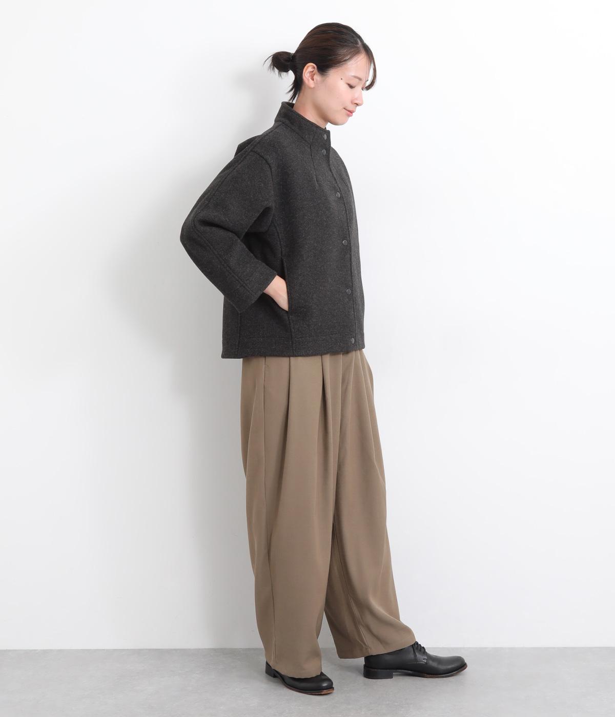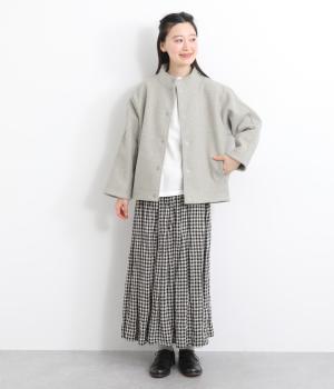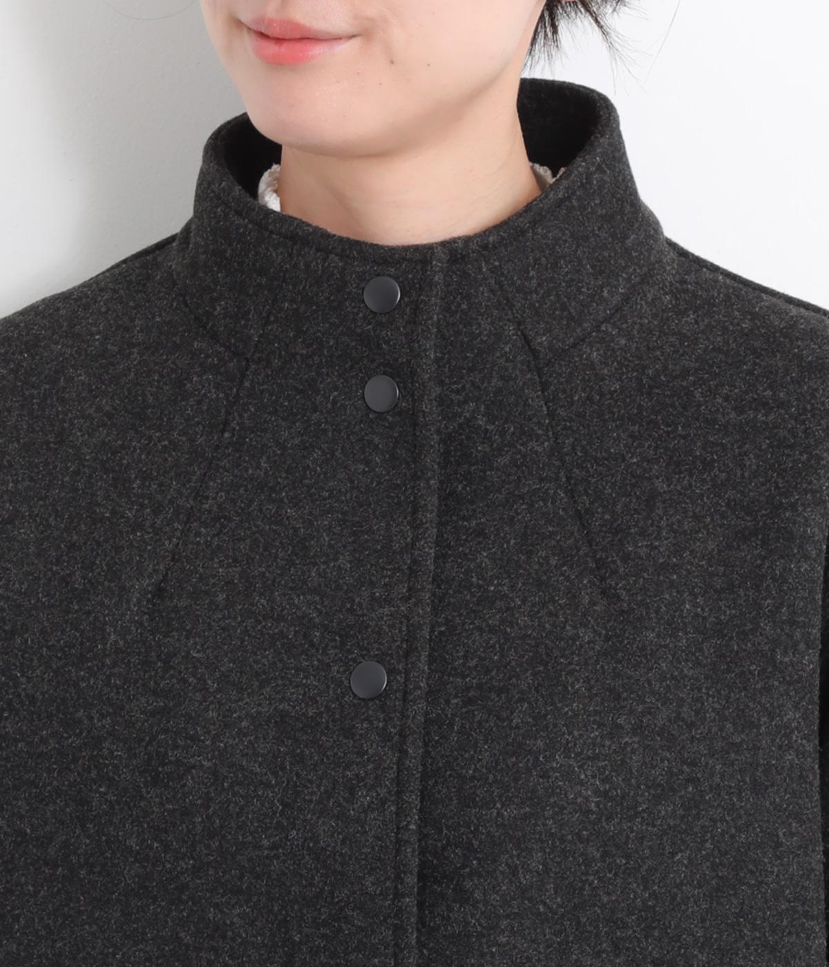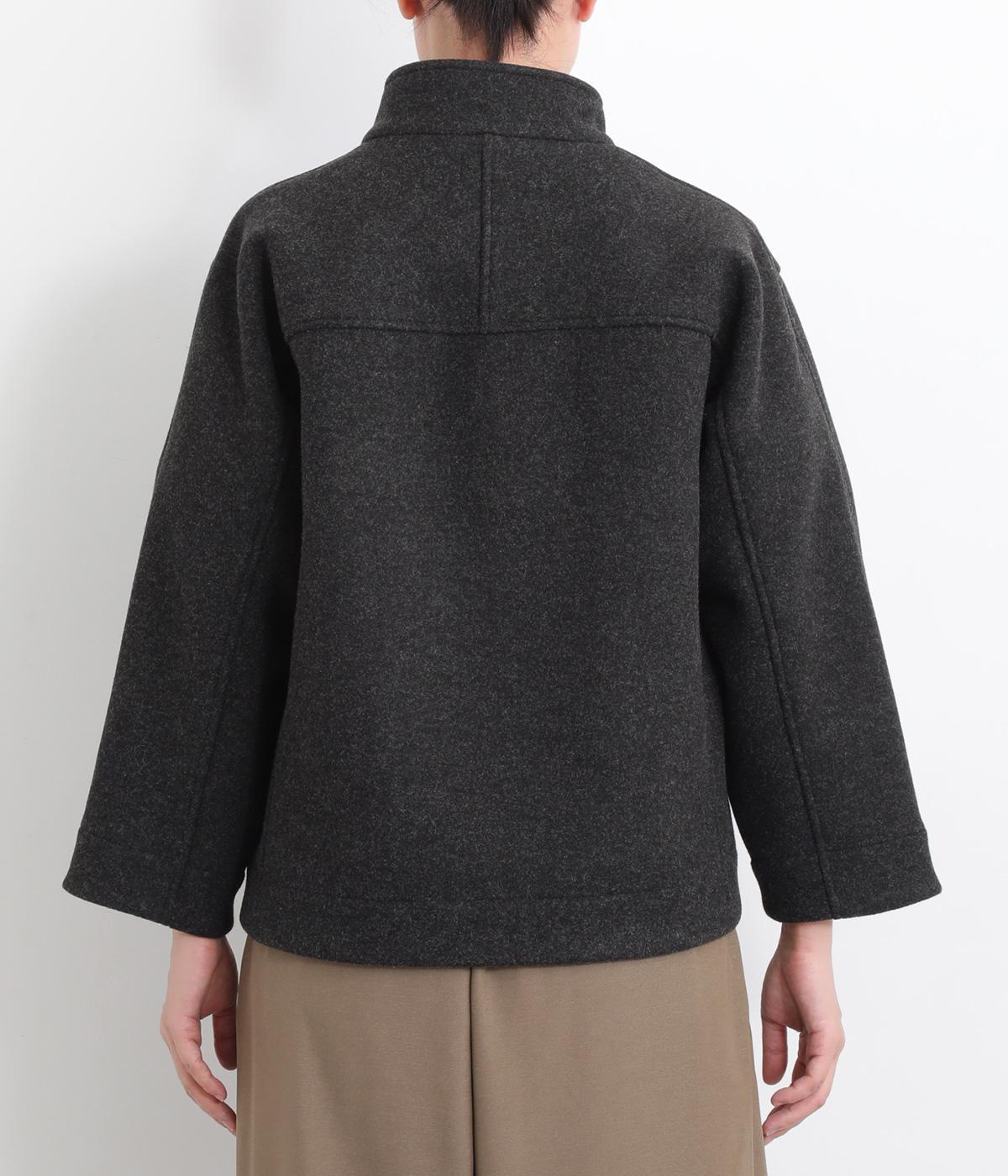 2枚の異なる生地を接着剤で貼り合わせ1枚にしたボンディング生地を使用。ハリ感や厚みのある生地で立体的なシルエットを描き、裏地なしでもしっかりとしています。裏面はフリースで防寒力も◎。