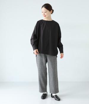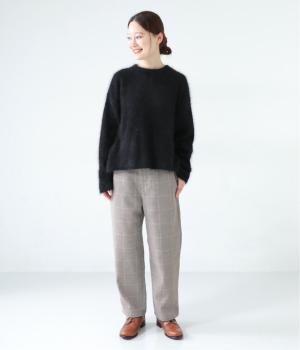 季節感と上品なムードをプラスできるツイードパンツ。裾に向かって緩やかに細くしたテーパードシルエットが脚のラインをきれいに見せてくれます。ウエストはサイドから後ろにかけてゴム仕様。前はファスナー開きですっきりとさせ、短めのトップスと合わせてもサマになります。