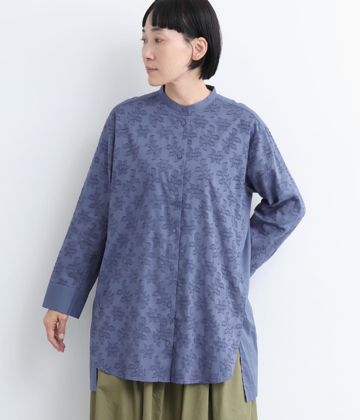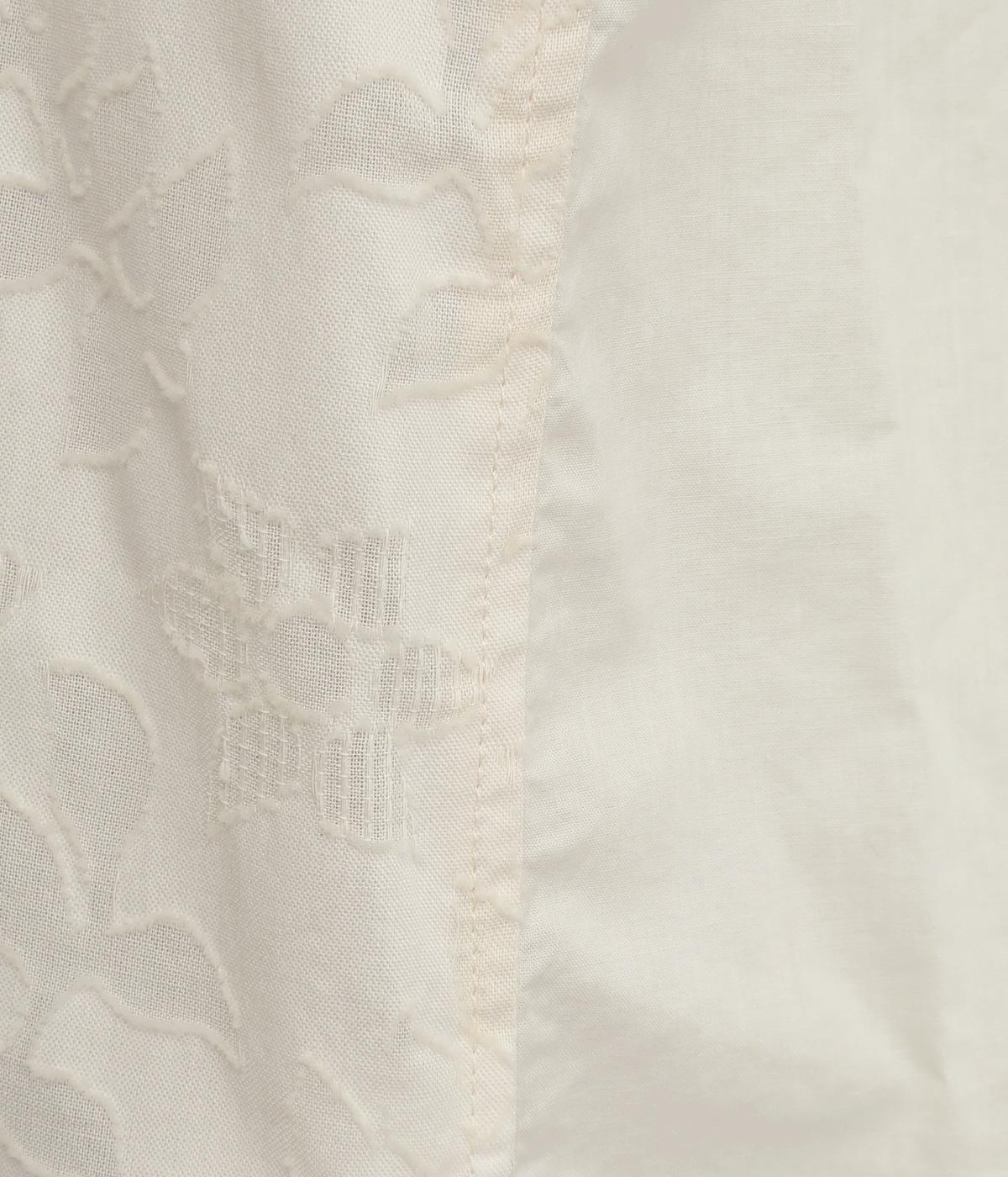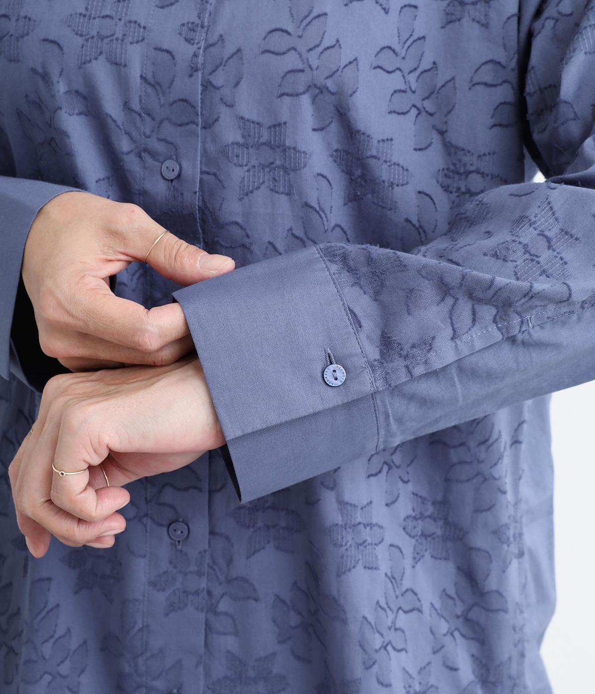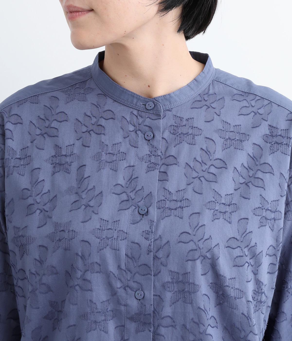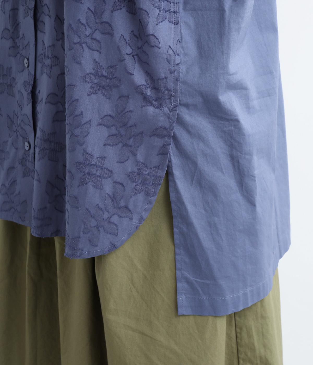 リンドウの花をモチーフにしたシアー感のあるジャカード素材とブロード素材の2種類を組み合わせました。どちらも軽やかなコットンで着心地もさわやかです。