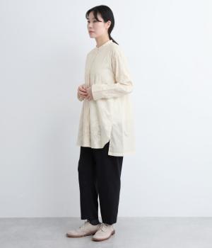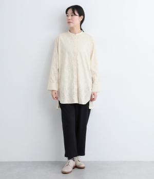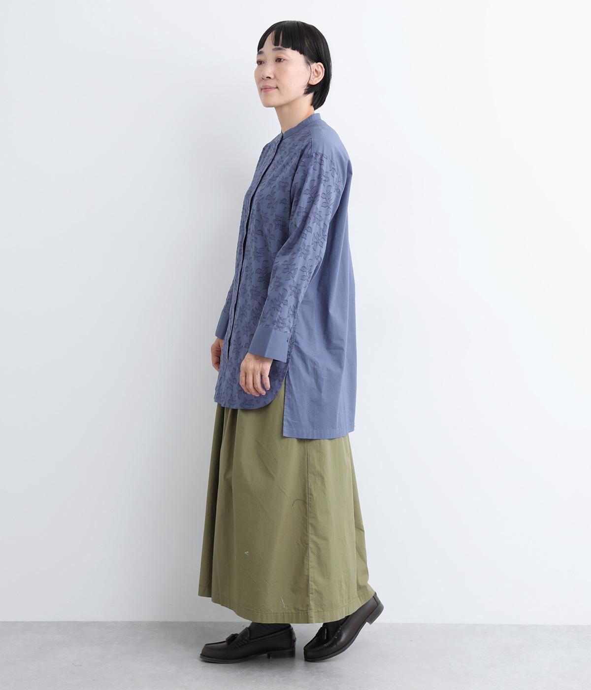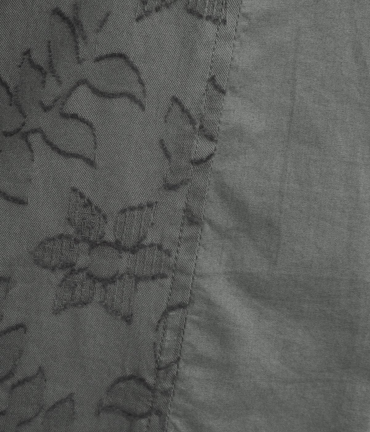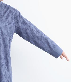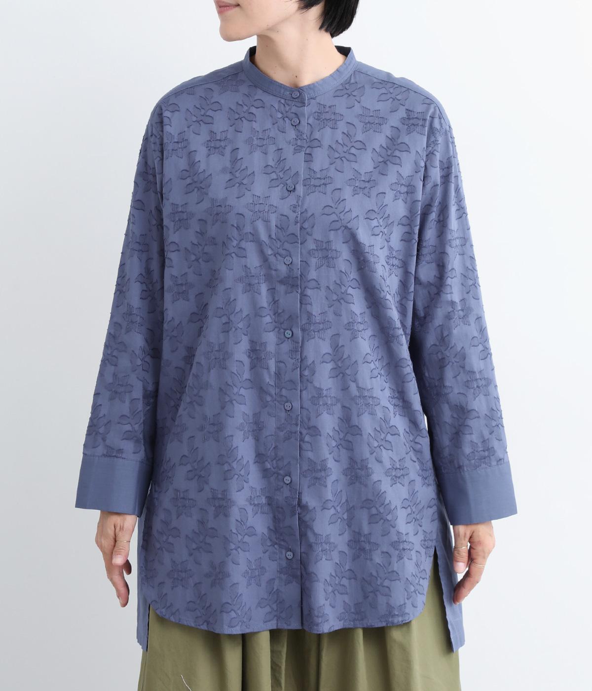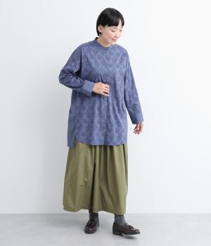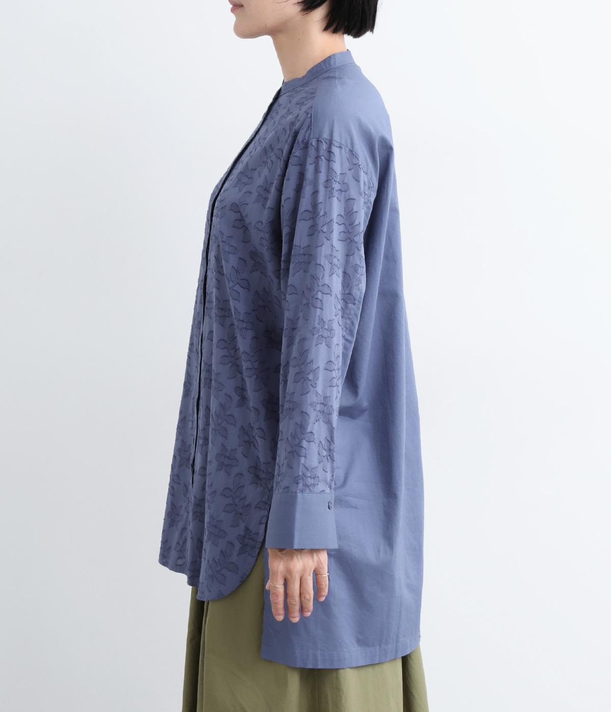 リンドウの花をモチーフにしたシアー感のあるジャカード素材とブロード素材の2種類を組み合わせました。どちらも軽やかなコットンで着心地もさわやかです。