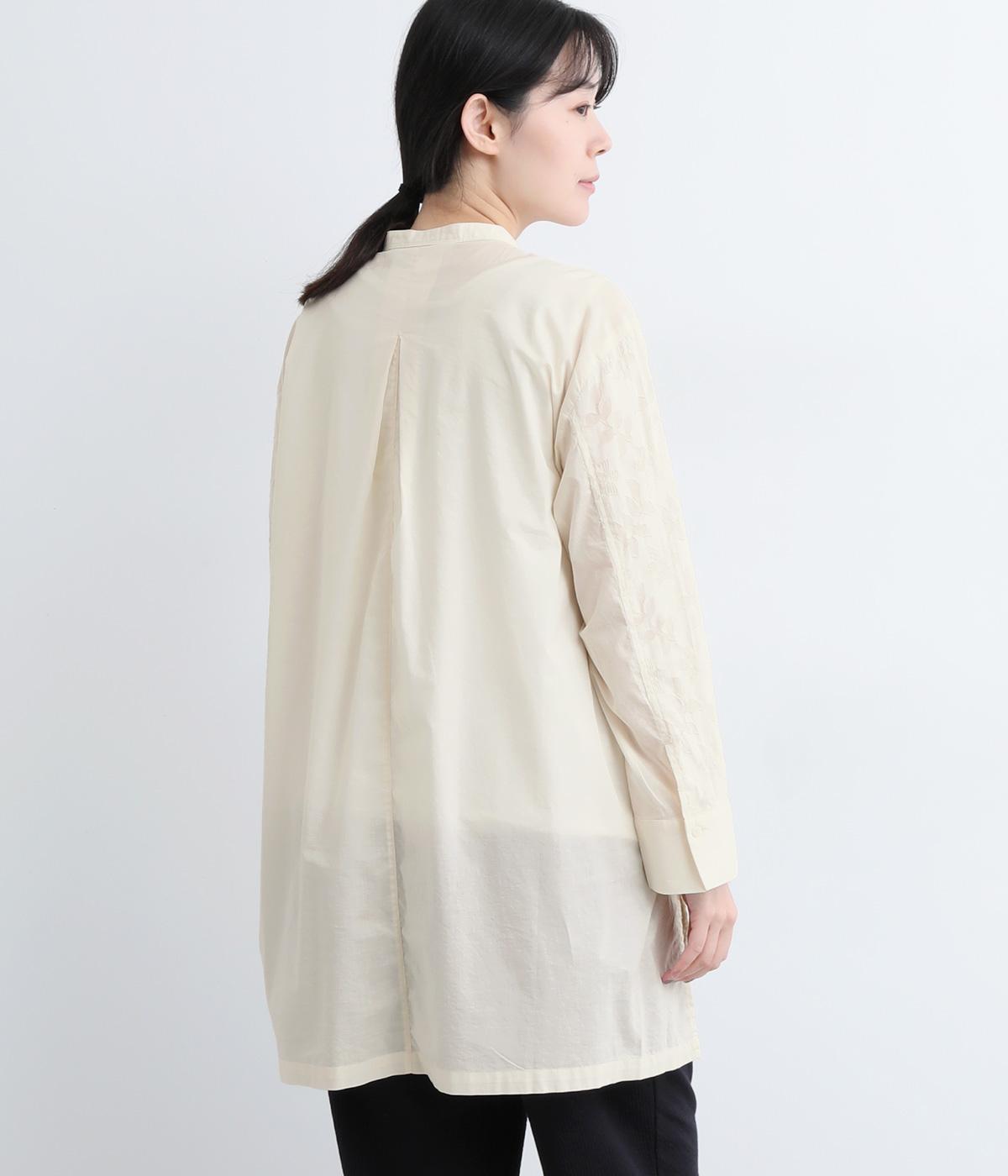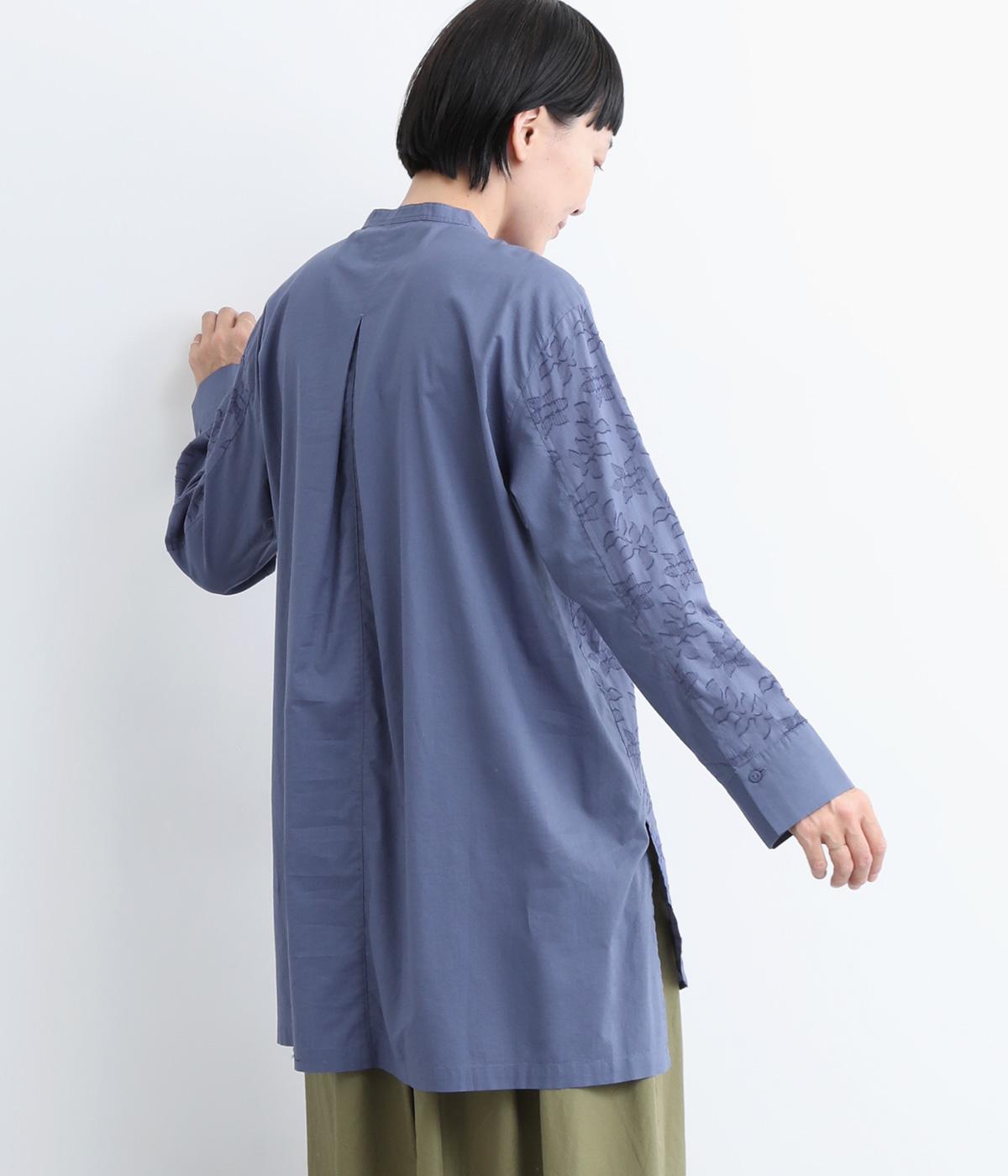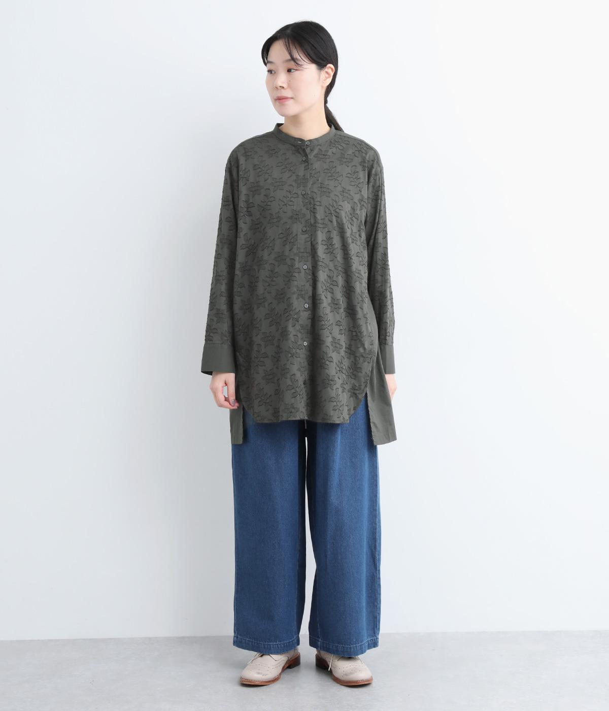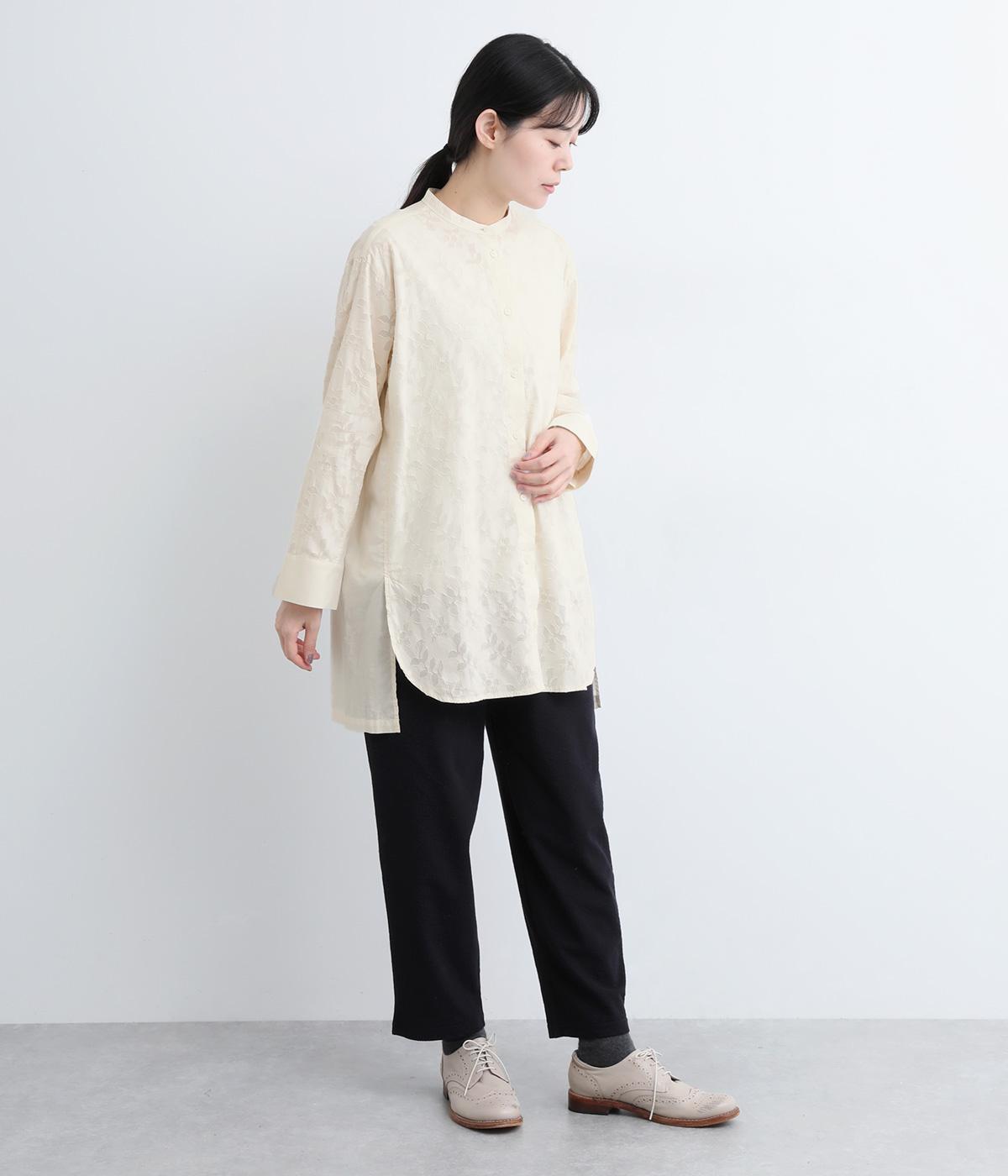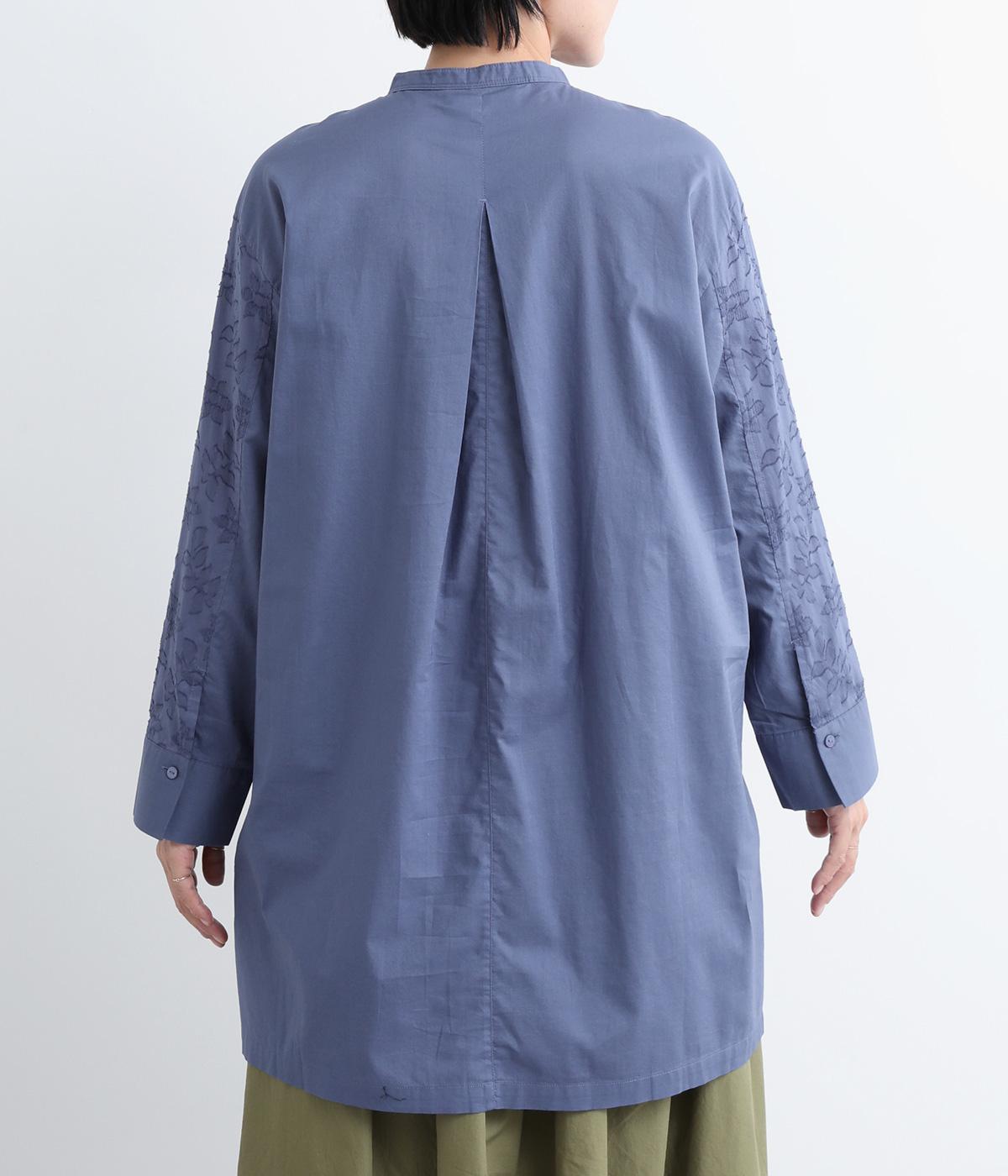 リンドウの花をモチーフにしたシアー感のあるジャカード素材とブロード素材の2種類を組み合わせました。どちらも軽やかなコットンで着心地もさわやかです。