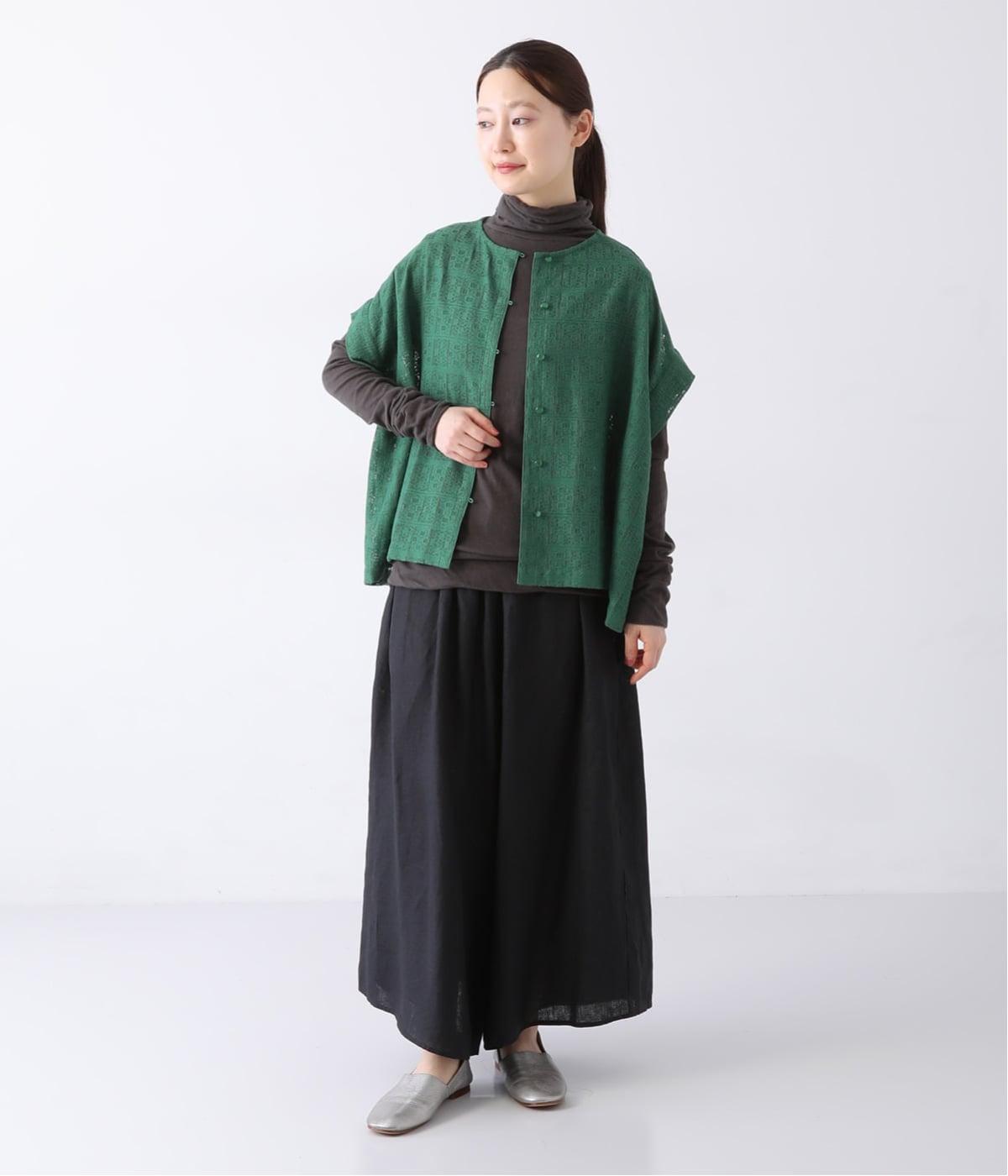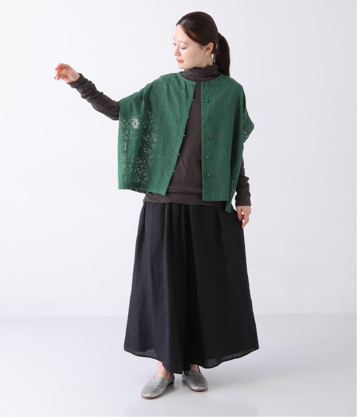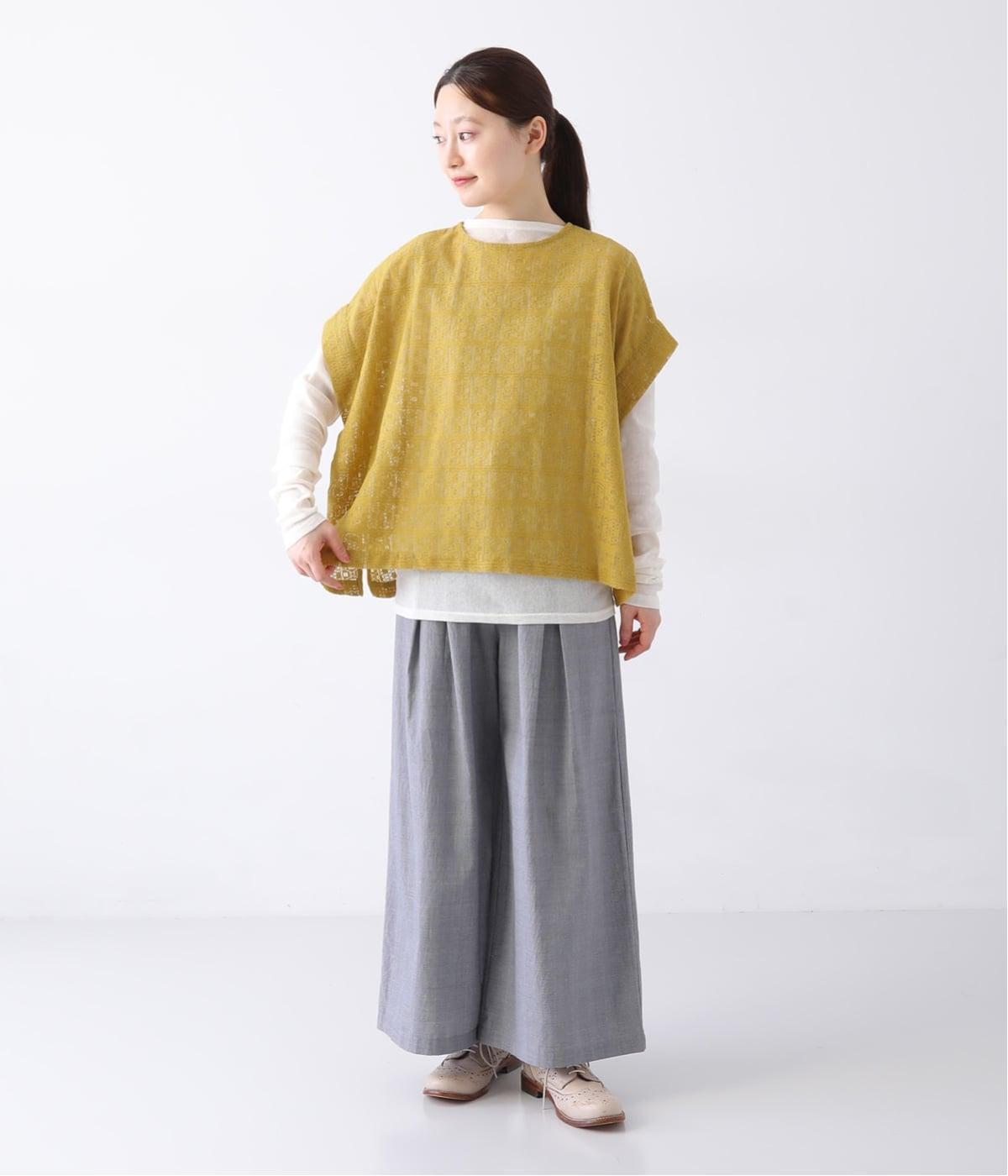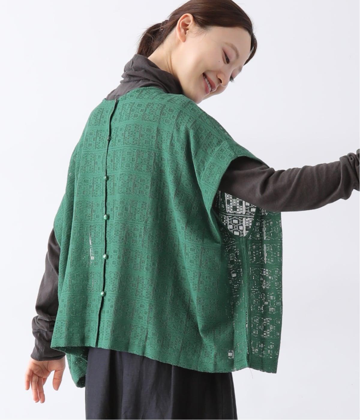 身幅を広く設定し、透け感のあるレース生地をたっぷりと使用した女性らしい一枚。羽織りにもプルオーバーにもなる前後2way仕様です。夏はノースリーブや半袖と、涼しい時期は長袖と重ねてロングシーズンたのしめます。