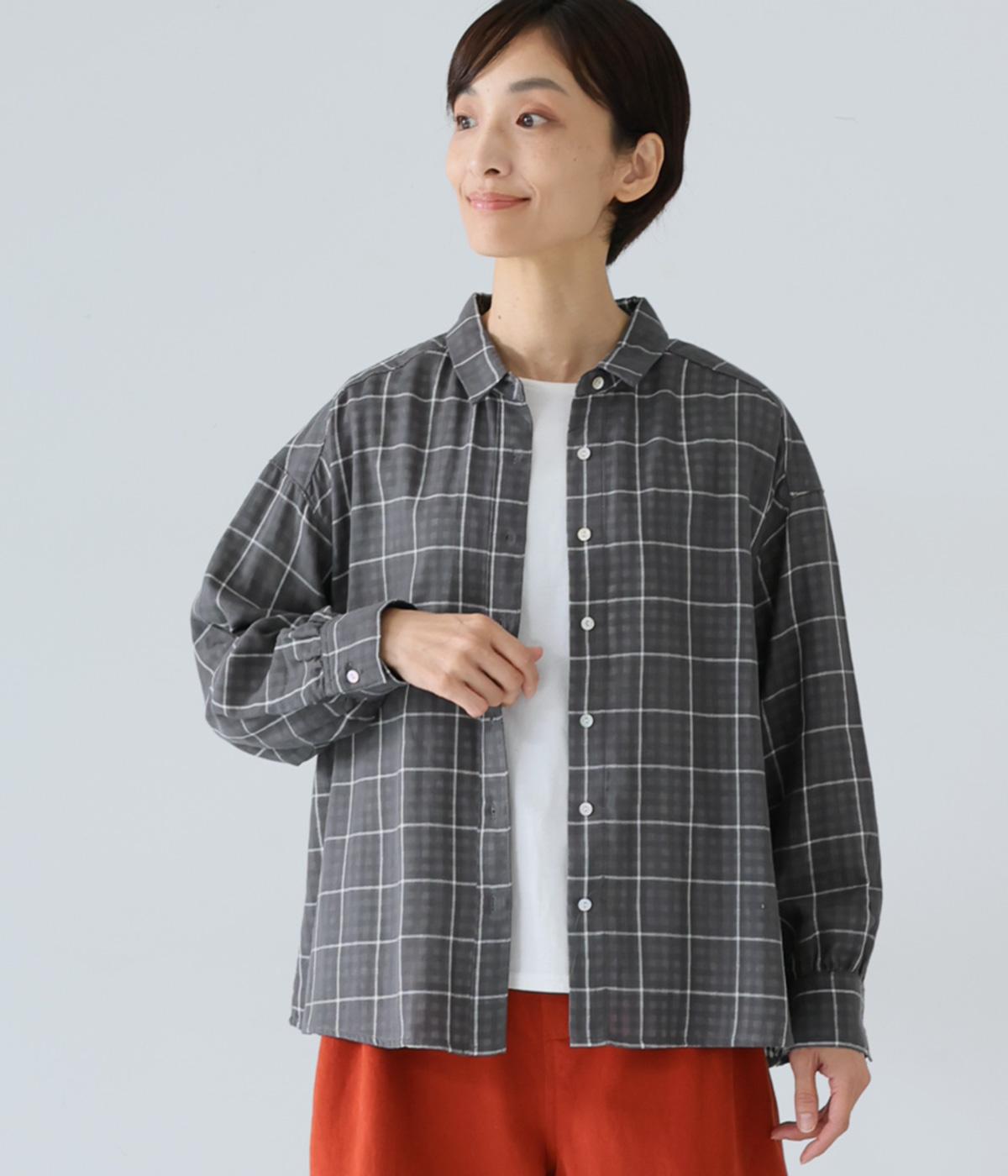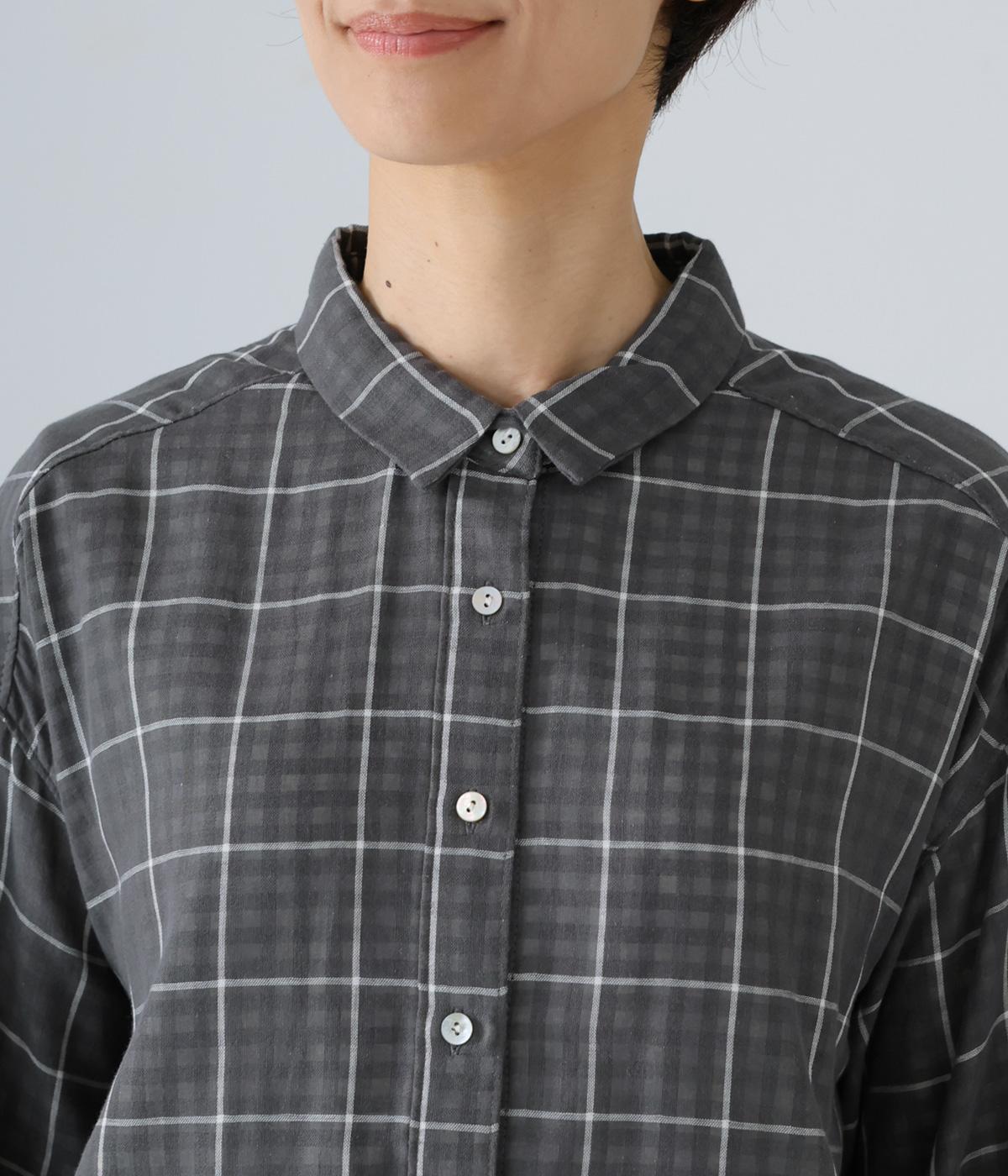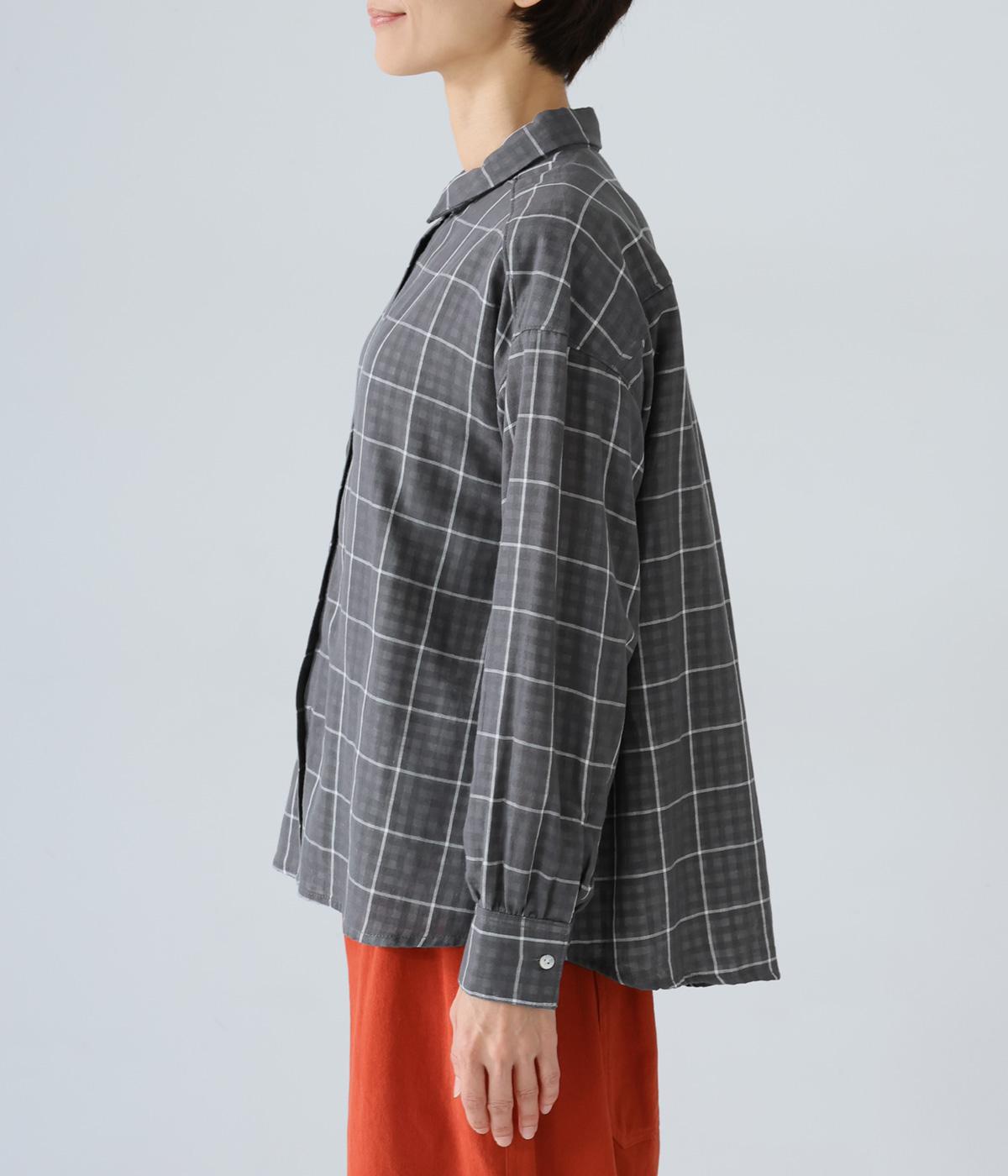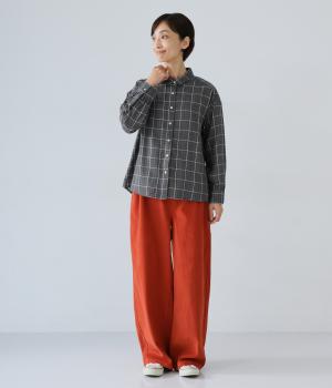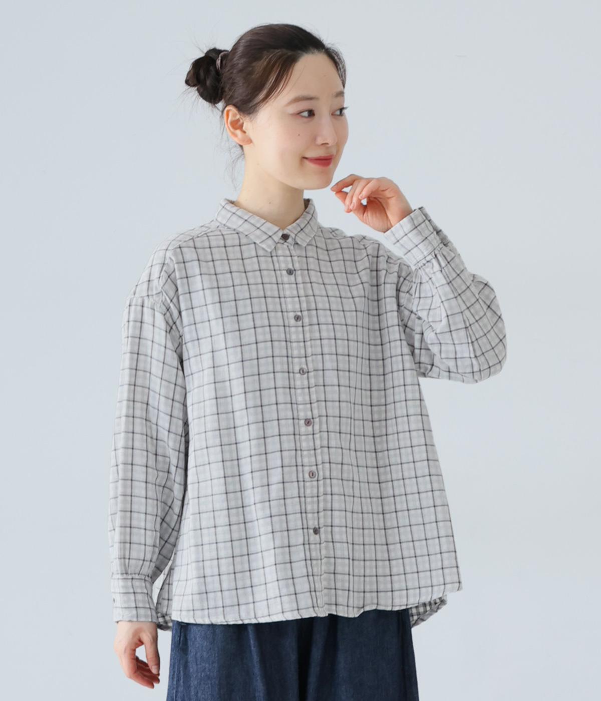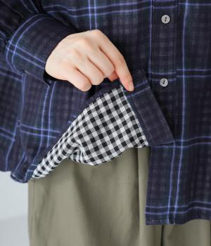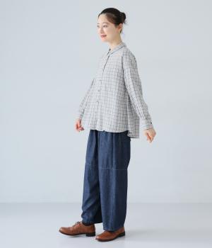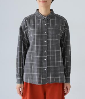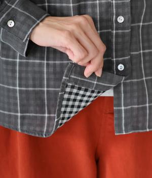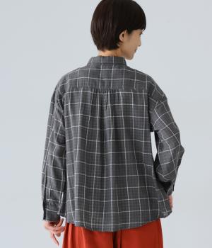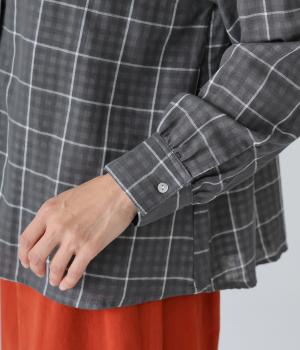 小さめの襟やラウンドさせたヘムライン、ふんわりとした袖がやさしい印象に仕上がっています。ジャケットとのレイヤードから、前をあけた羽織りまで、さまざまに活躍。特徴的なチェック柄ですが、スタイリングになじみやすい一枚。