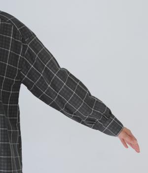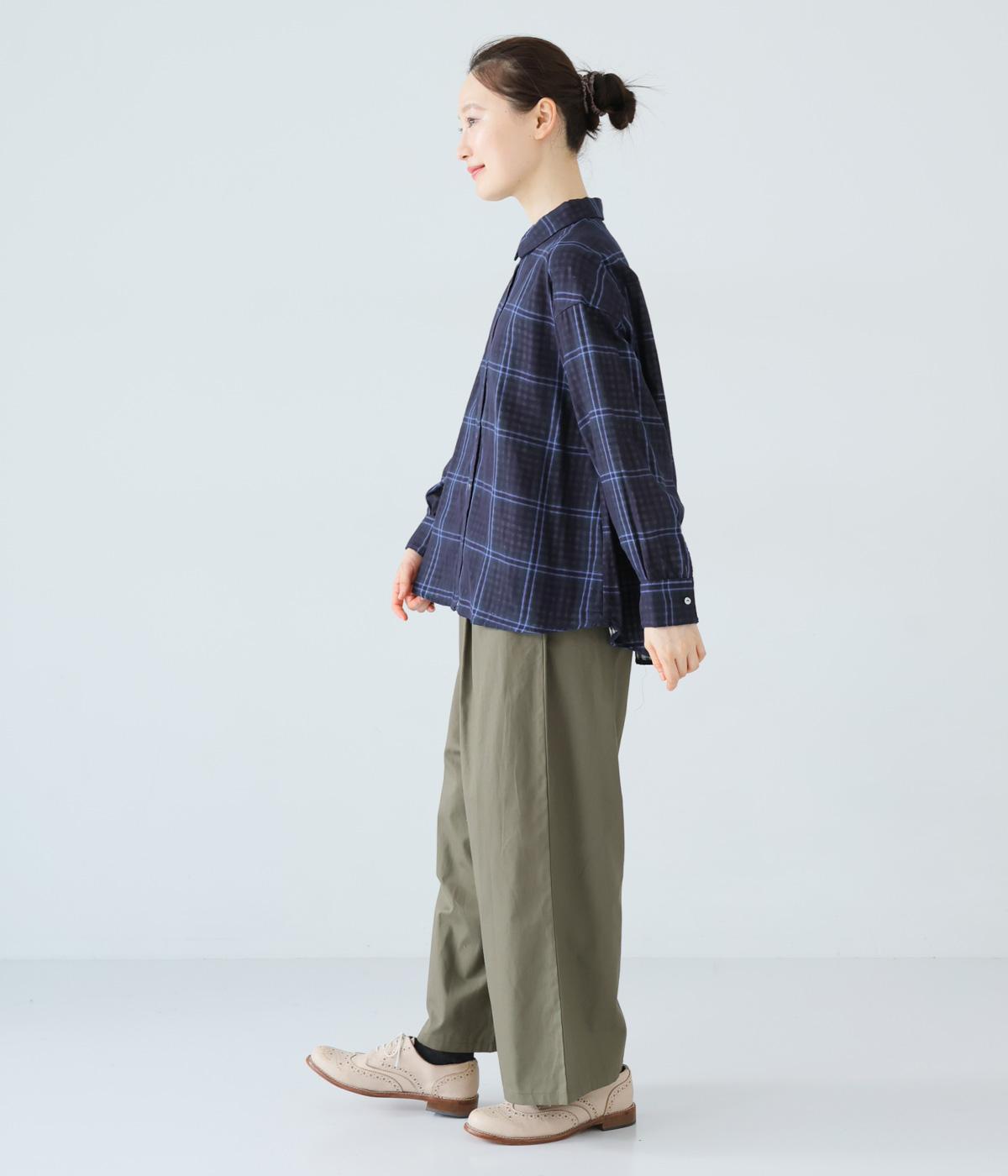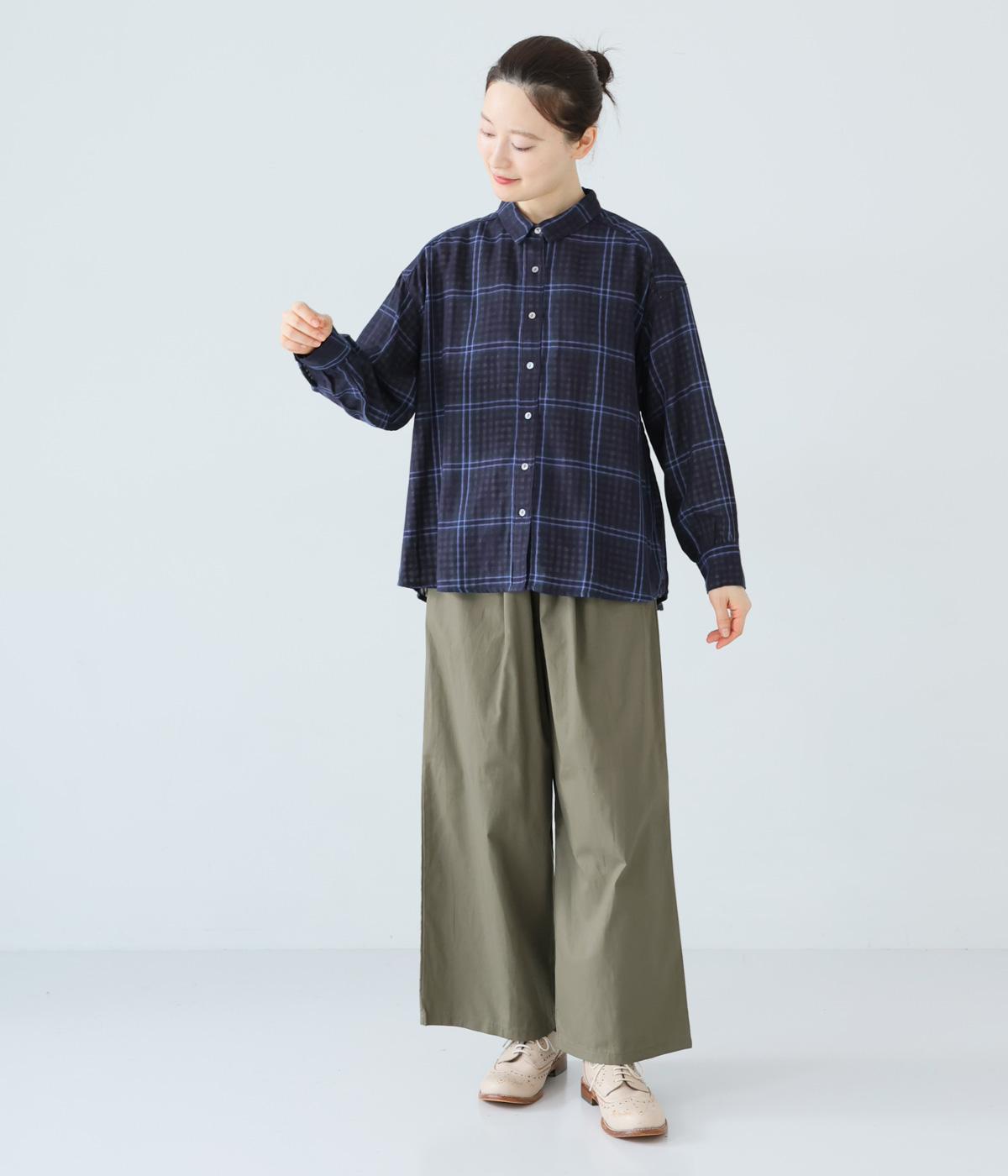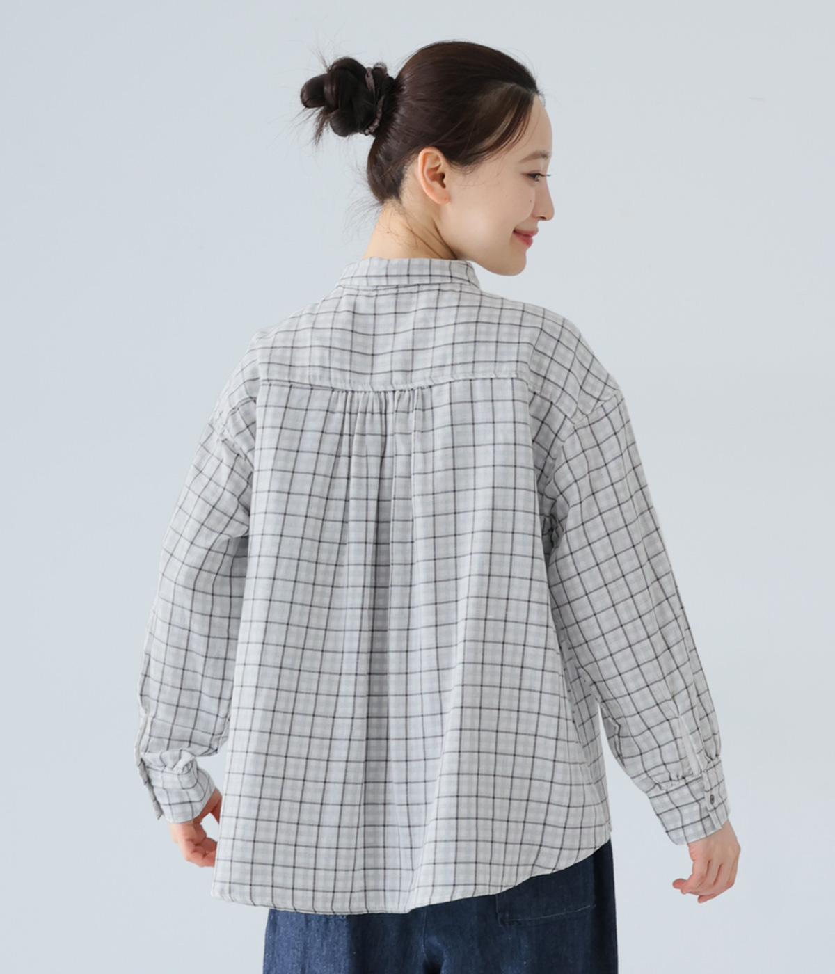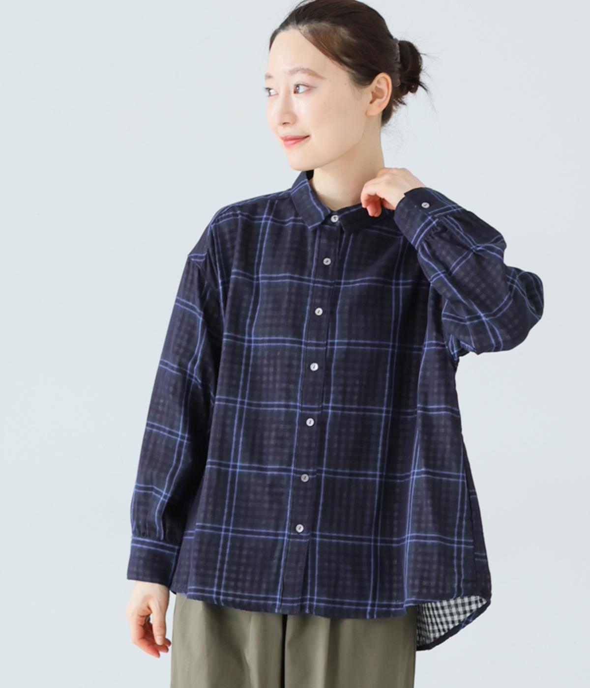 小さめの襟やラウンドさせたヘムライン、ふんわりとした袖がやさしい印象に仕上がっています。ジャケットとのレイヤードから、前をあけた羽織りまで、さまざまに活躍。特徴的なチェック柄ですが、スタイリングになじみやすい一枚。