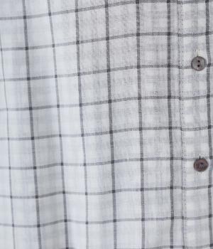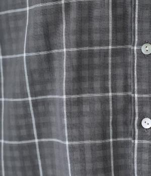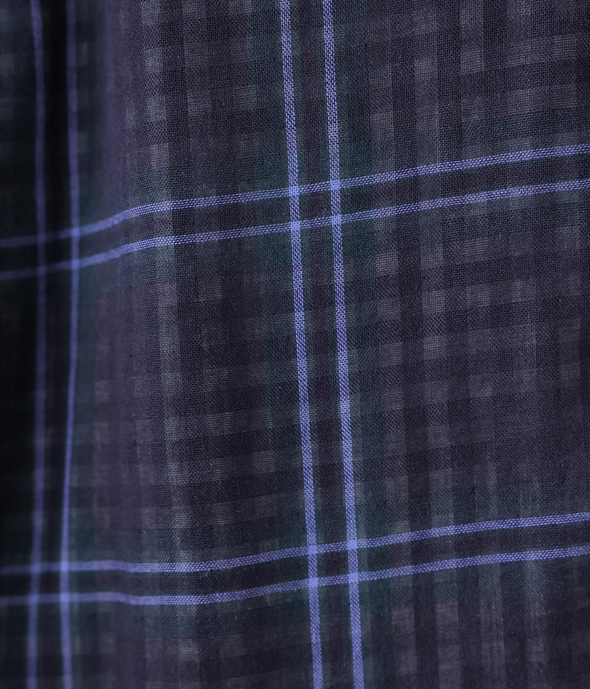 薄いコットンガーゼを二枚重ねることで、裏の柄が透けて交差して見えるチェック柄が印象的。ふっくらとしたボリュームとやわらかな肌触りで着心地よく、吸水性もいいので快適に着用できます。