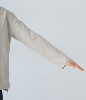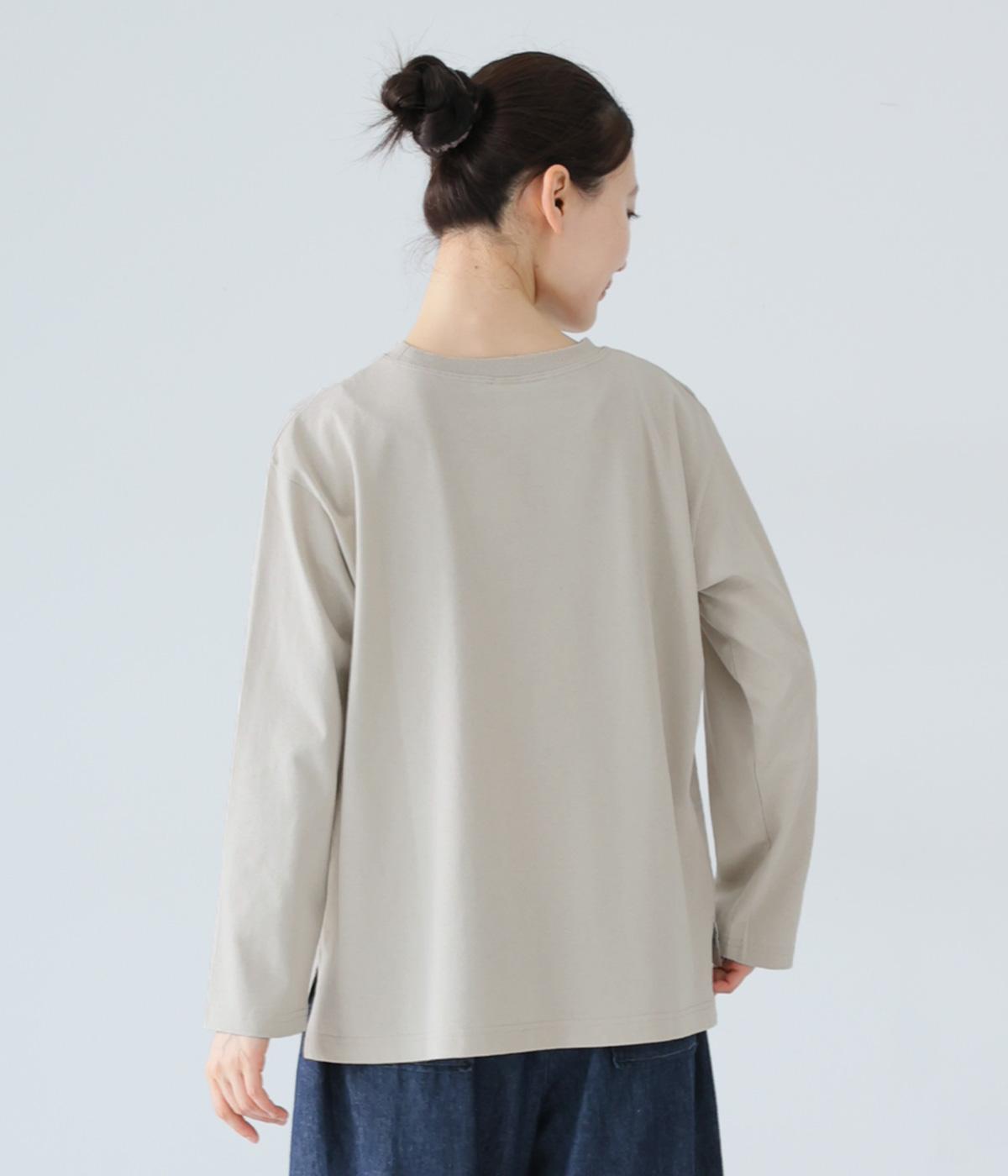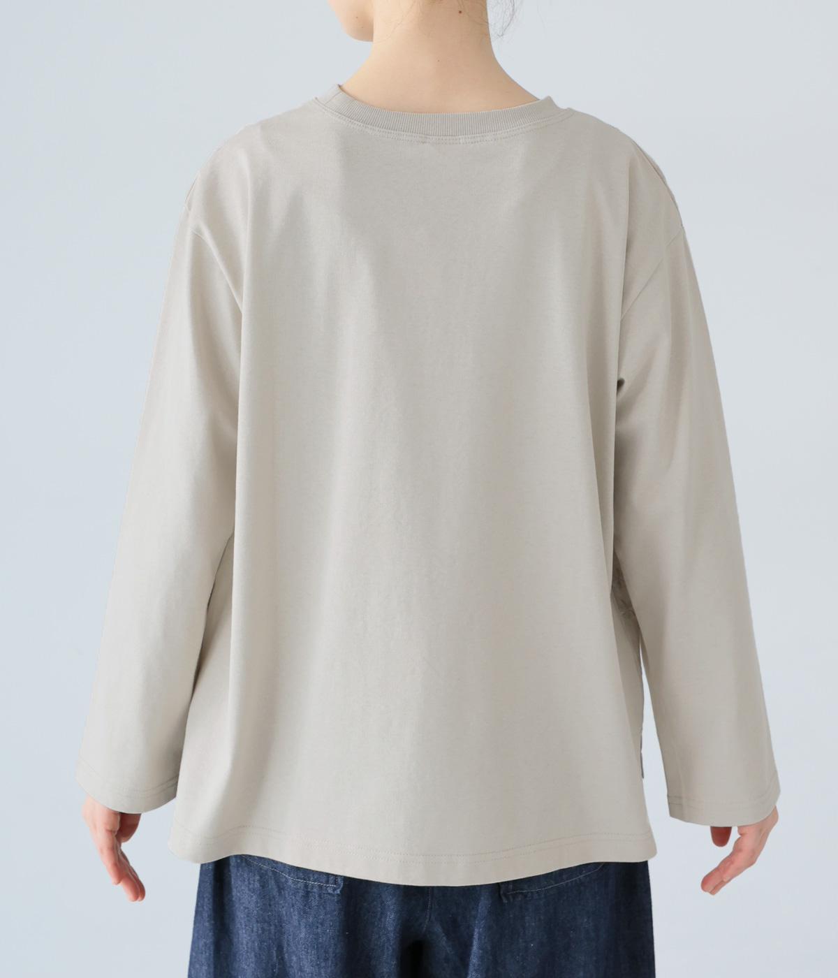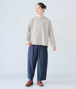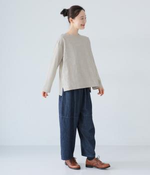 さらりとしたコットン平織り素材と、ソフトで伸びのいいコットン天竺素材を組み合わせました。使い勝手のいい薄めの中厚手生地ながら、どちらも透け感が気にならないのでデイリーに着まわせます。